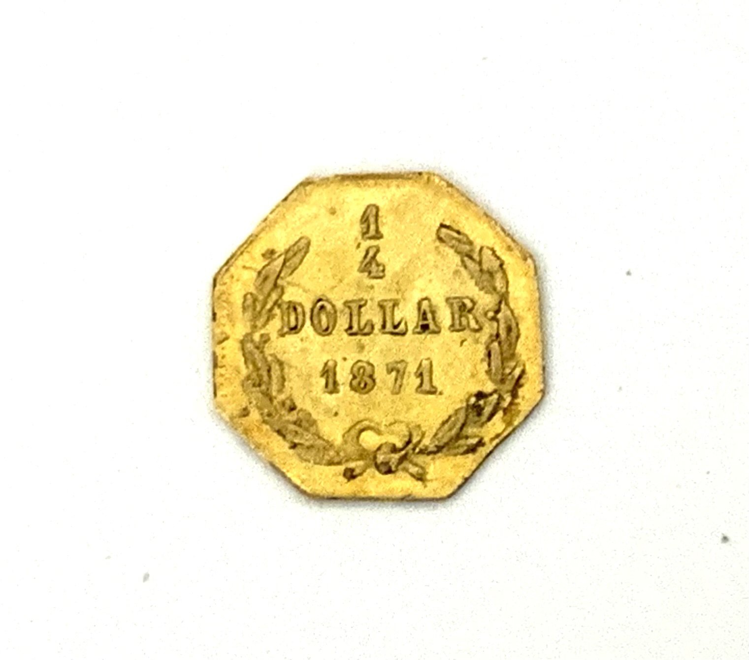 1871 Quarter Dollar, .900 Gold. (Fractional gold coin). (A)