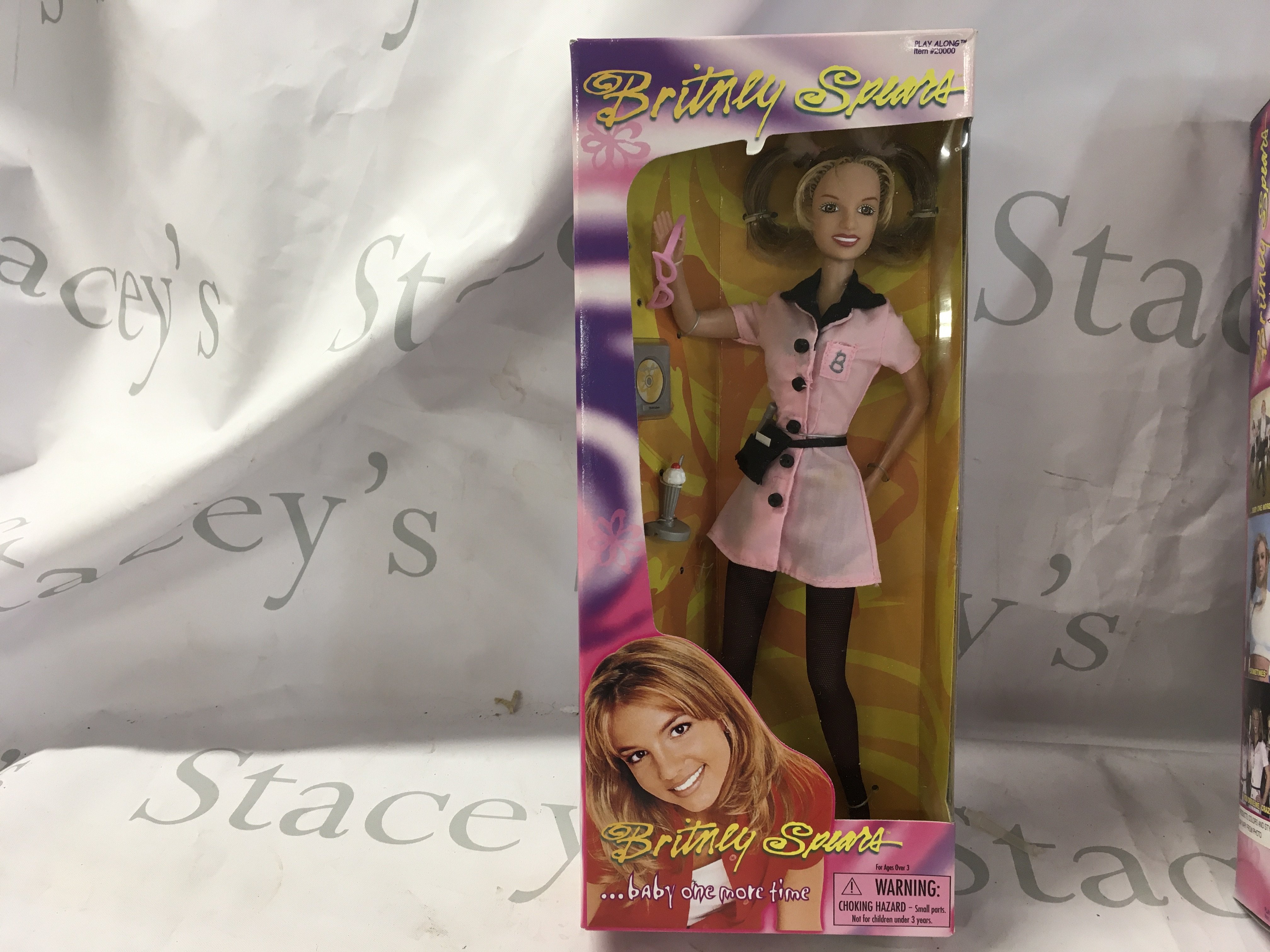 A collection of 4 boxed dolls, 3x Britney Spears and Emma Bunton Spice Girls on Tour. No reserve
