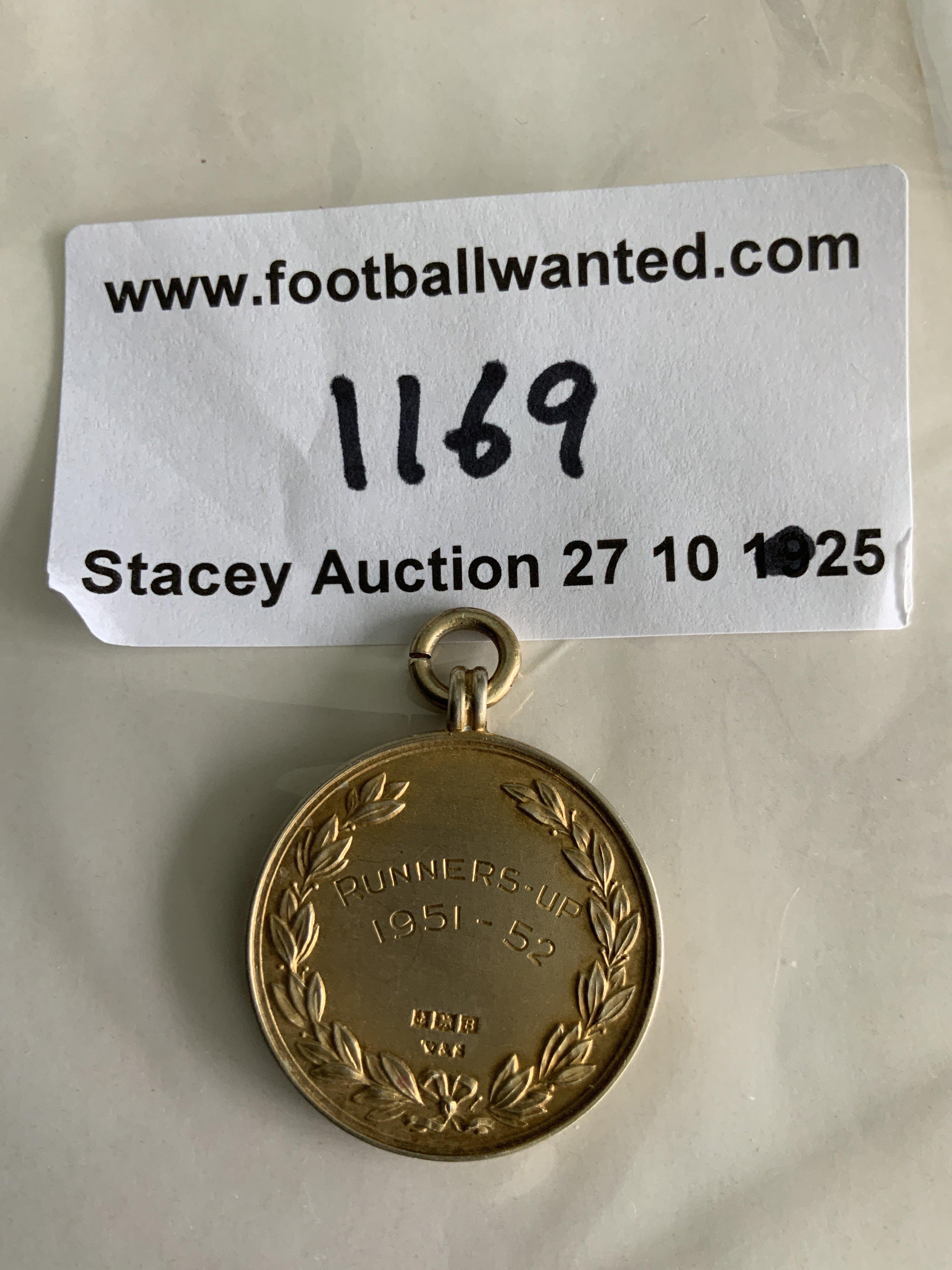 Arsenal 51/52 Reserves Silver/Hallmark Football Medal: Jack Kelseys Football Combination League runners up medal. One side reads The Football Combination League Championship the reverse stating Runners Up 1951-52 with hallmark and makers Vaughtons stamp. Box not present. Direct from reliable source that knew him and used to put on dinners many years ago for the players.