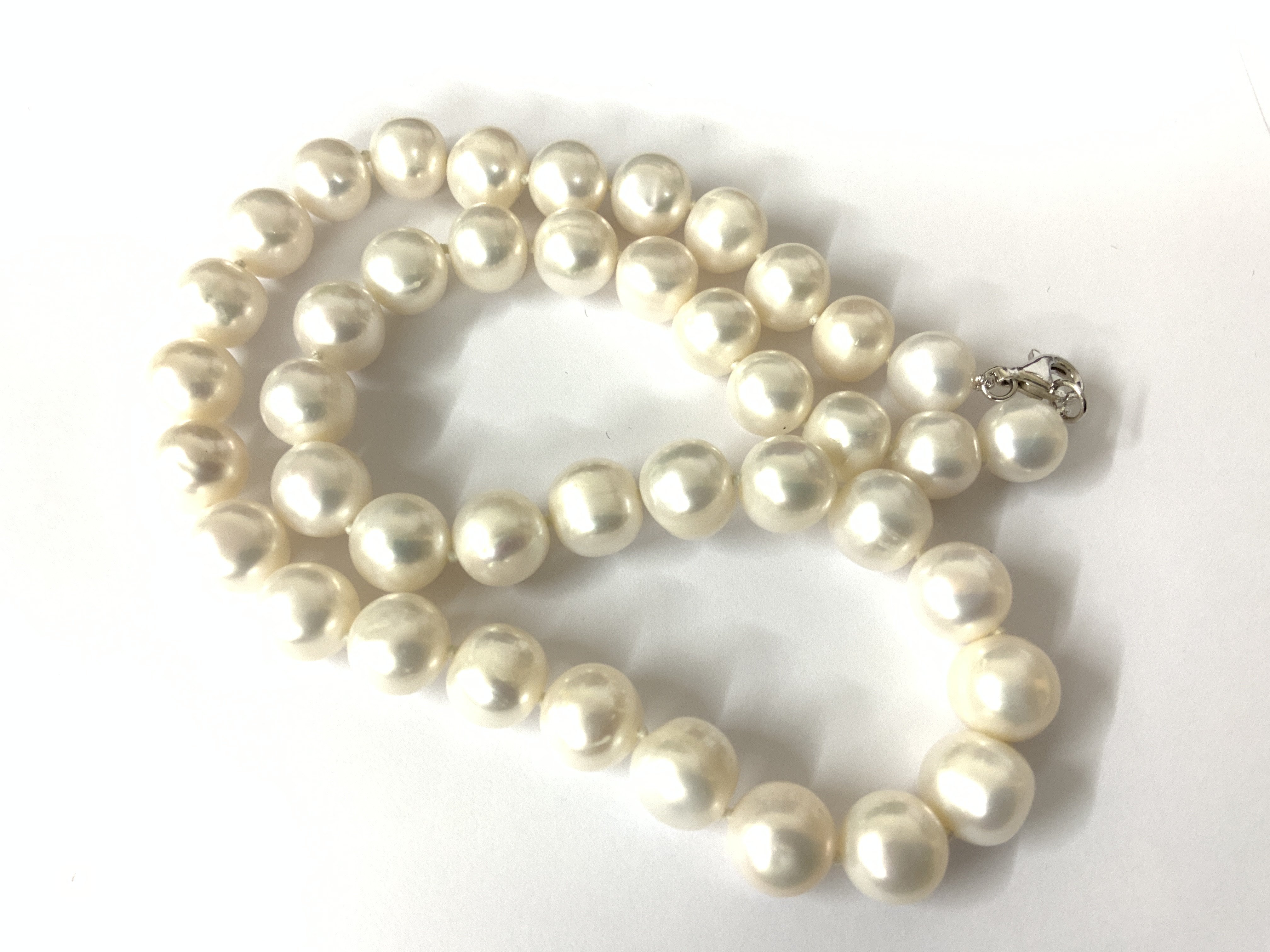 18 white cultured pearl necklace with a silver lobster claw clasp. Postage category A