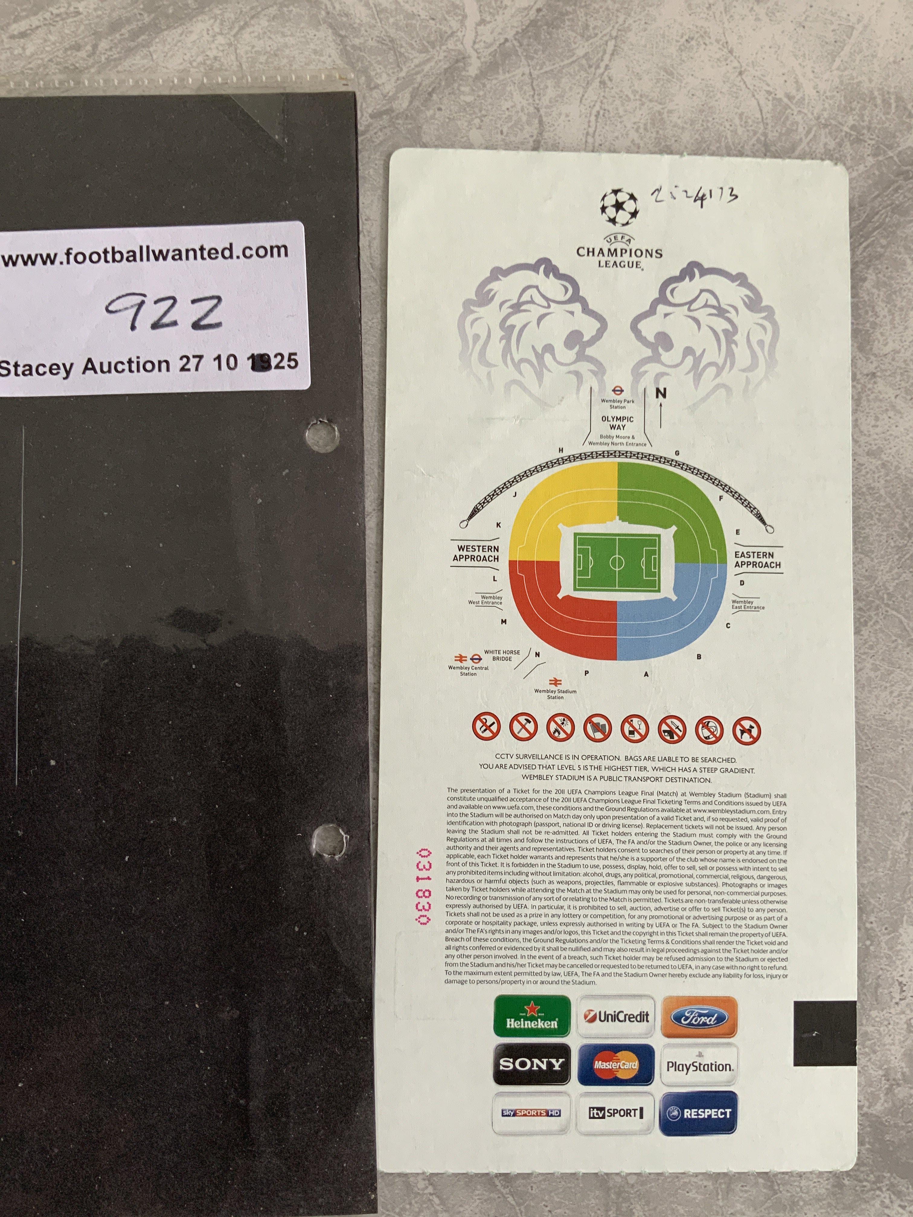 2011 Champions League Final Football Ticket: Barcelona v Manchester United played at Wembley in excellent condition. Couple of numbers written to rear.