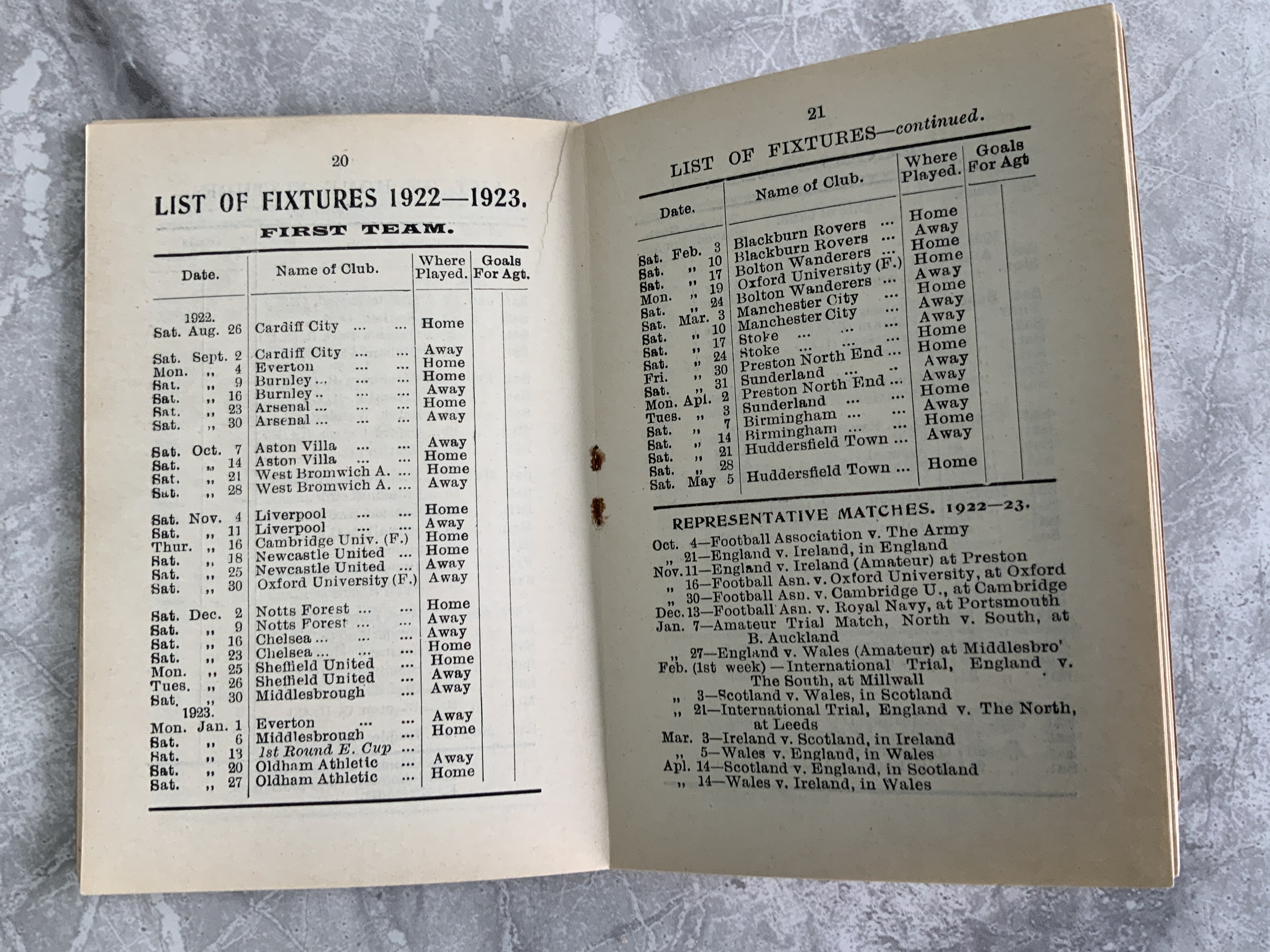 1922 - 1923 Tottenham Football Handbook: Excellent condition unwritten 40 page handbook. Tiniest bits missing from corners but best one we have seen.