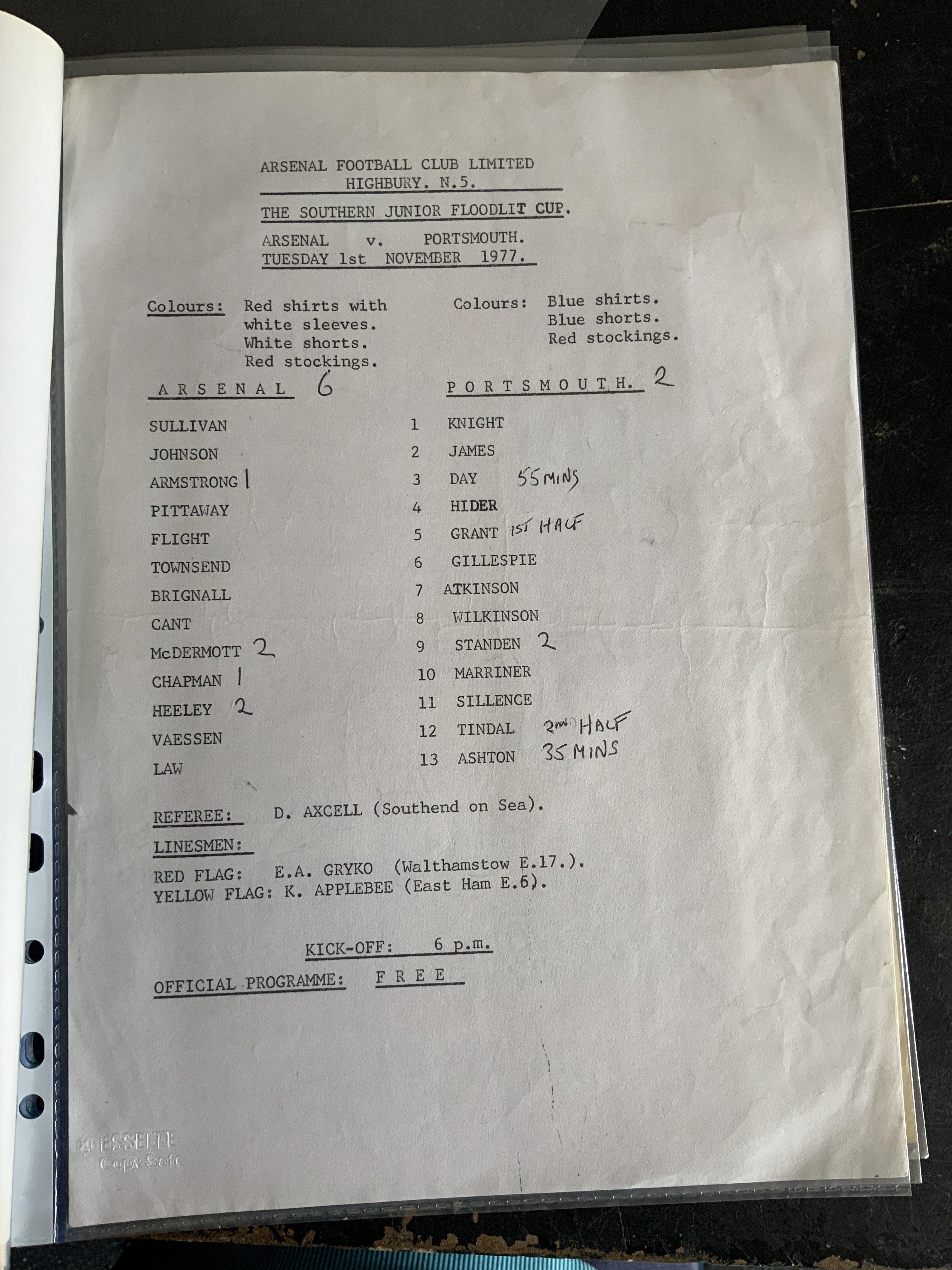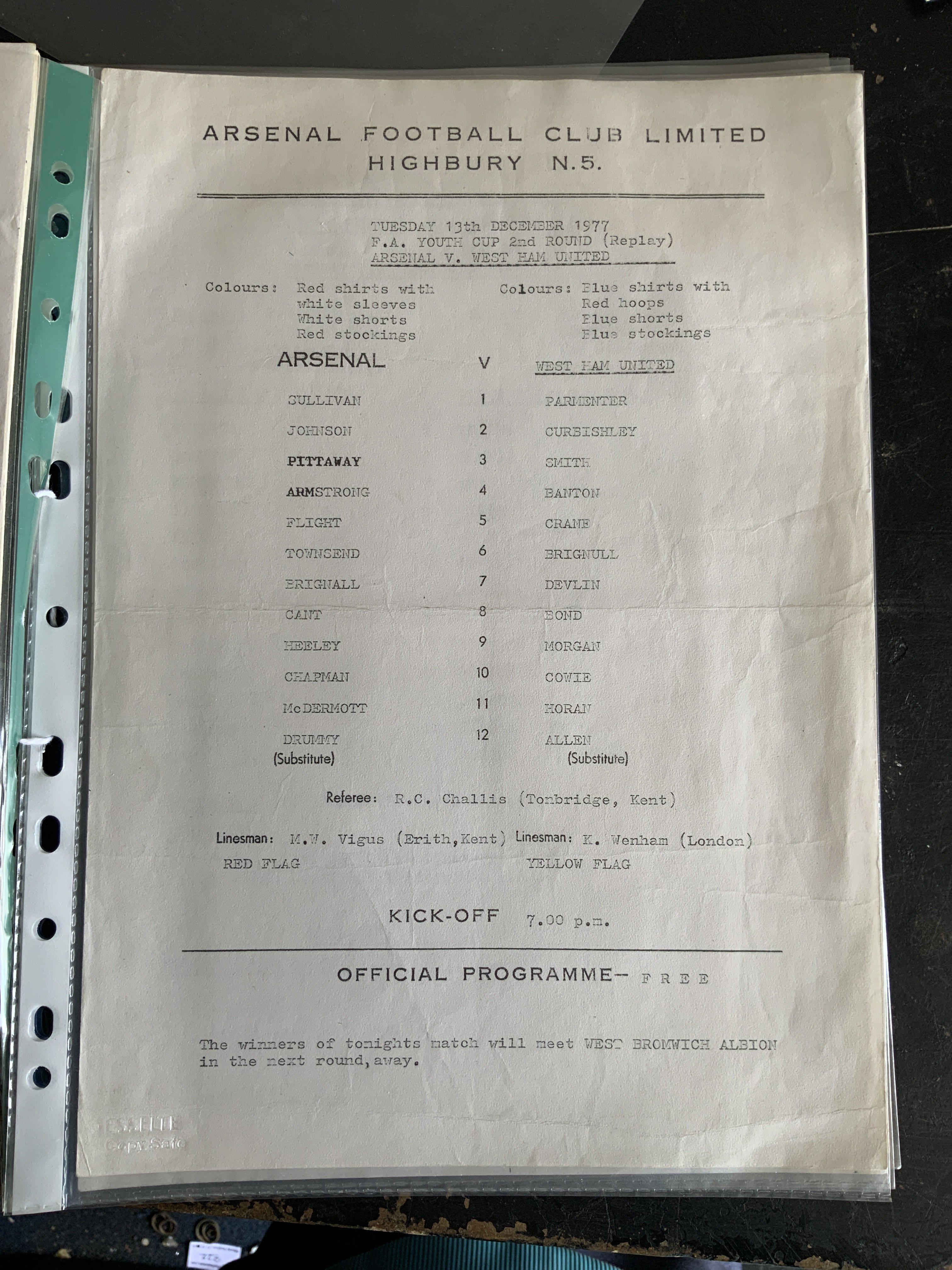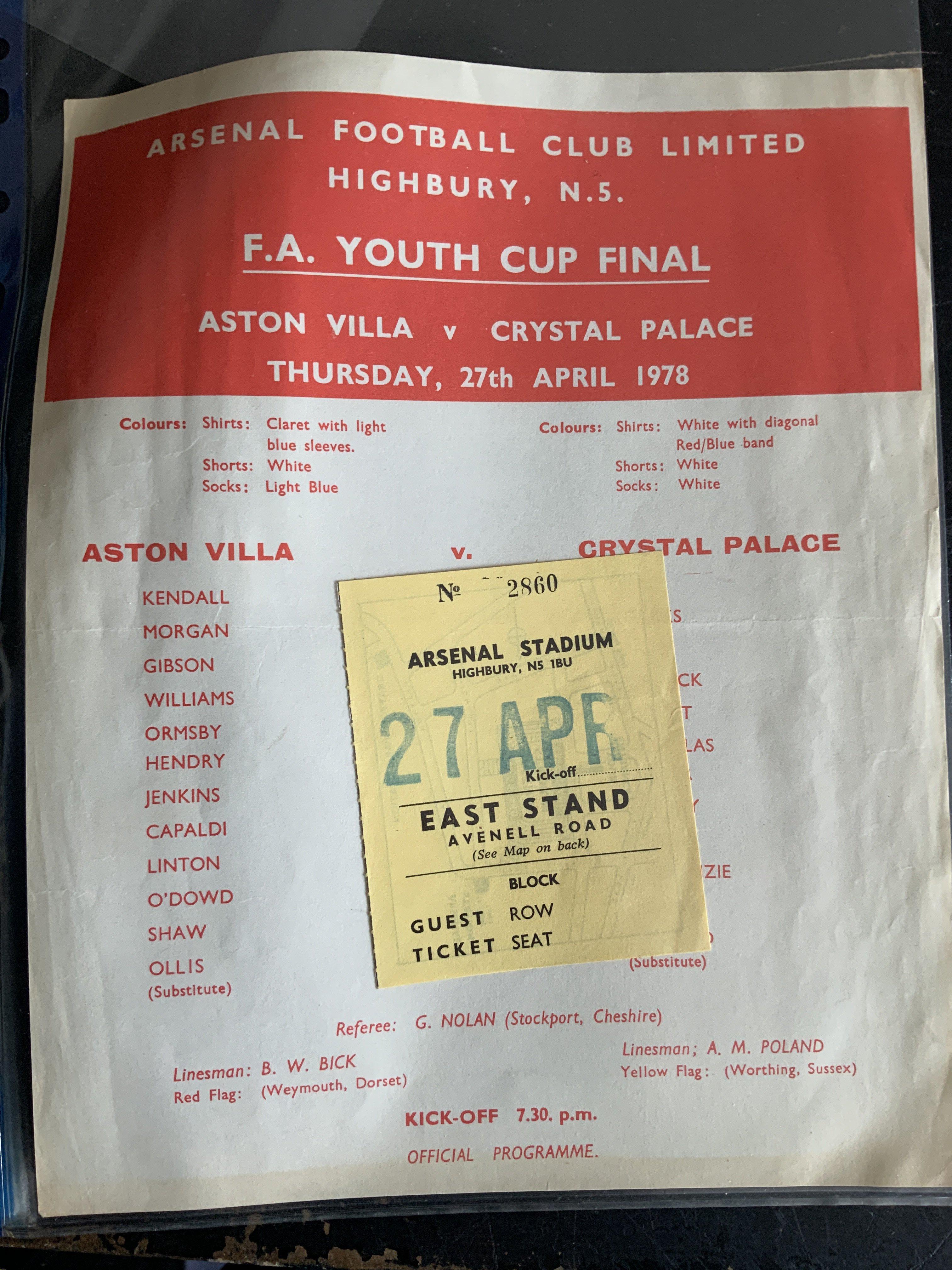 Arsenal 77/78 Reserves + Youth Football Programmes: Probable complete set of Football Combination sheets plus a Youth Cup final Aston Villa v Crystal Palace with ticket, SJFC, Youth Cup, FA Cup SF with ticket.