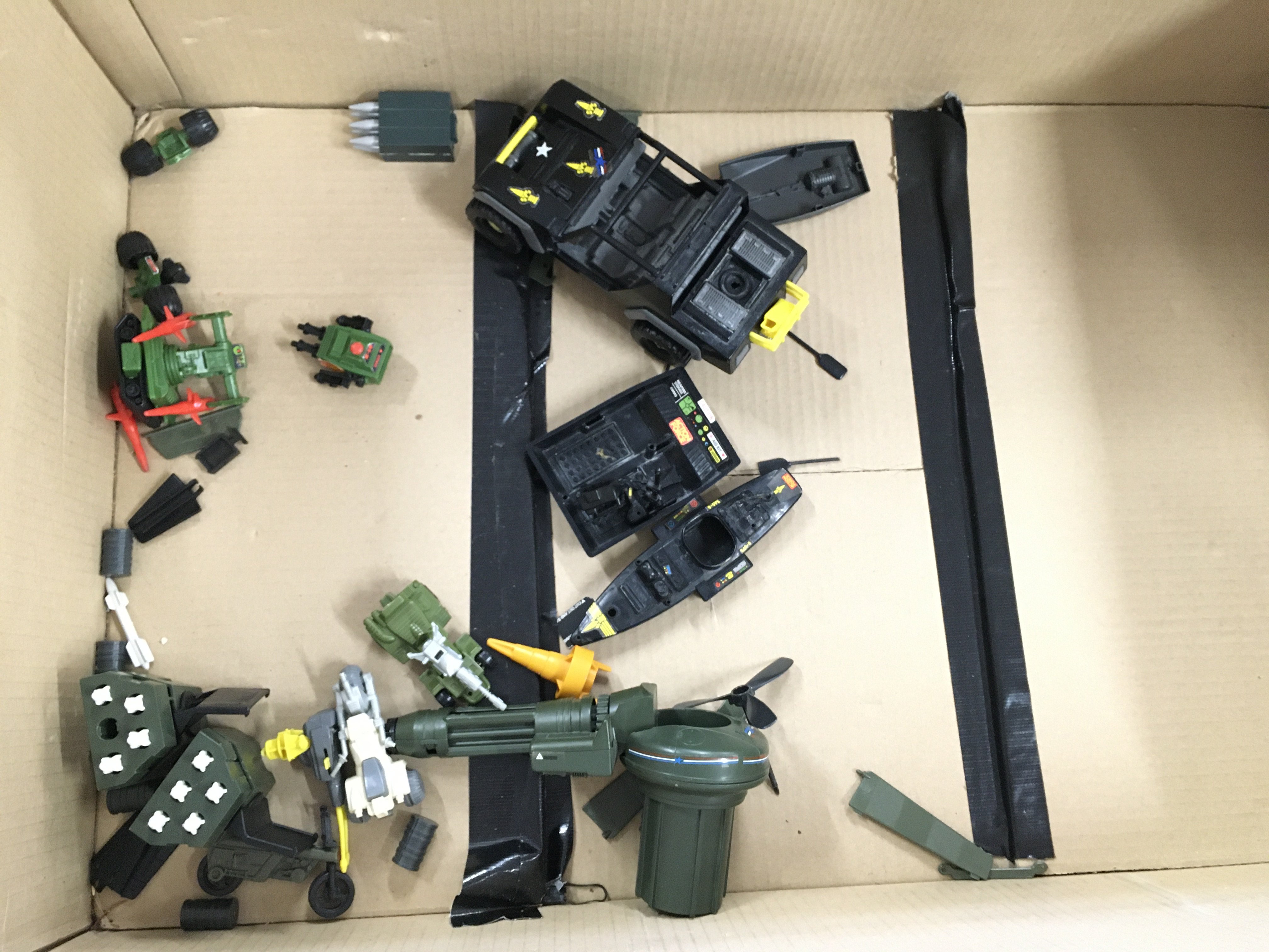 A Box Containing G.I. Joe/Action Force Vehicles with Some Figures. Ideal for spare Parts.No Reserve.