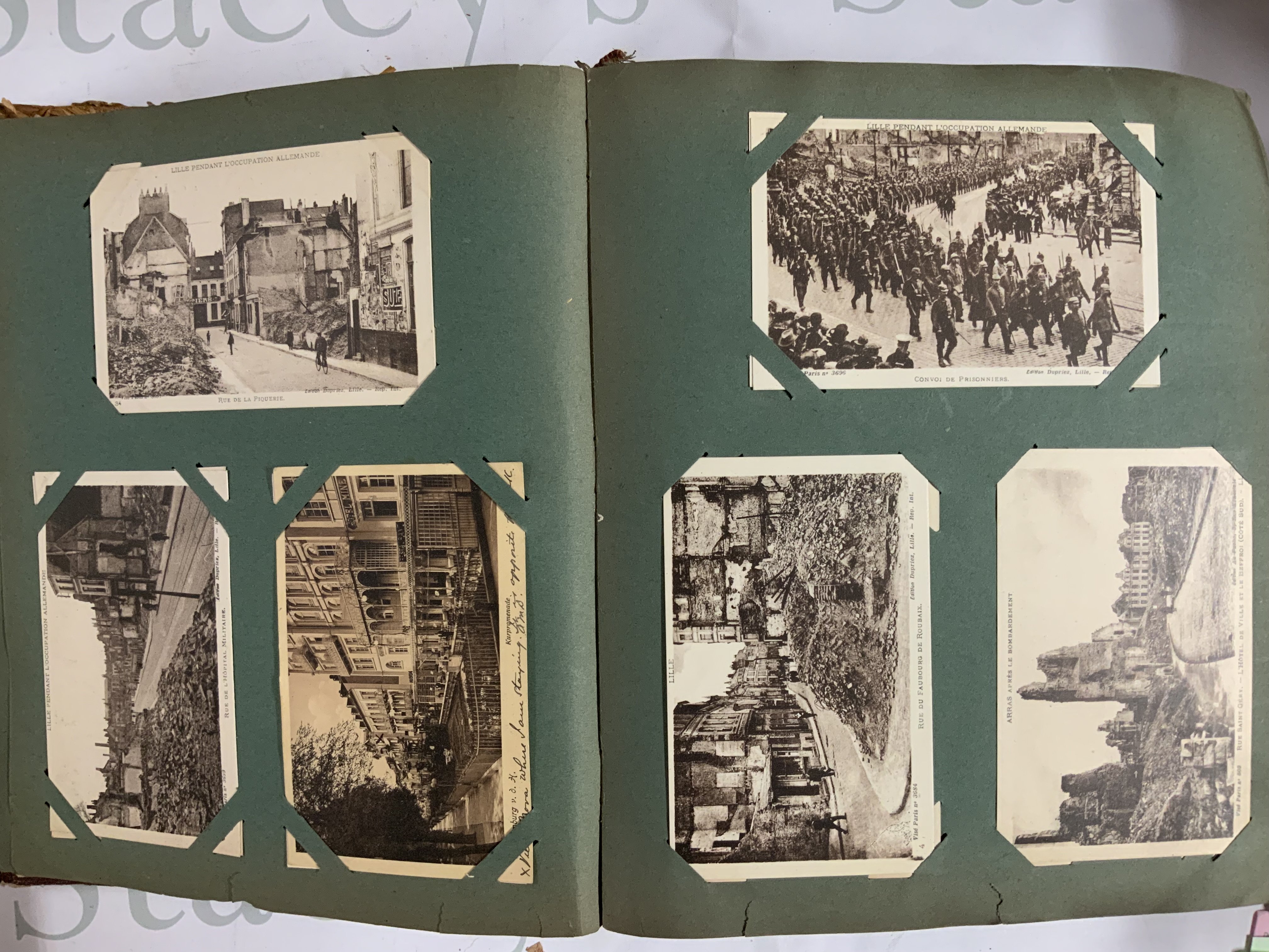 An Early Postcard album including WW1 scenes, European topographical scenes. 150+ (C)