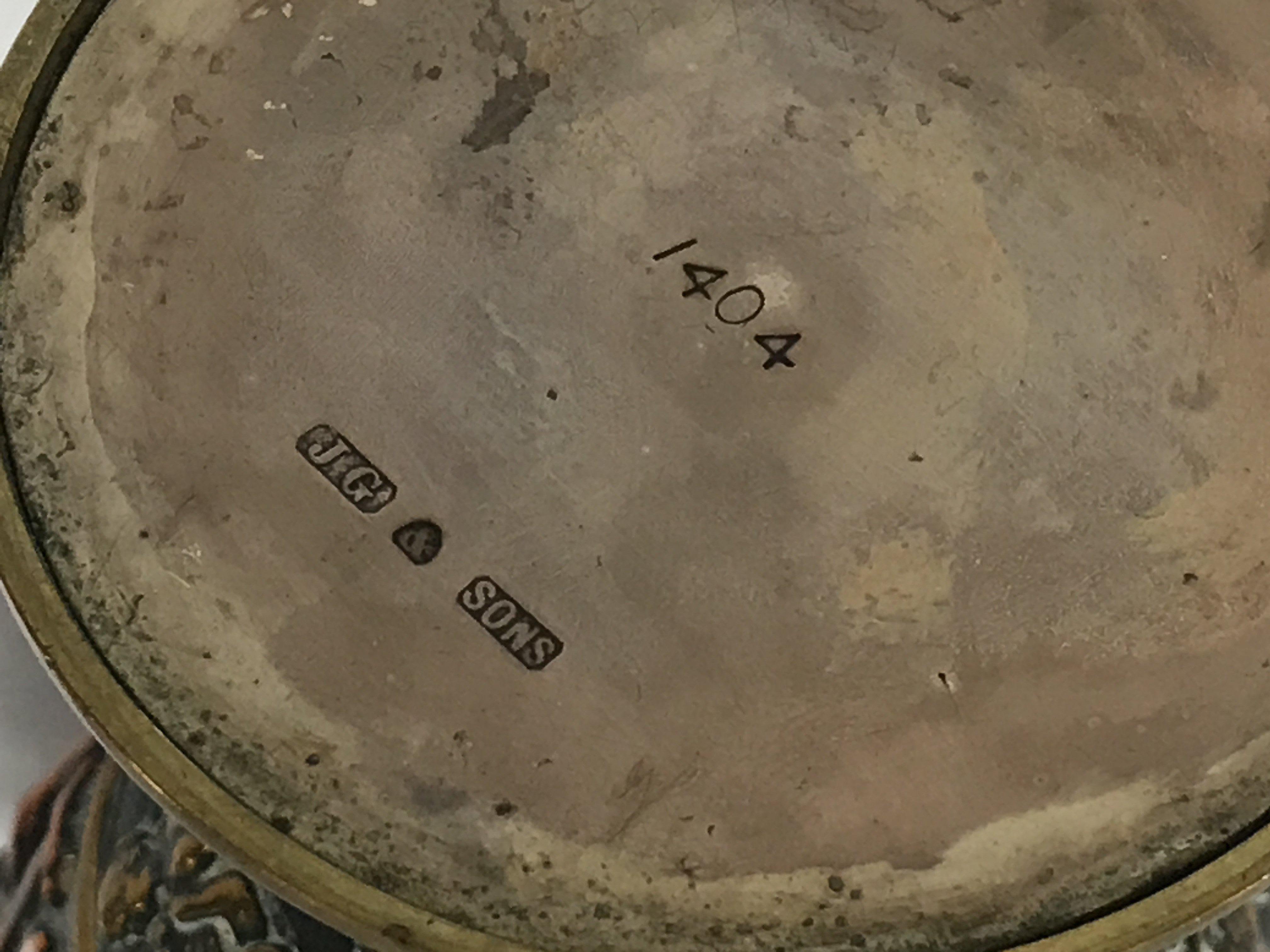 A Renaissance Revival Classical Ewer by JG & Sons (30cm tall approx) and a pair of matching goblets decorated with figures. (11.5cm tall)