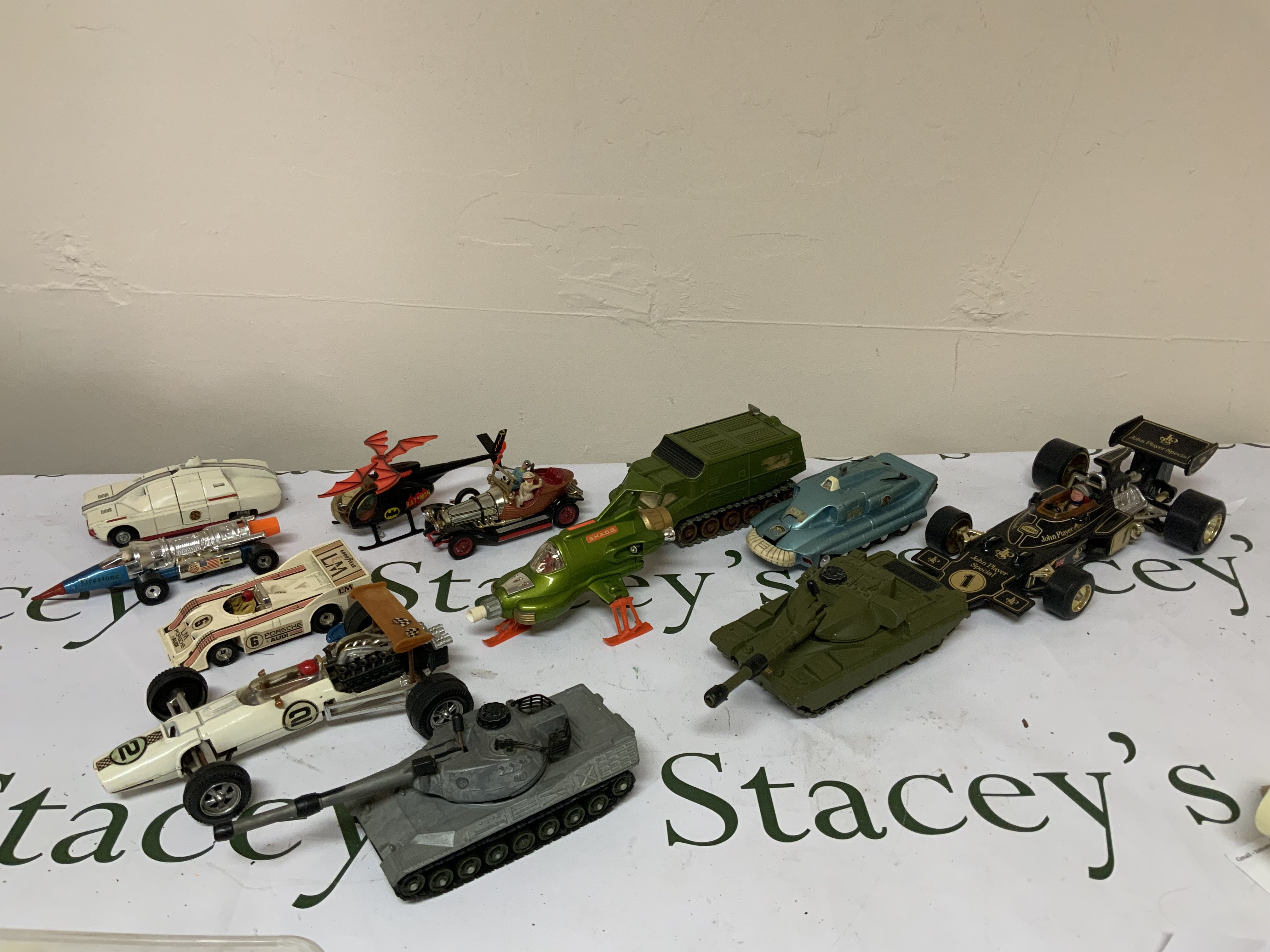 Withdrawn - A mixed lot of play world diecast toys to include film and military examples.