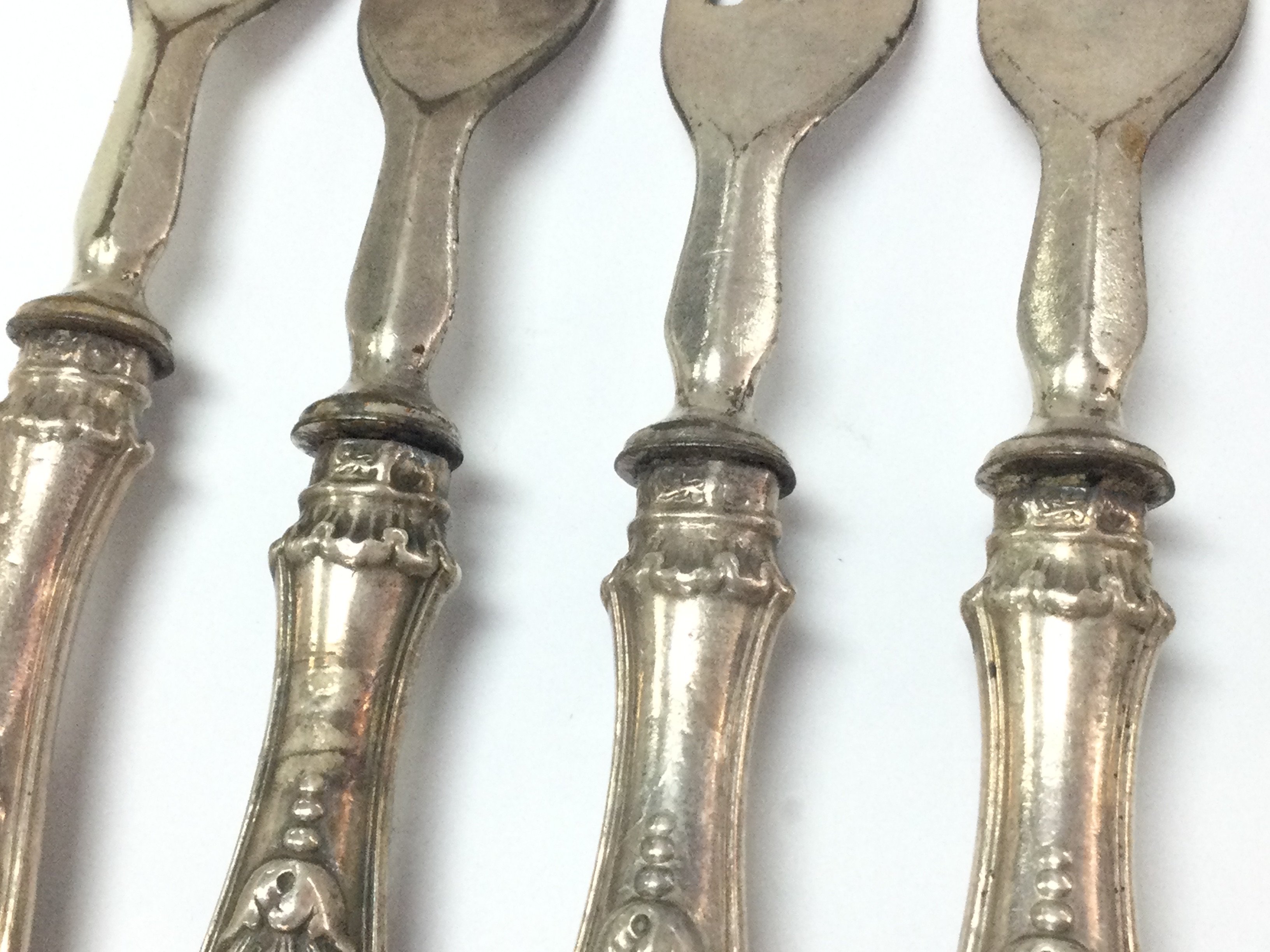 Ten hallmarked silver handled forks and a silver pin tray . Postage category b NO RESERVE