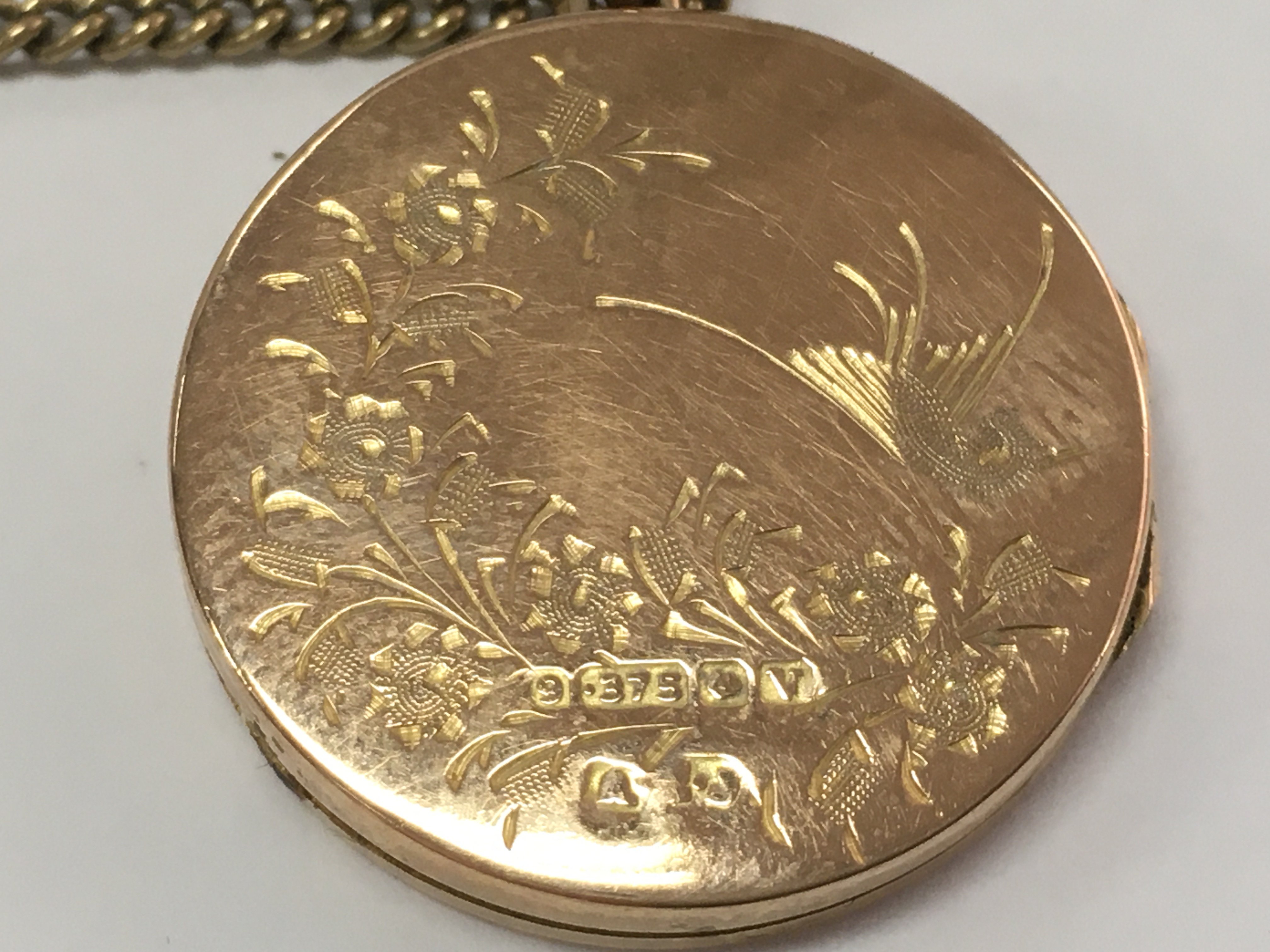 A 9ct gold locket and chain . 10g total weight. Postage category a