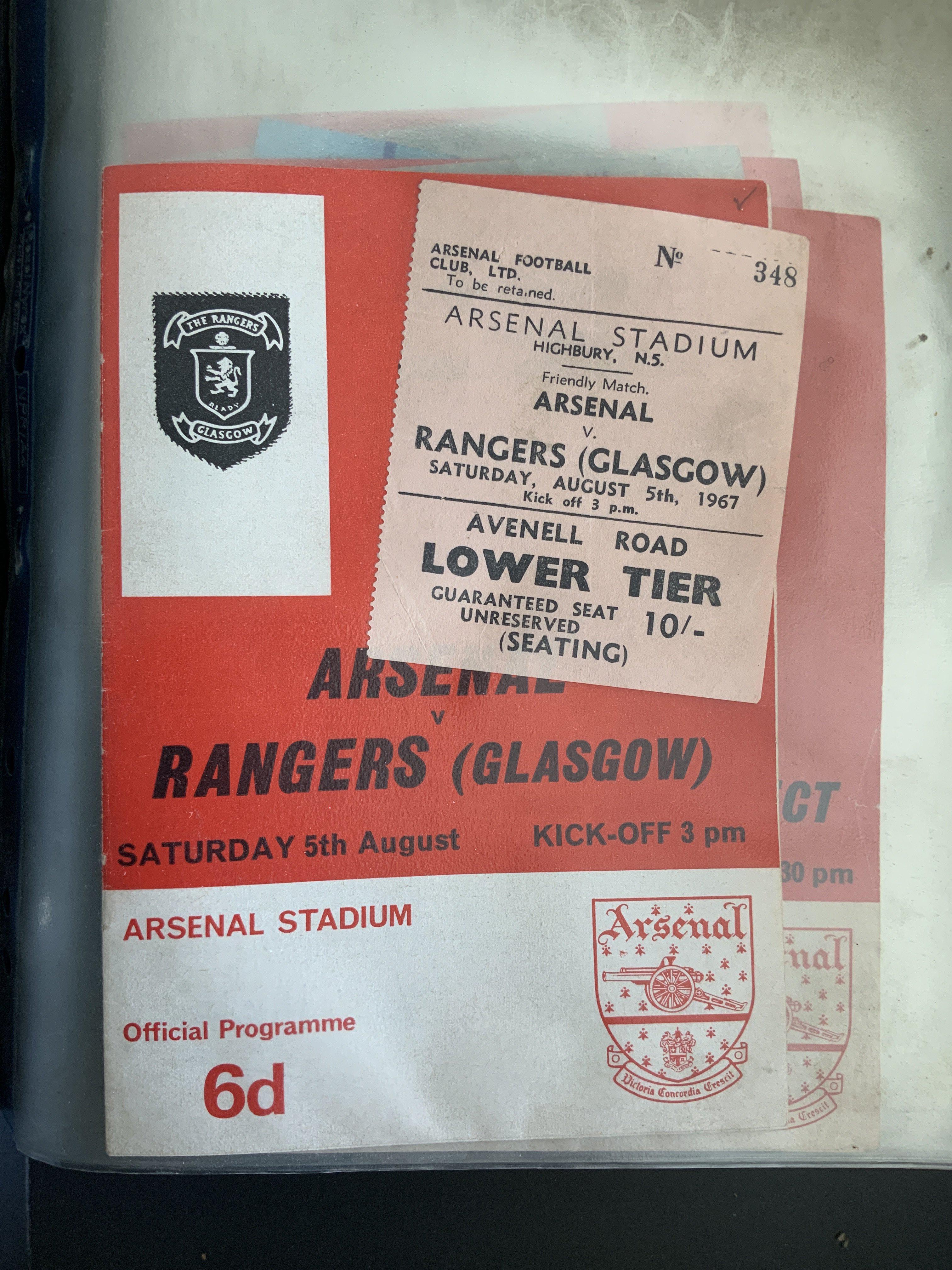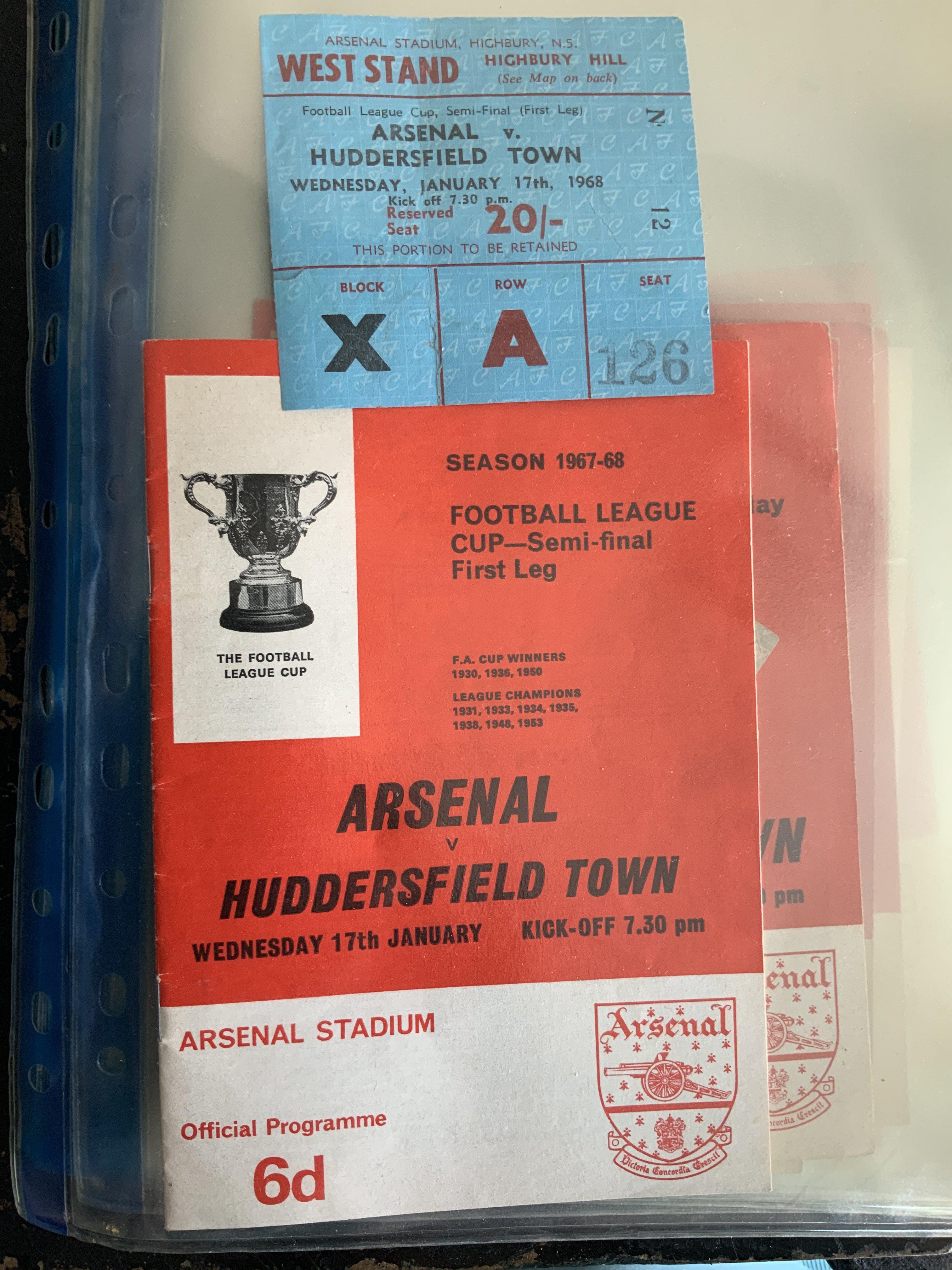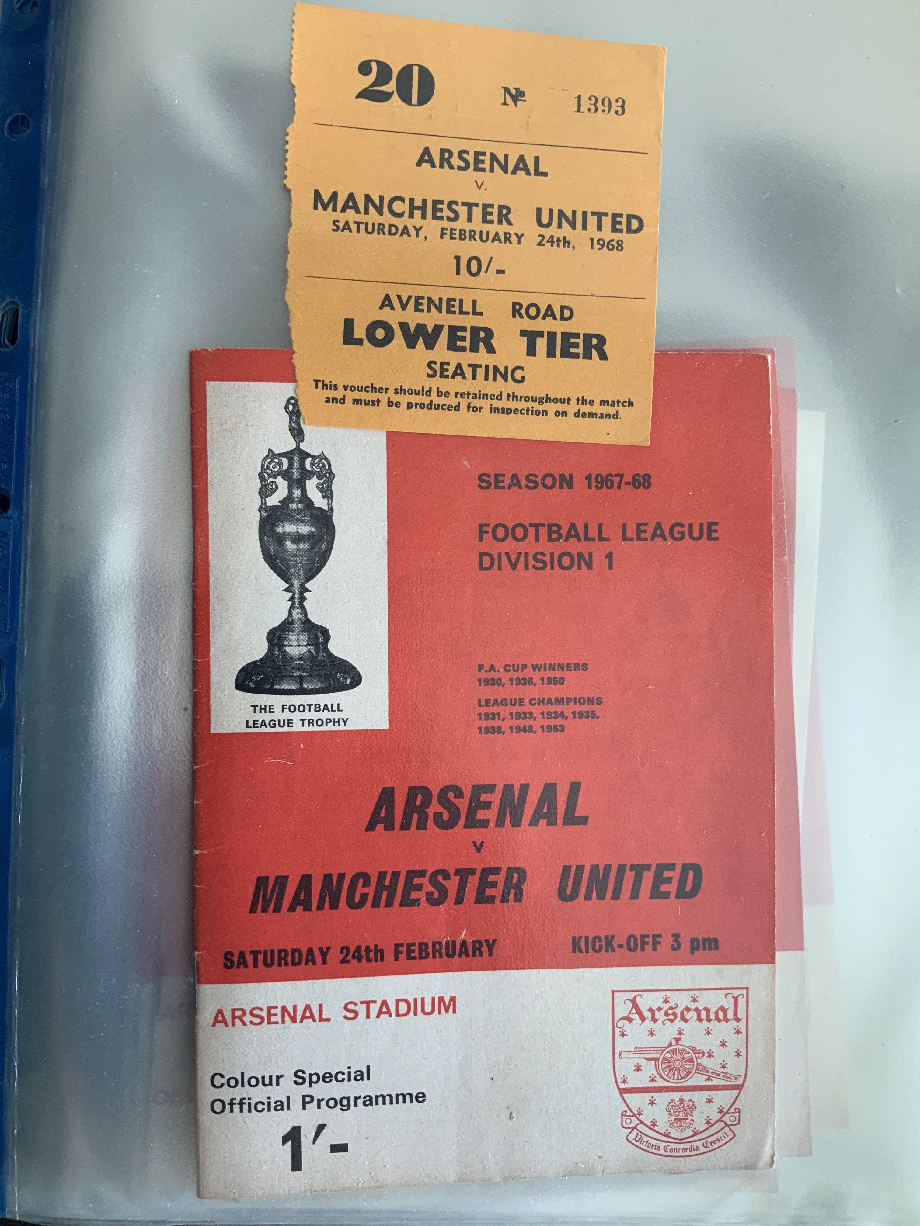 Arsenal 67/68 Football Programme + Ticket Collection: 29 1st team homes with accompanying tickets. Includes Manchester United and League Cup matches with semi final. There are two additional Arsenal X1 single sheets which do not have tickets. (60)