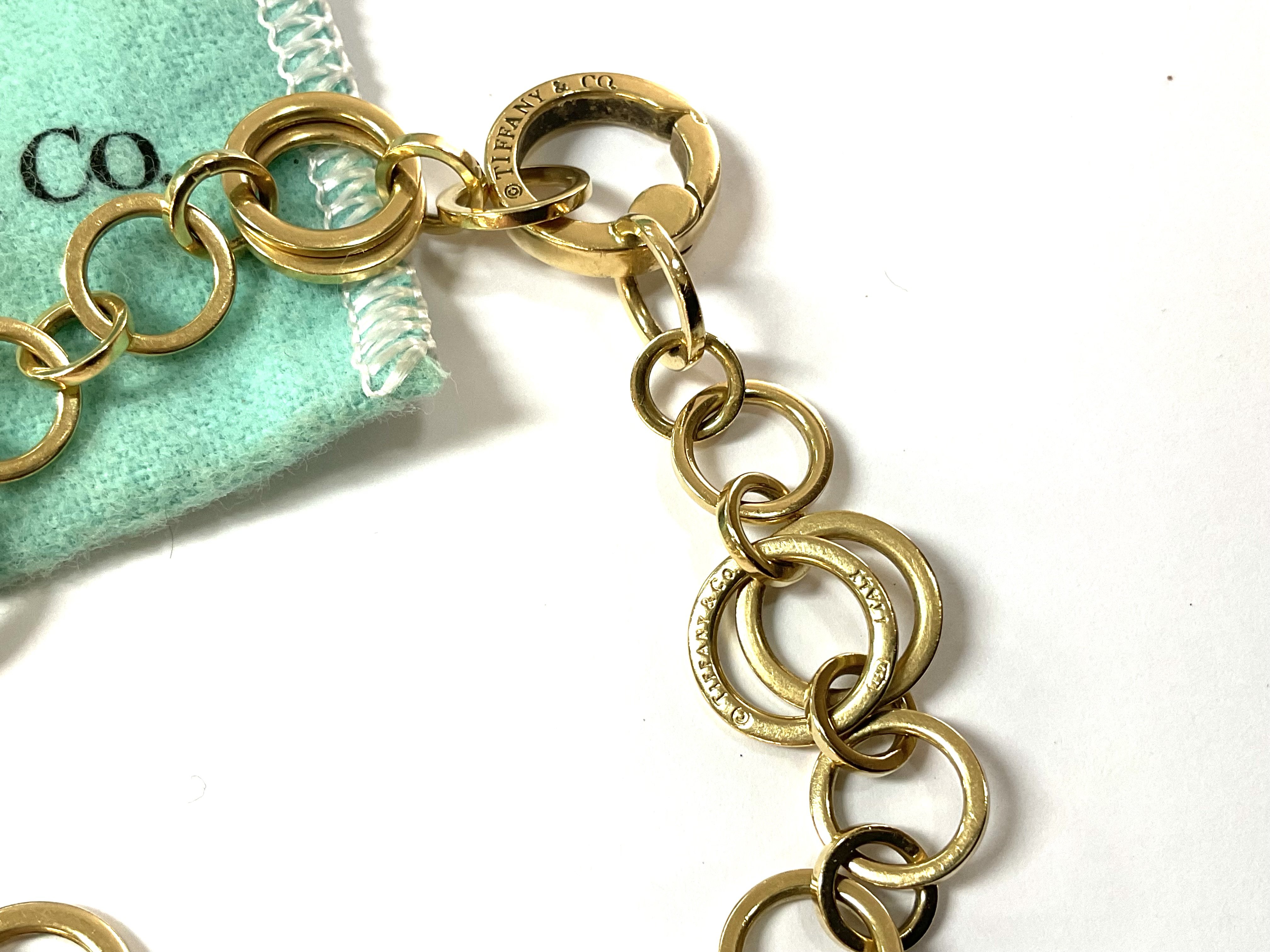 A Genuine Tiffany & Co 18ct yellow gold double hoop bracelet, purchased late 70s.(18cm).