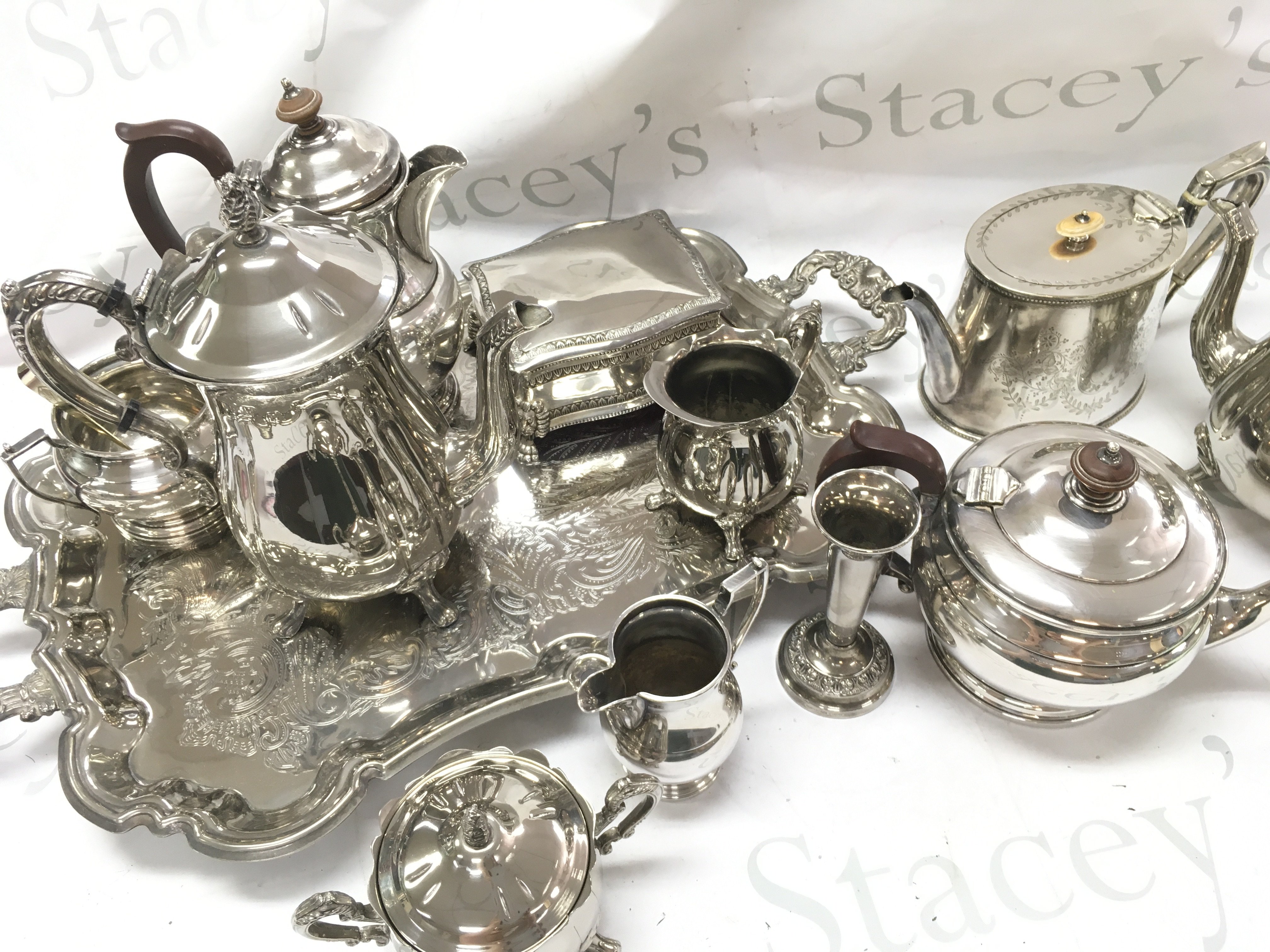 Silver plated tea set including tray, tea jugs etc. this lot cannot be posted