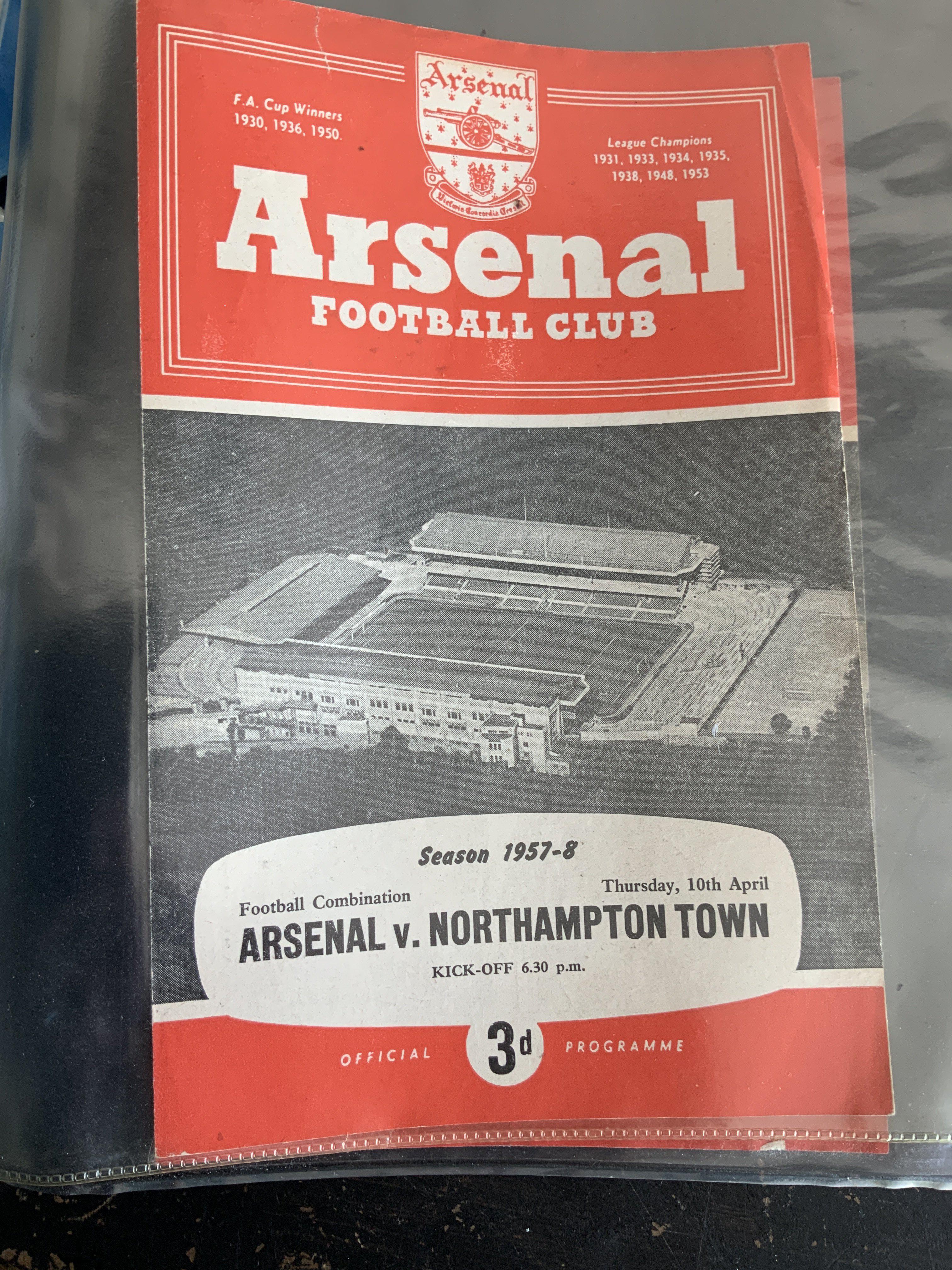 57/58 Arsenal Complete 1st Team + Reserves Football Programmes: Home programmes with all 24 first team including a few friendlies and the Busby Babes Manchester United match. C/W 21 from the Football Combination which is probably also complete. Majority good. (45)
