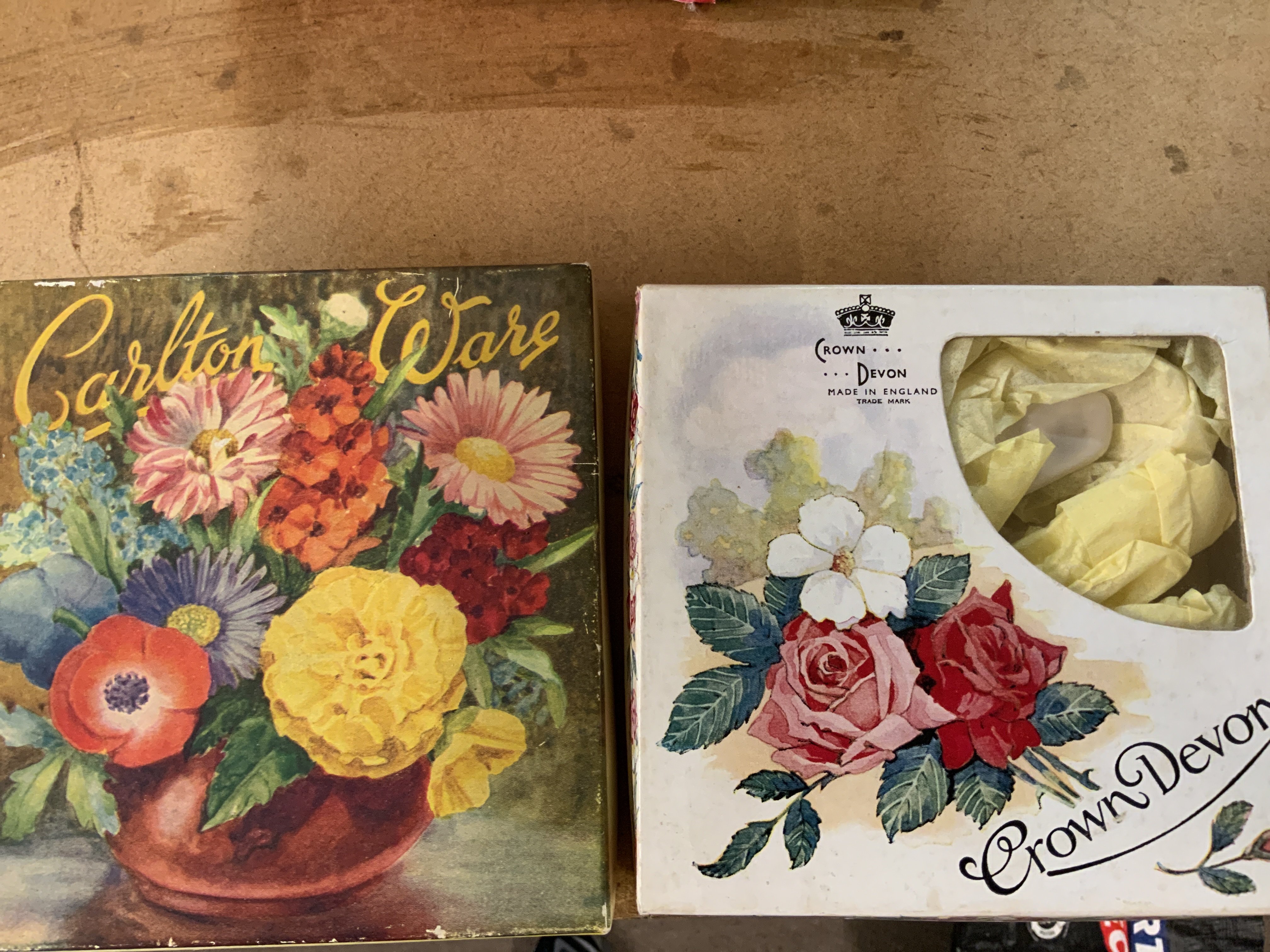 A mixed lot of silver plated items and ceramics to include a boxed Carlton ware dish and a boxed crown Devon dish.