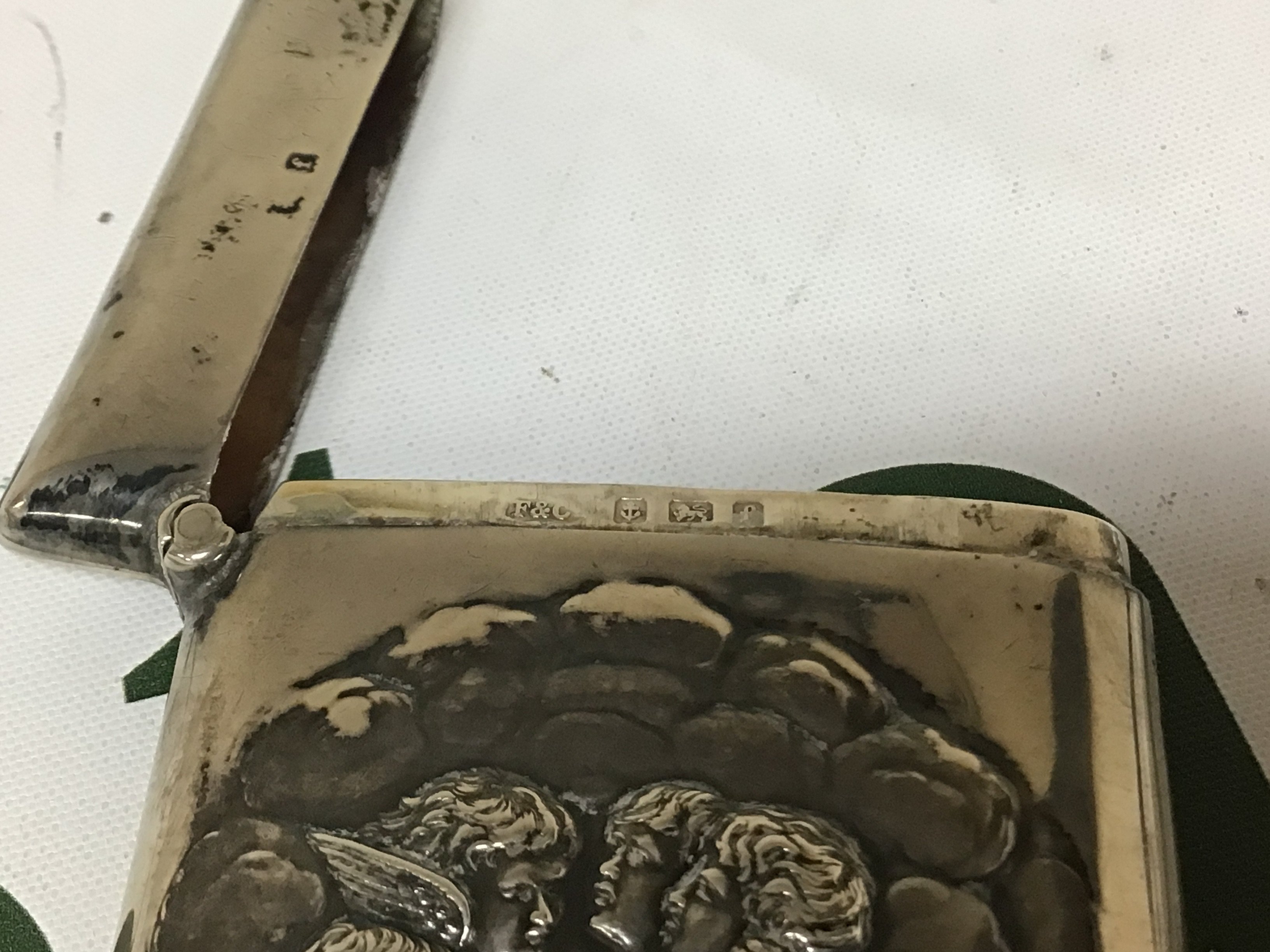 A Silver card Case decorated with winged cherubs amounts clouds. Birmingham hallmarks.
