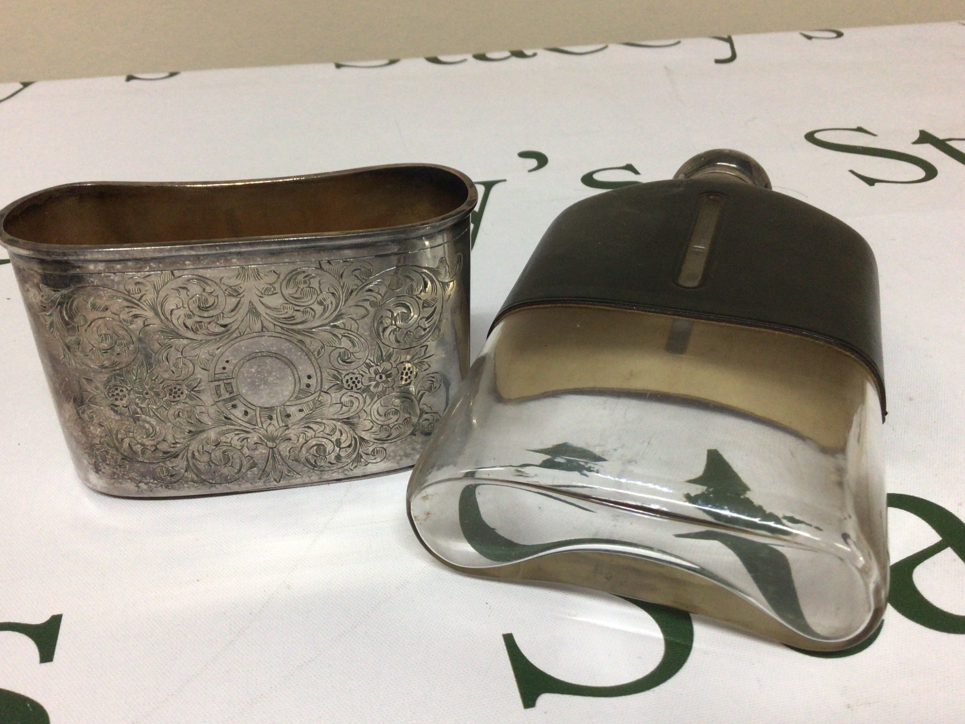 A late Victorian hip flask half pint size with a screw cap top detachable silver plated cup base leather lined bottle nice condition. Height 18cm