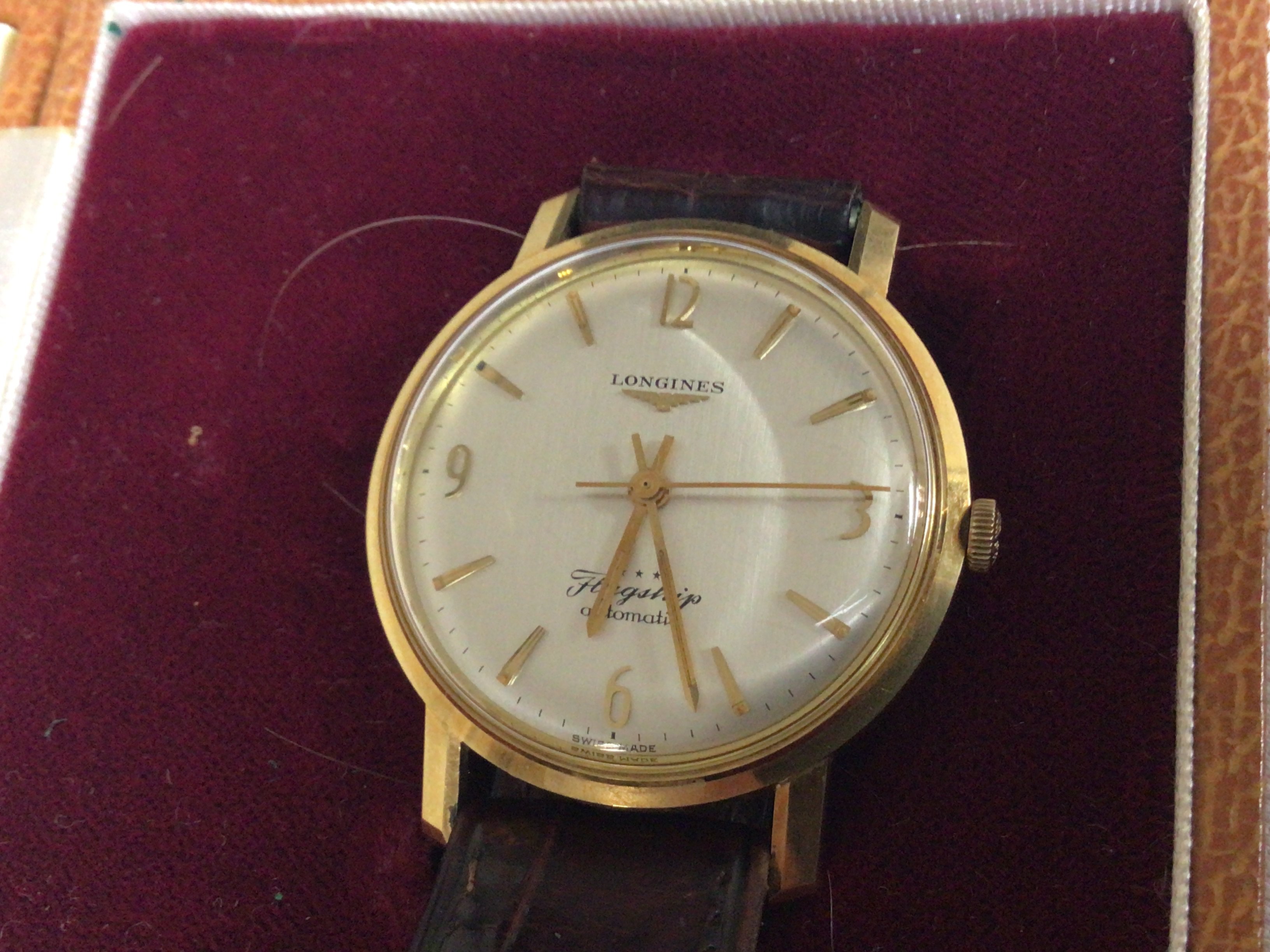 A Vintage Gents Longines watch Flagship automatic seen working with Longines strap and original box.