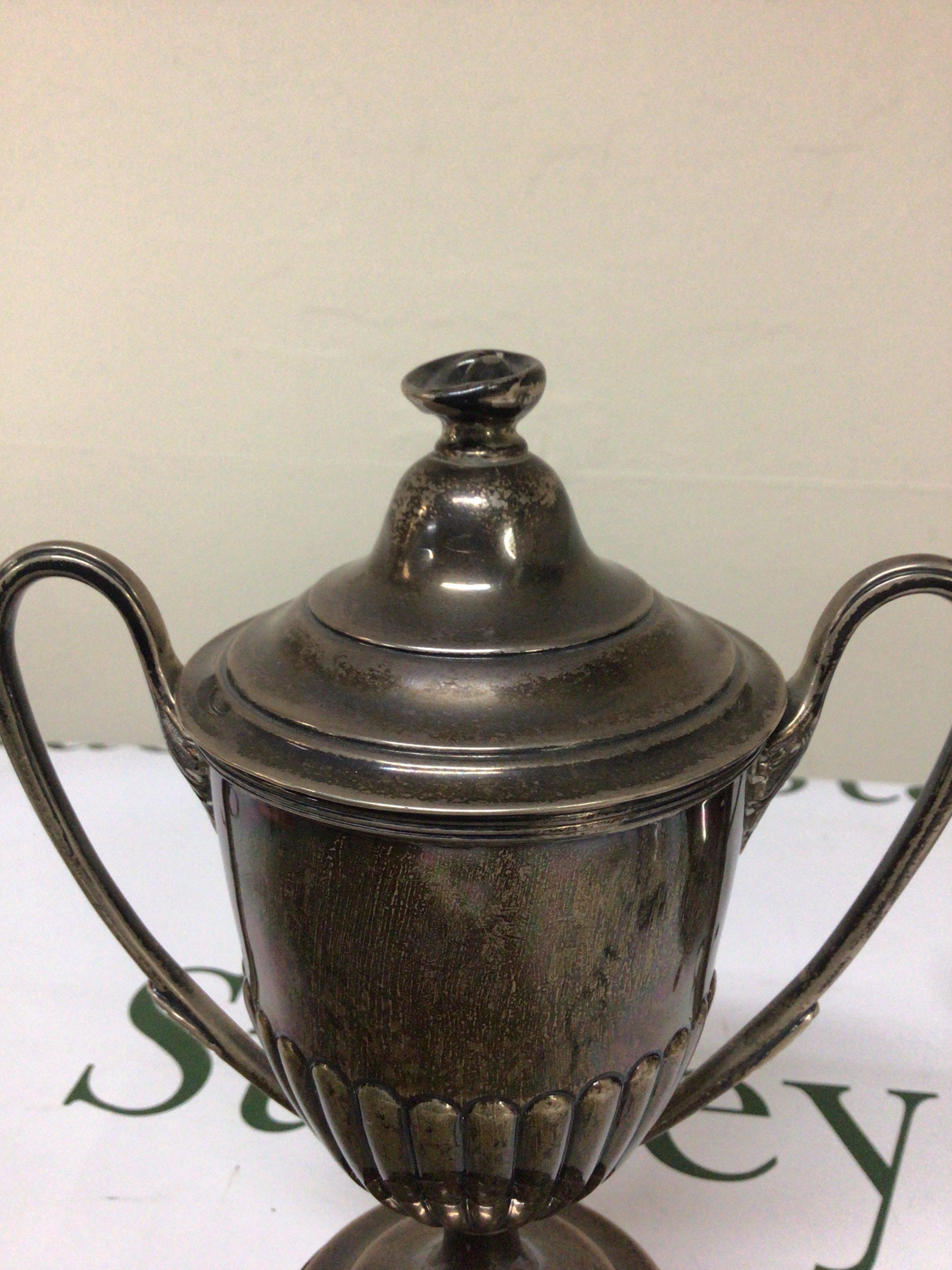 A Silver Trophy cup and lid with half fluted sides Birmingham hallmarks. No inscriptions.Height 23cm. Weight 255g