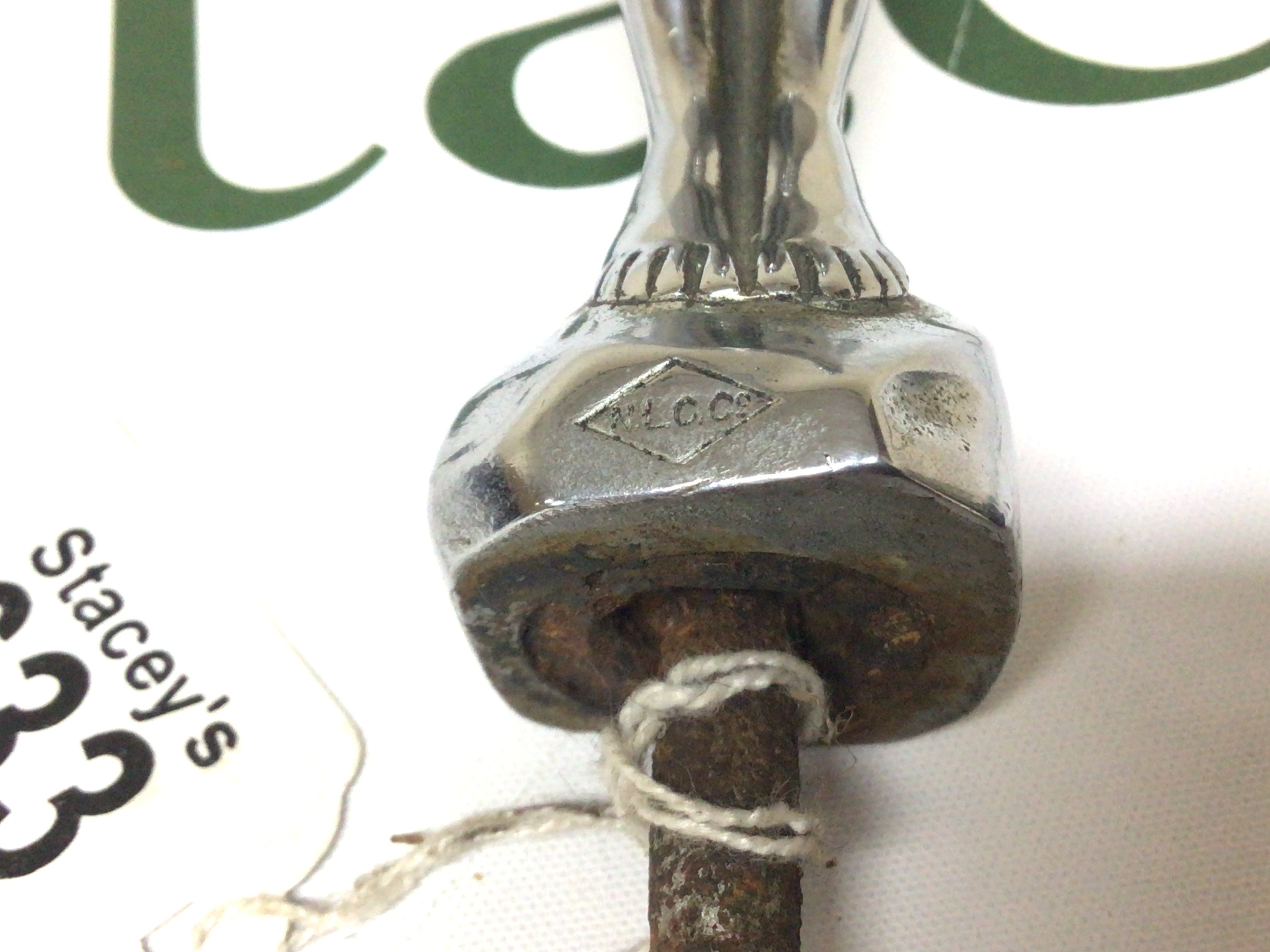 A 1920/30 solid cast metal and Chrome plated car mascot a diving naked nymph with flowing hair makers stamp NLCCo with fitting attached total length 21cm.