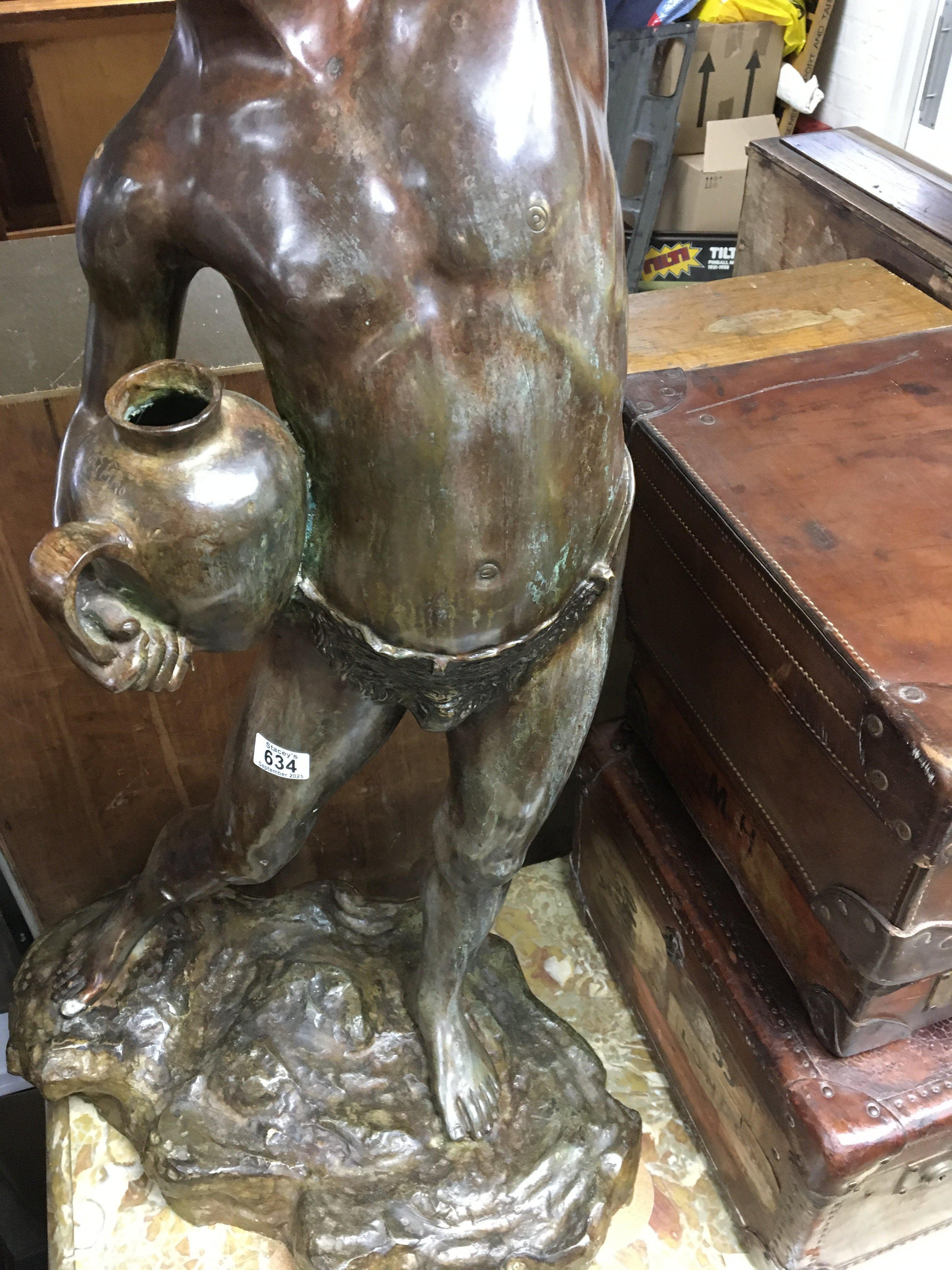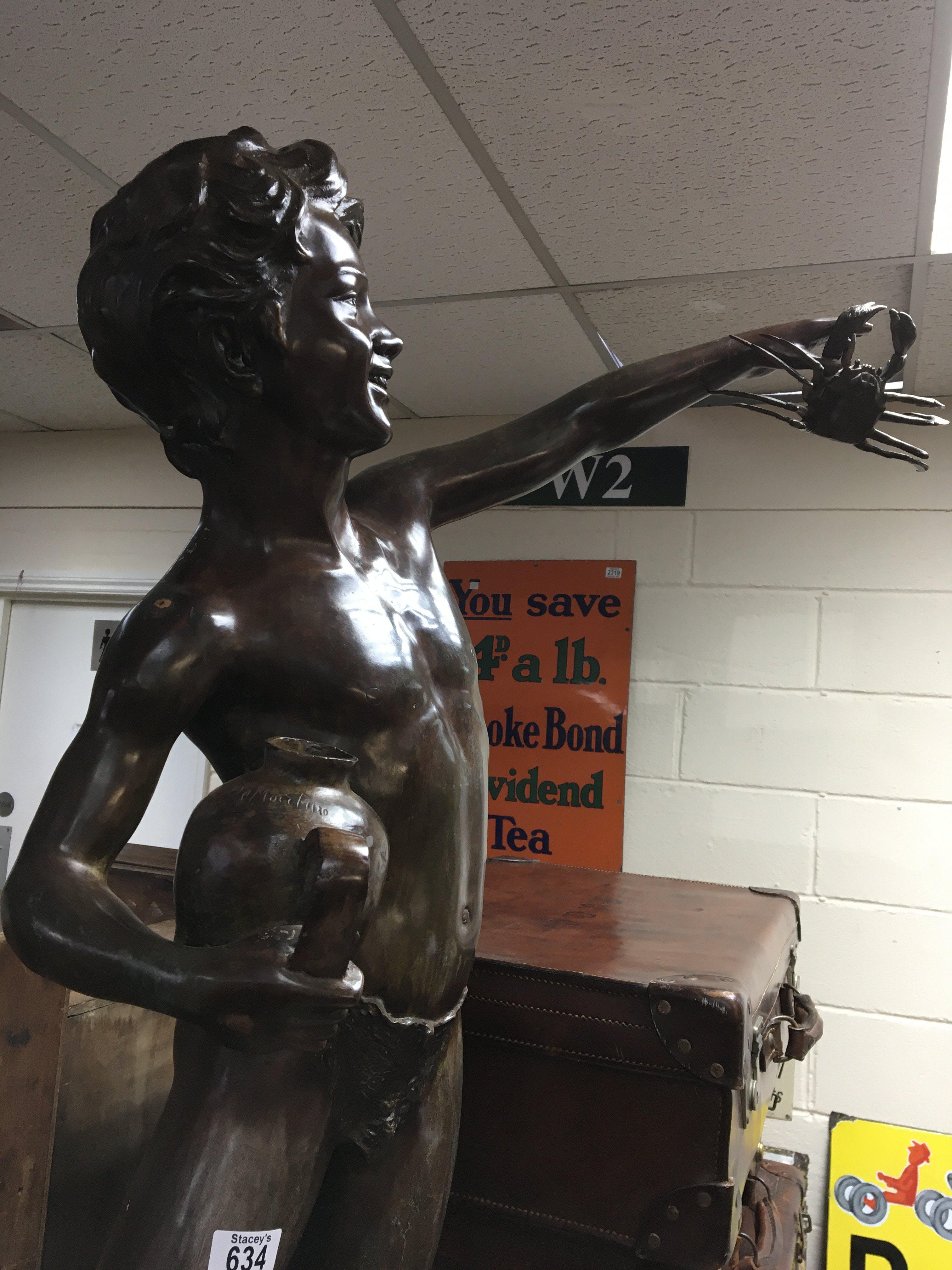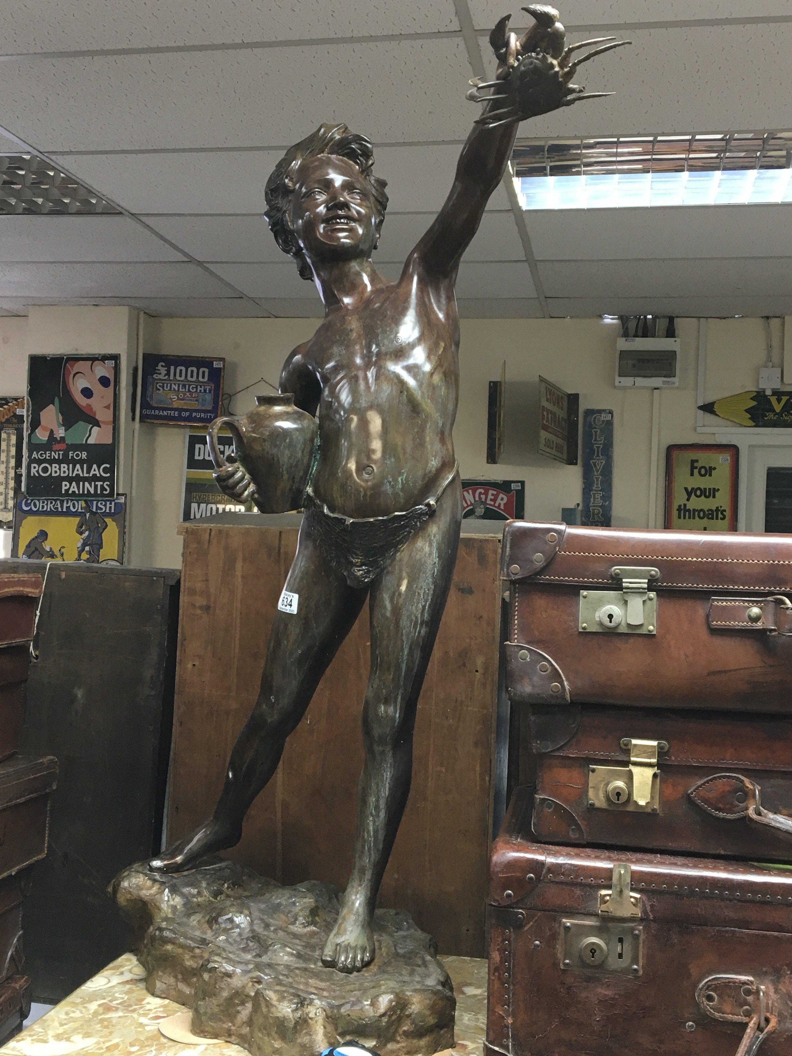 A large bronze in the manor of Giovanni De Martino figure of a boy holding a crab 115 cm .