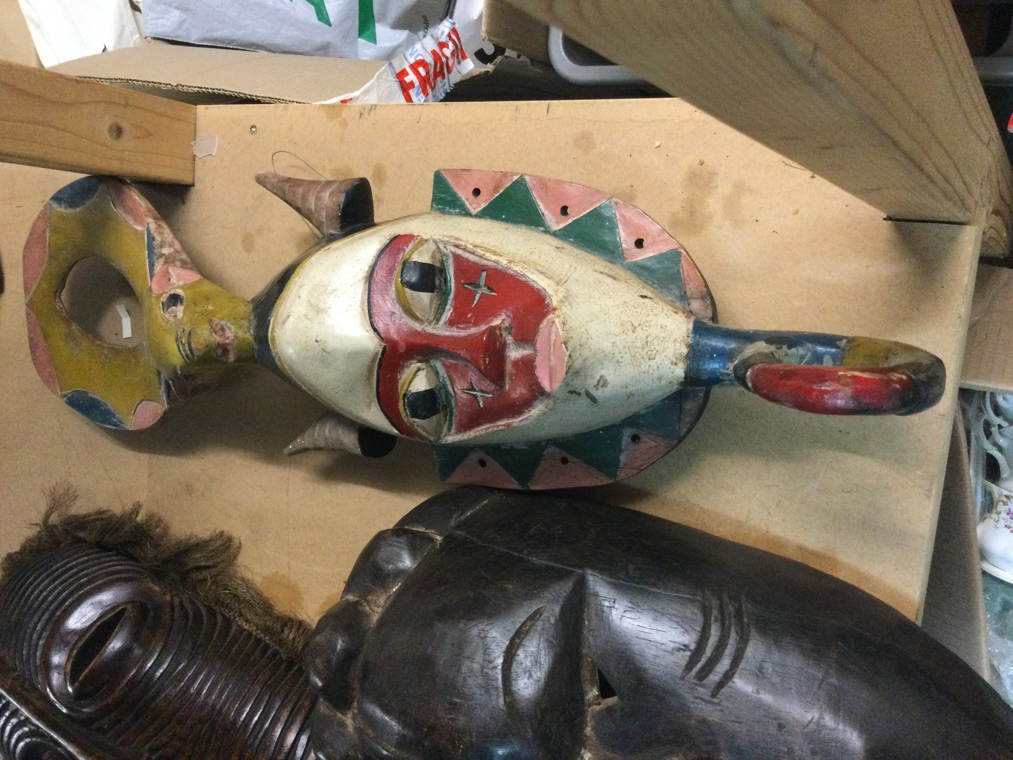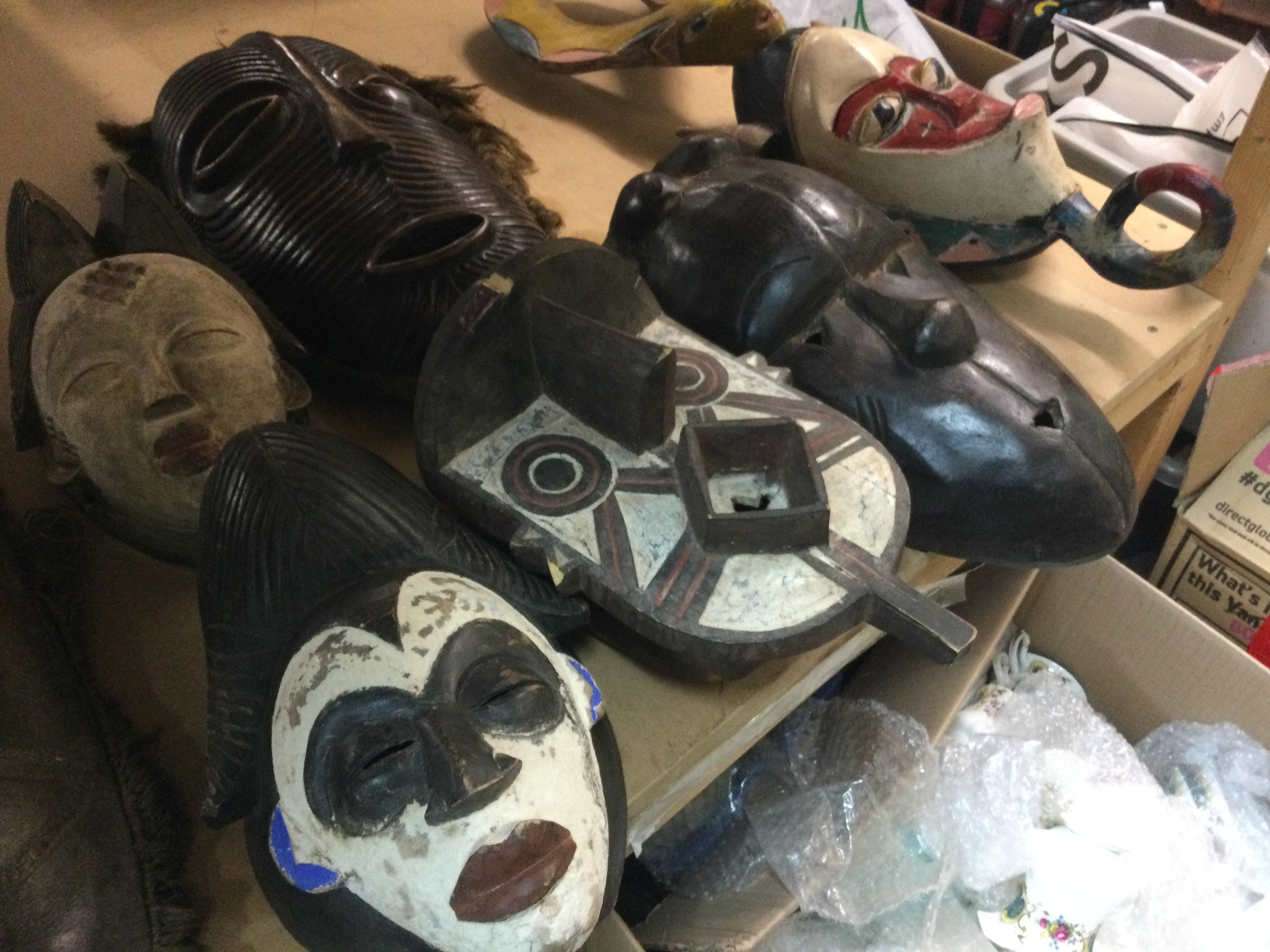 A collection of African tribal masks including Republic of Congo Bo Bo , Ivory Coast and Cameron.