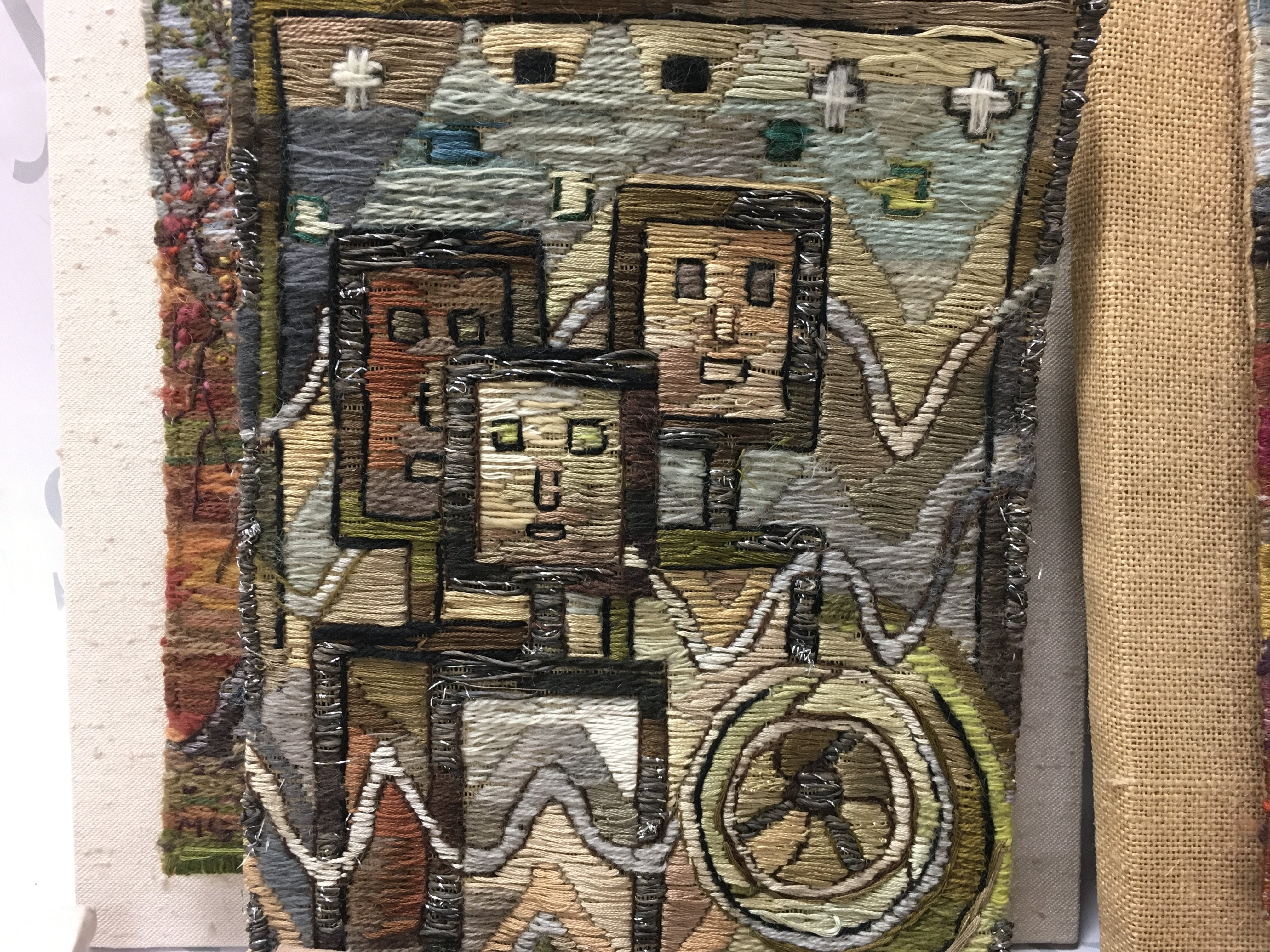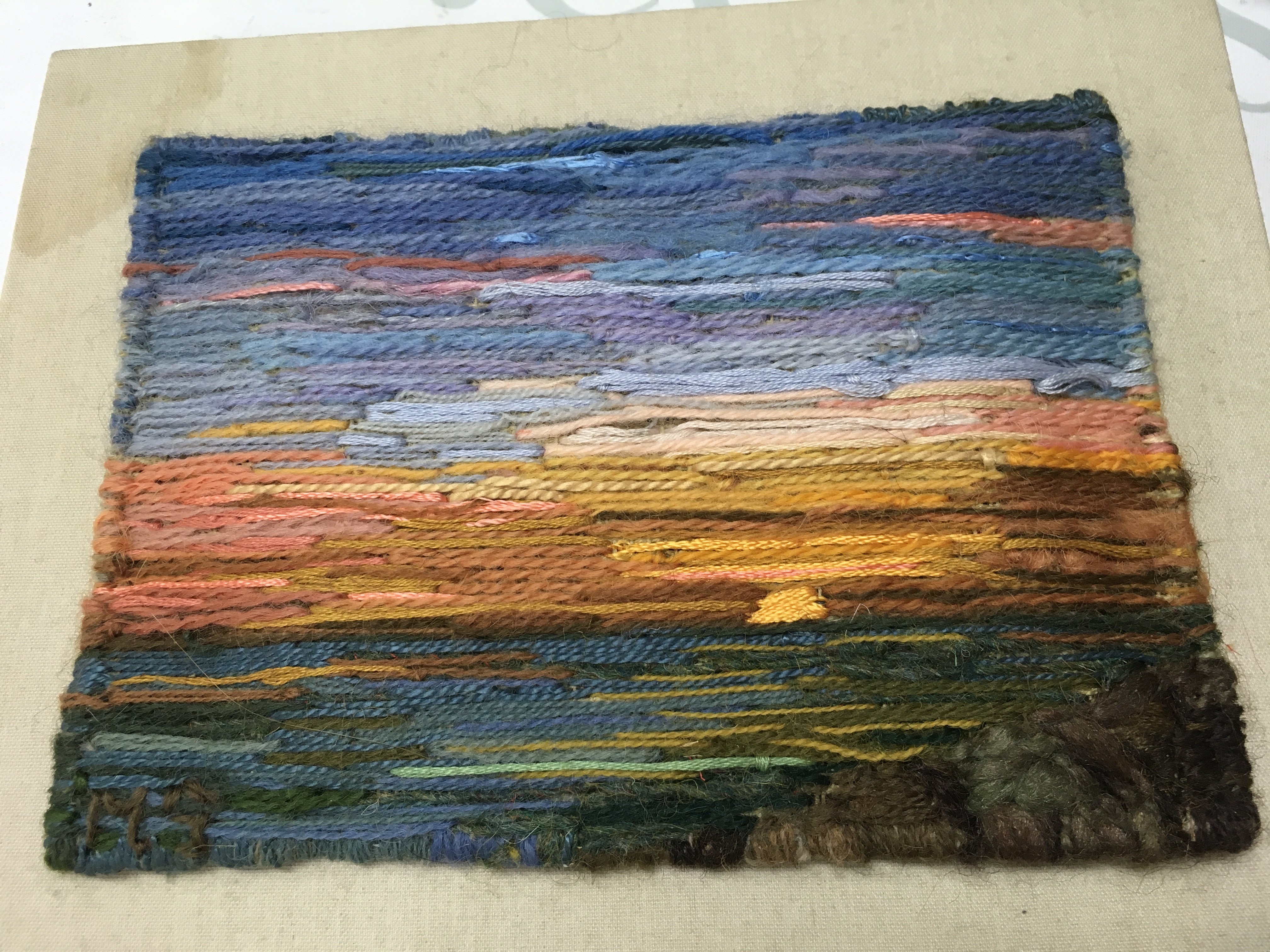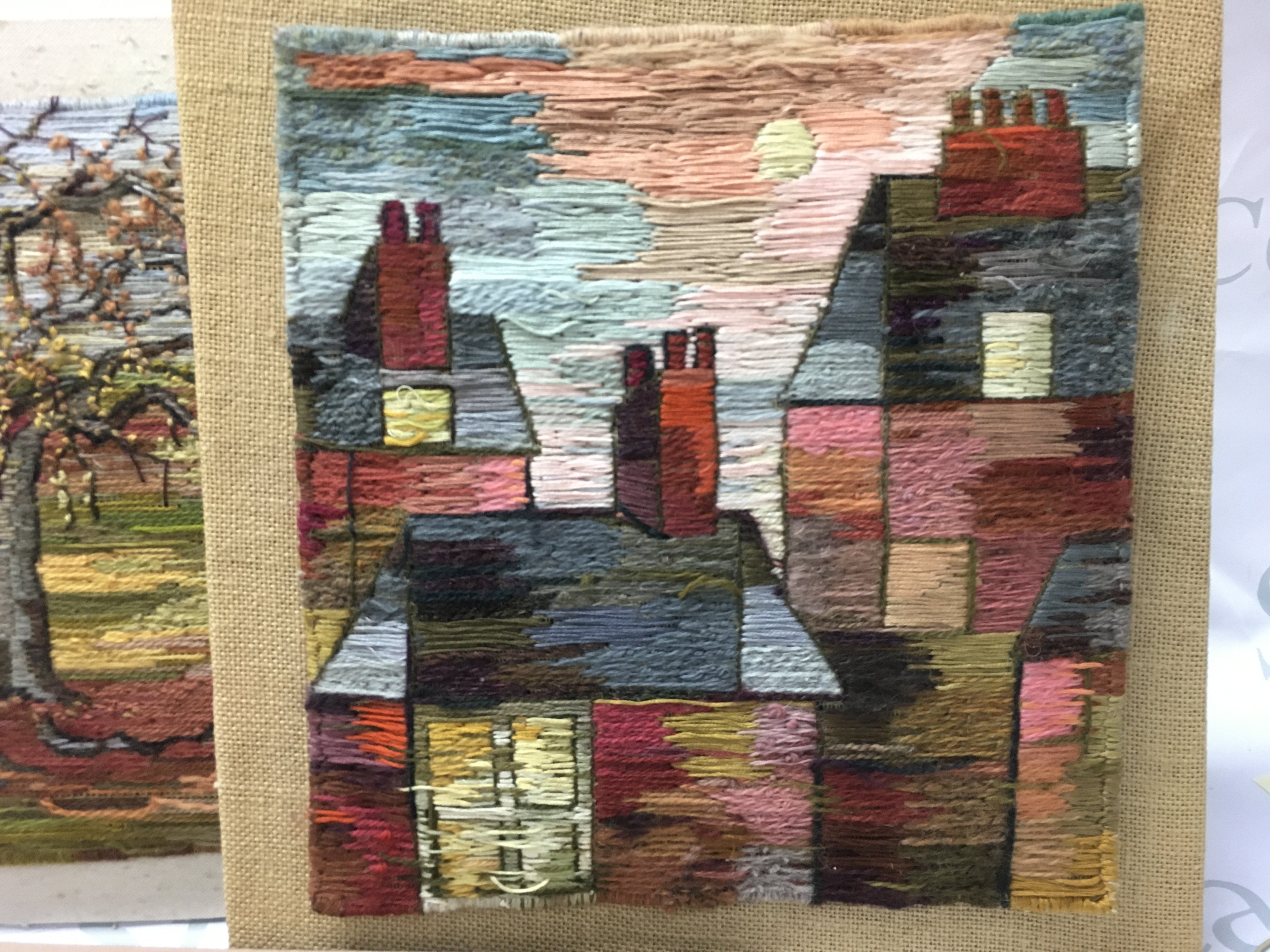 Five Miriam Sacks (1922-2004) unframed small tapestries . Dimensions ranging from 21.5x18cm and 33x35cm. Postage category C