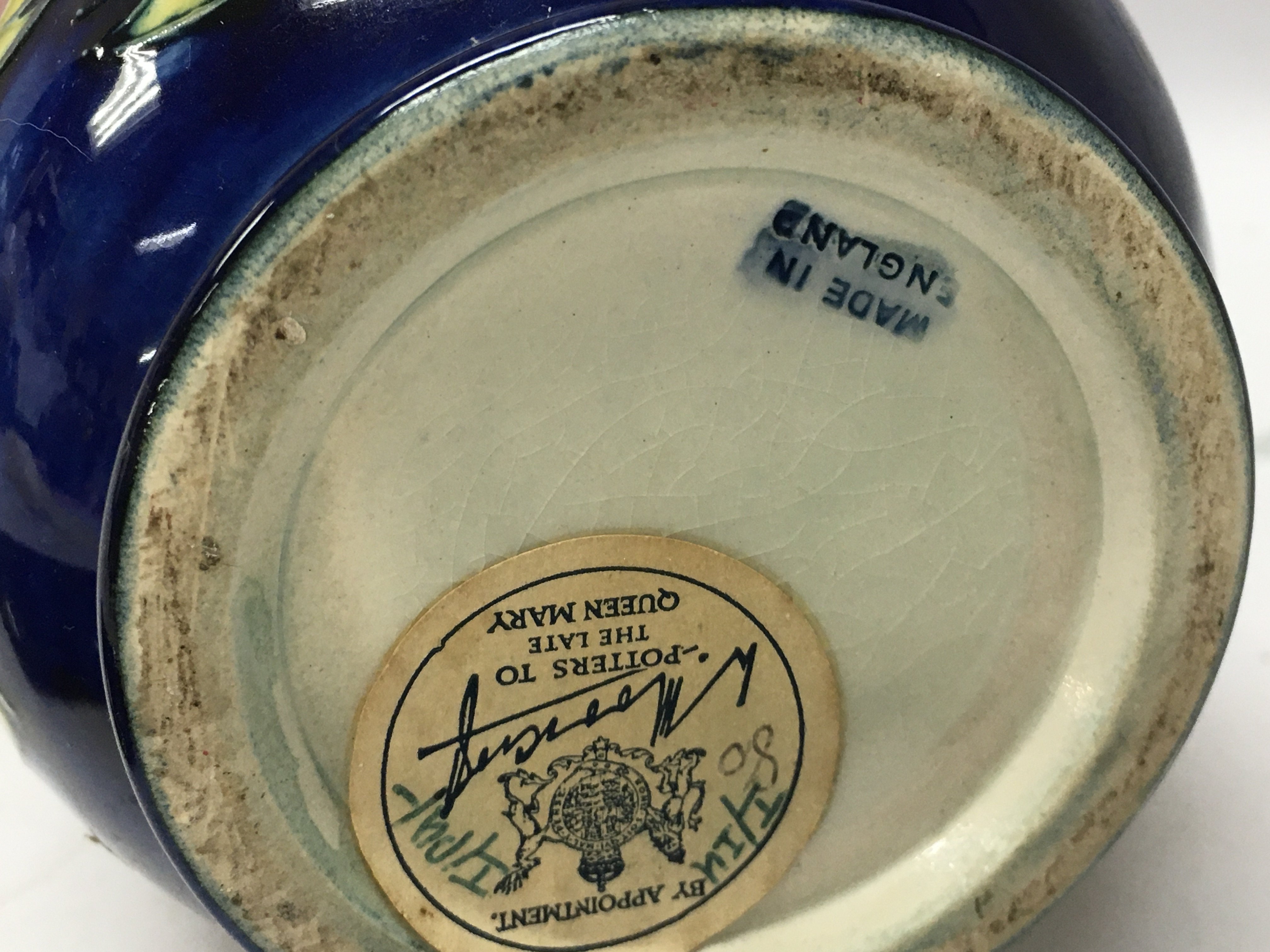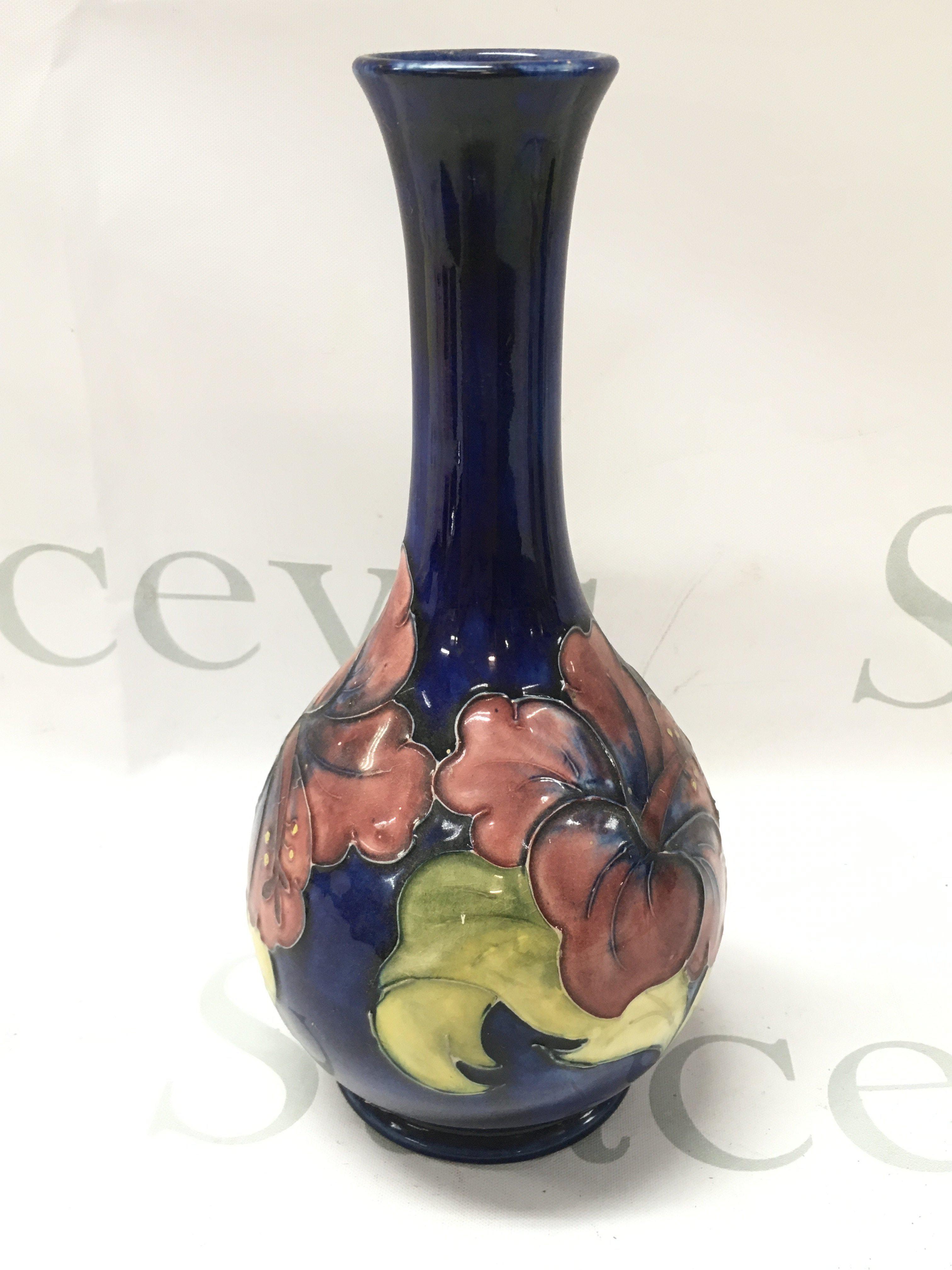A Moorcroft Hibiscus vase, 21.5cm tall. No obvious damage or restoration, some crazing. This lot cannot be posted