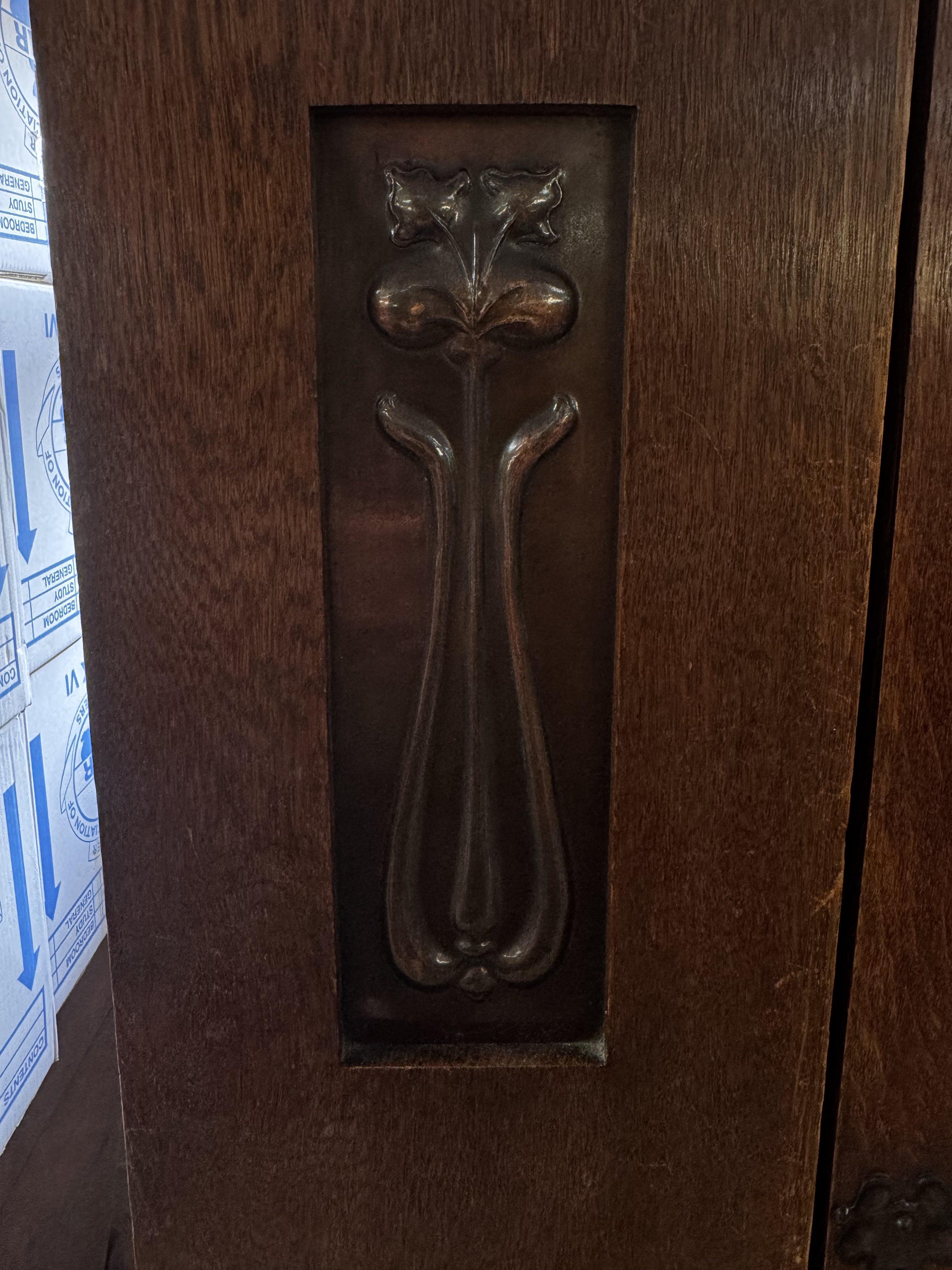 Arts & Crafts Oak Hall Robe and dating from around 1890 Inset with 3 copper panels. 194cm x 120cm x 52cm.