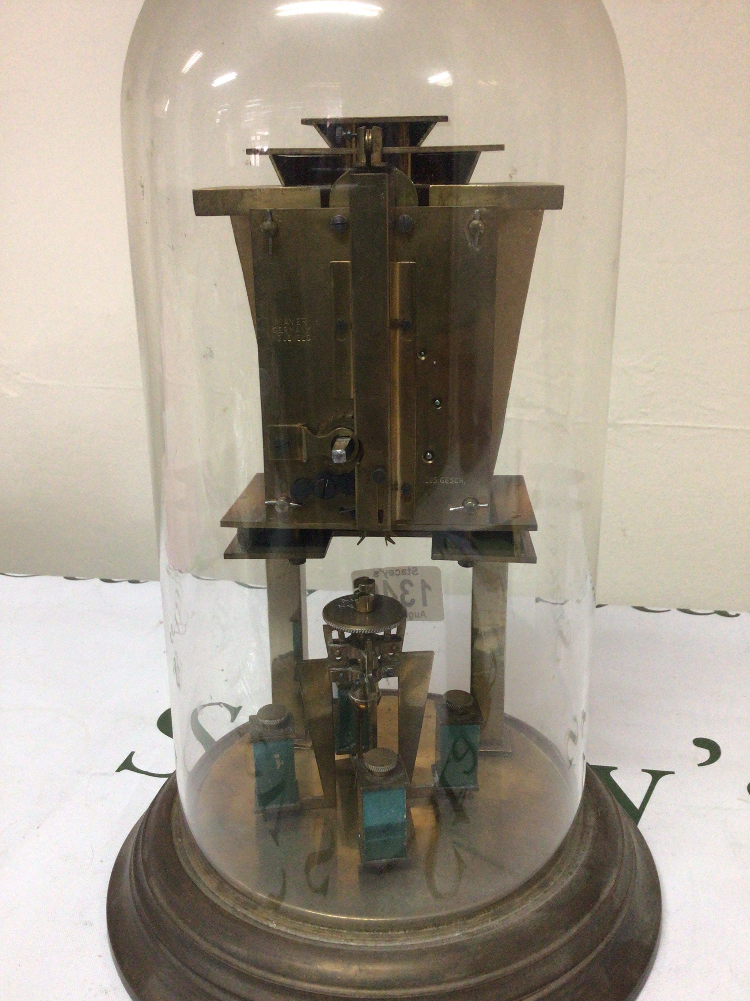 An Art Deco German Anniversary clock under a glass dome with metal pillars dome no damage clock for restoration.Height 32cm.- NO RESERVE