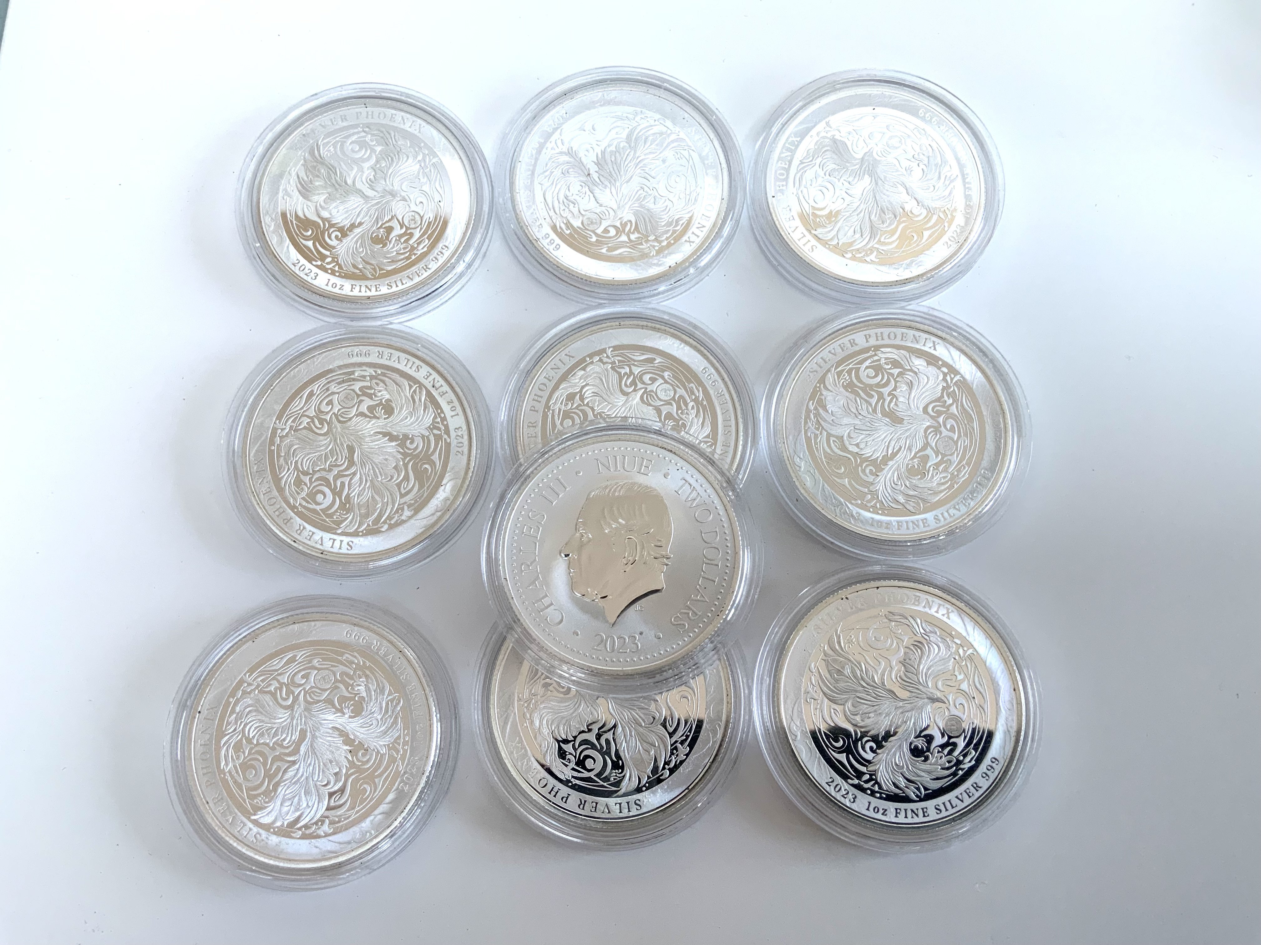 2023 Silver Phoenix 1 Ounce fine silver 2 Dollar coins, King Charles portrait on reverse. (13)