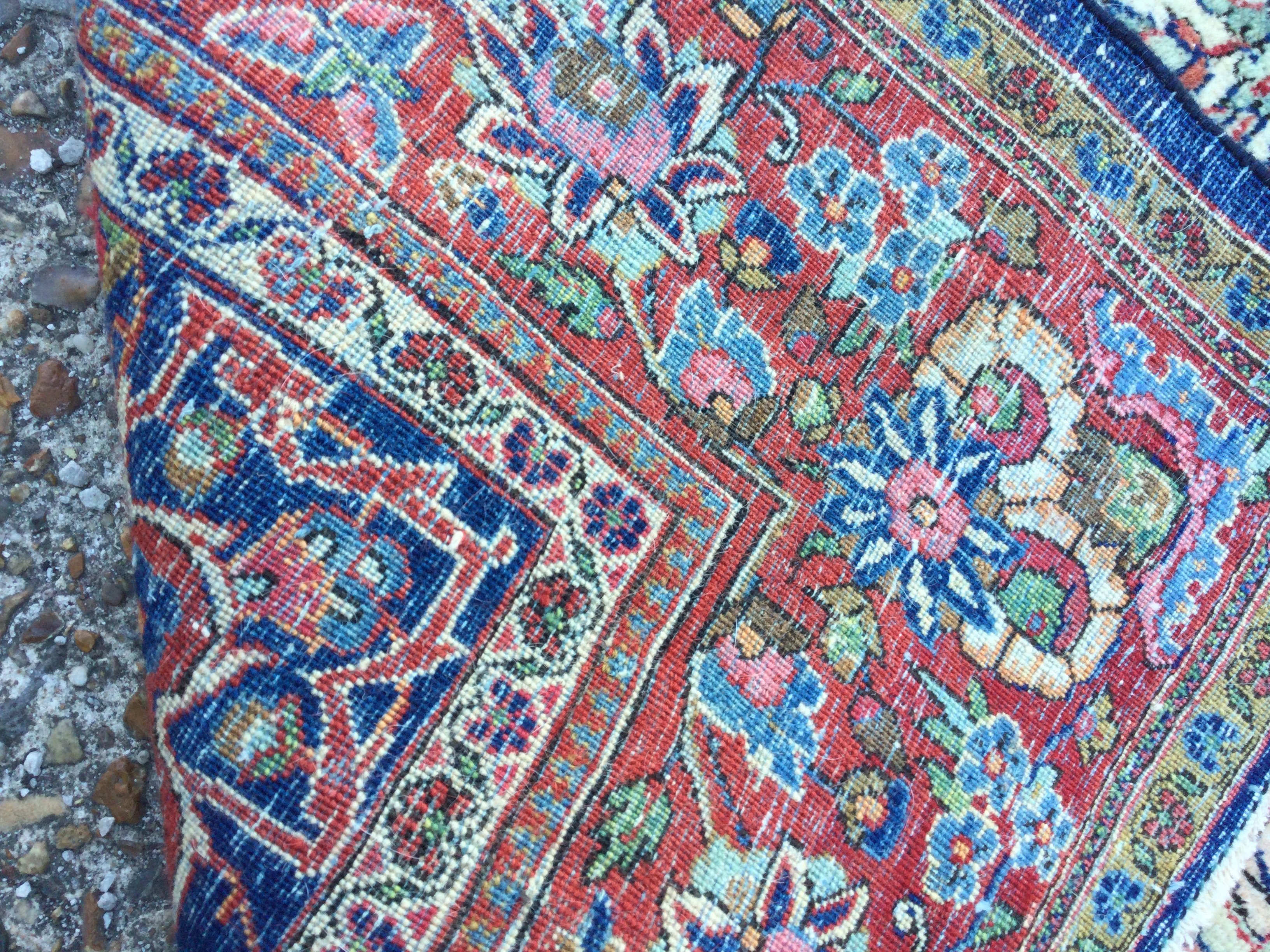 A Persian rug with floral centre and board 210 x 130 cm .