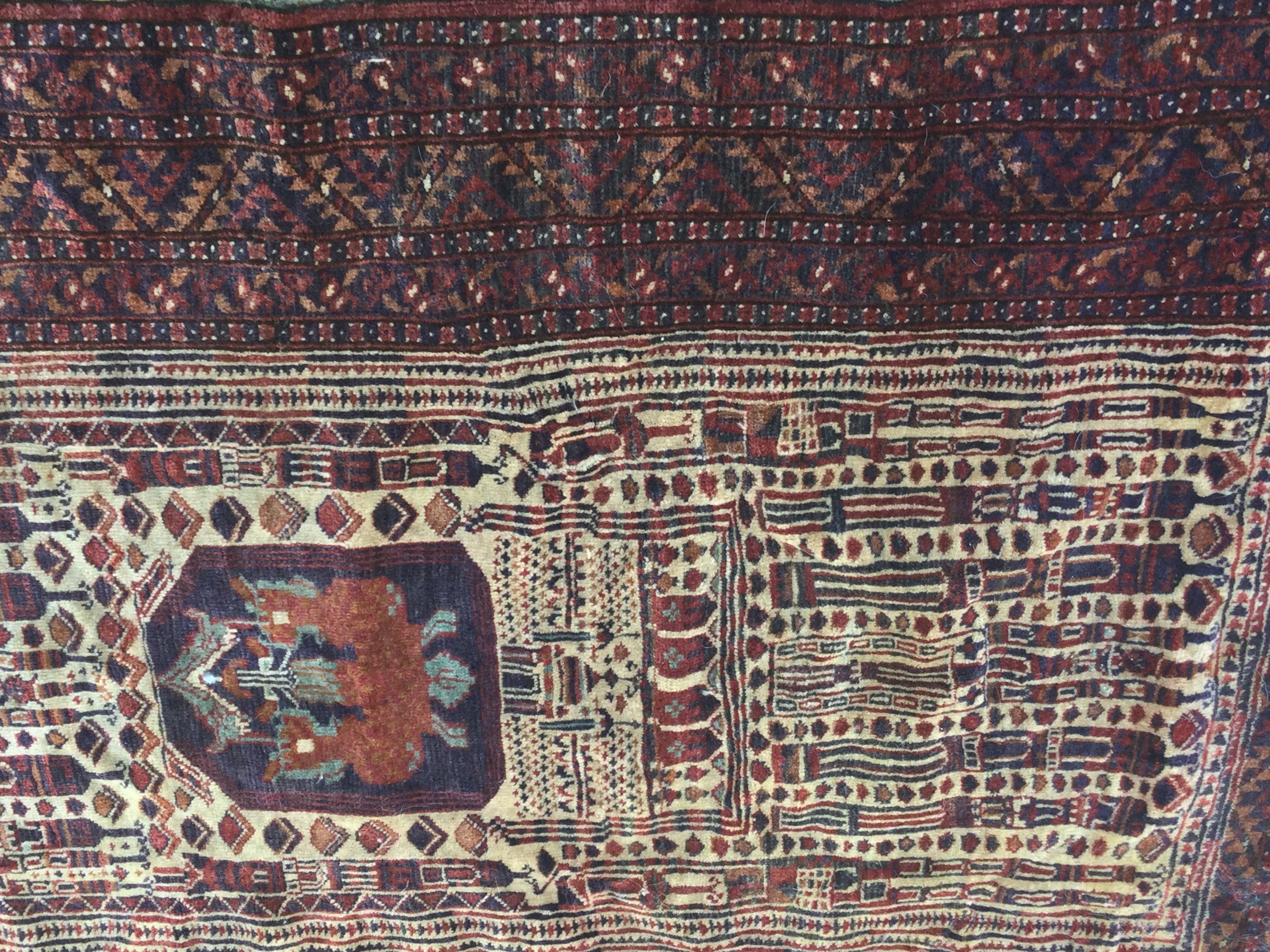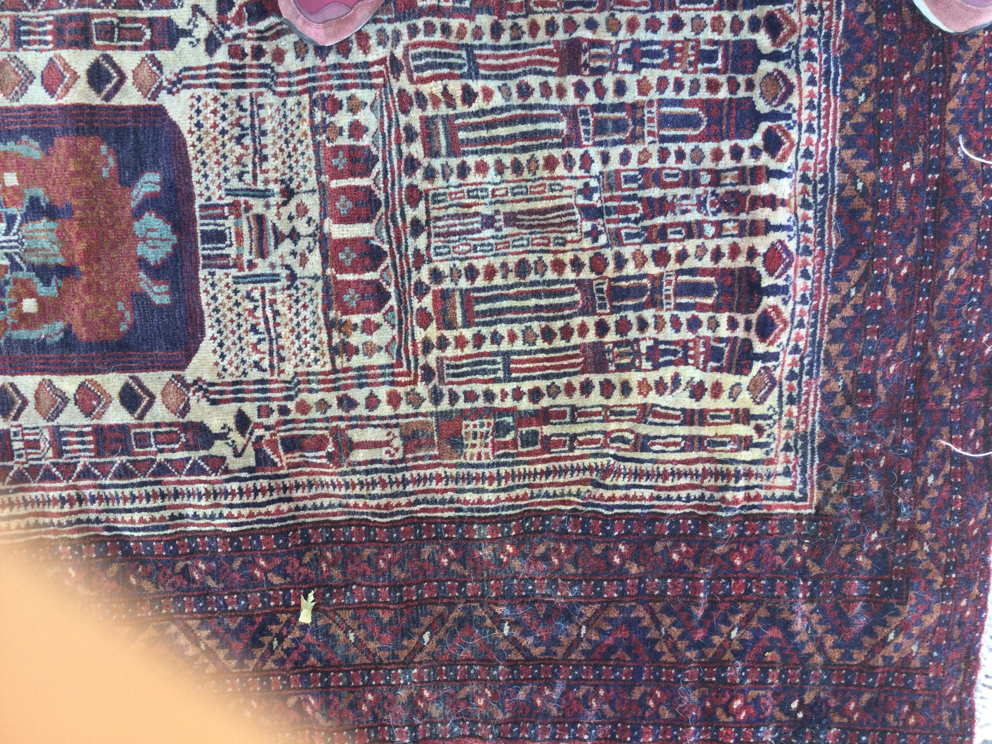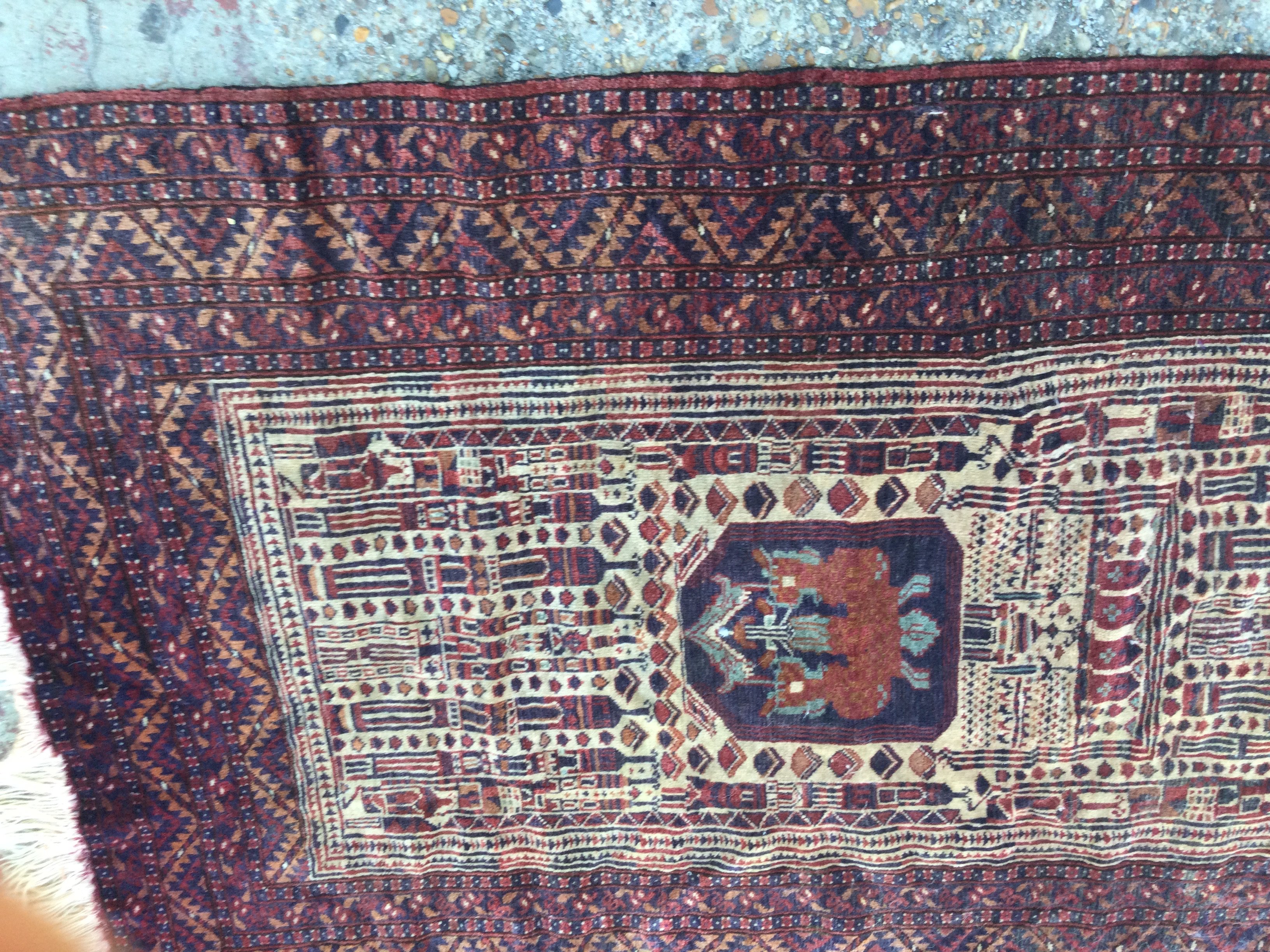 A Afghan rug with a central motif and repeated geometric boarders.170 x118 .
