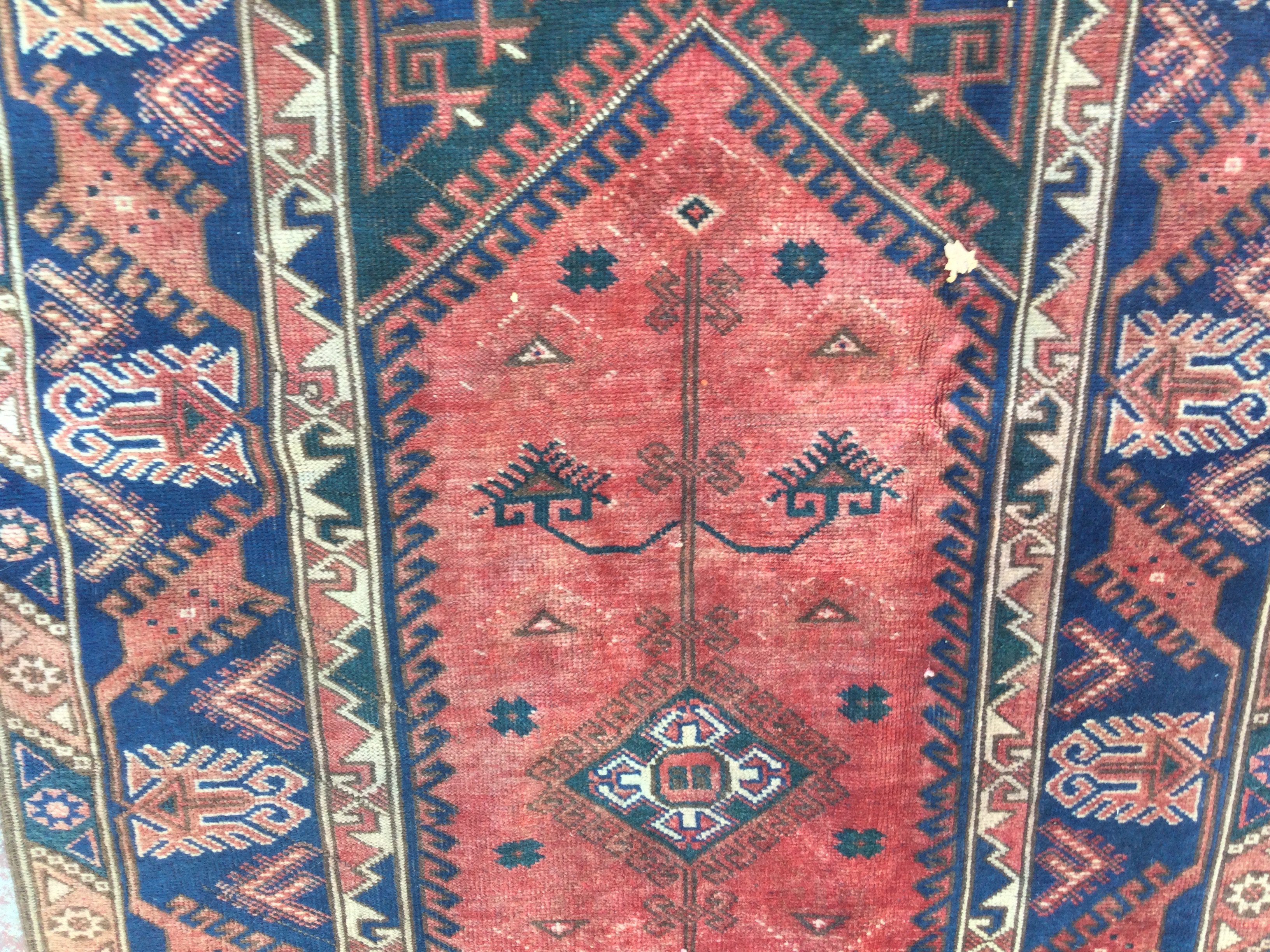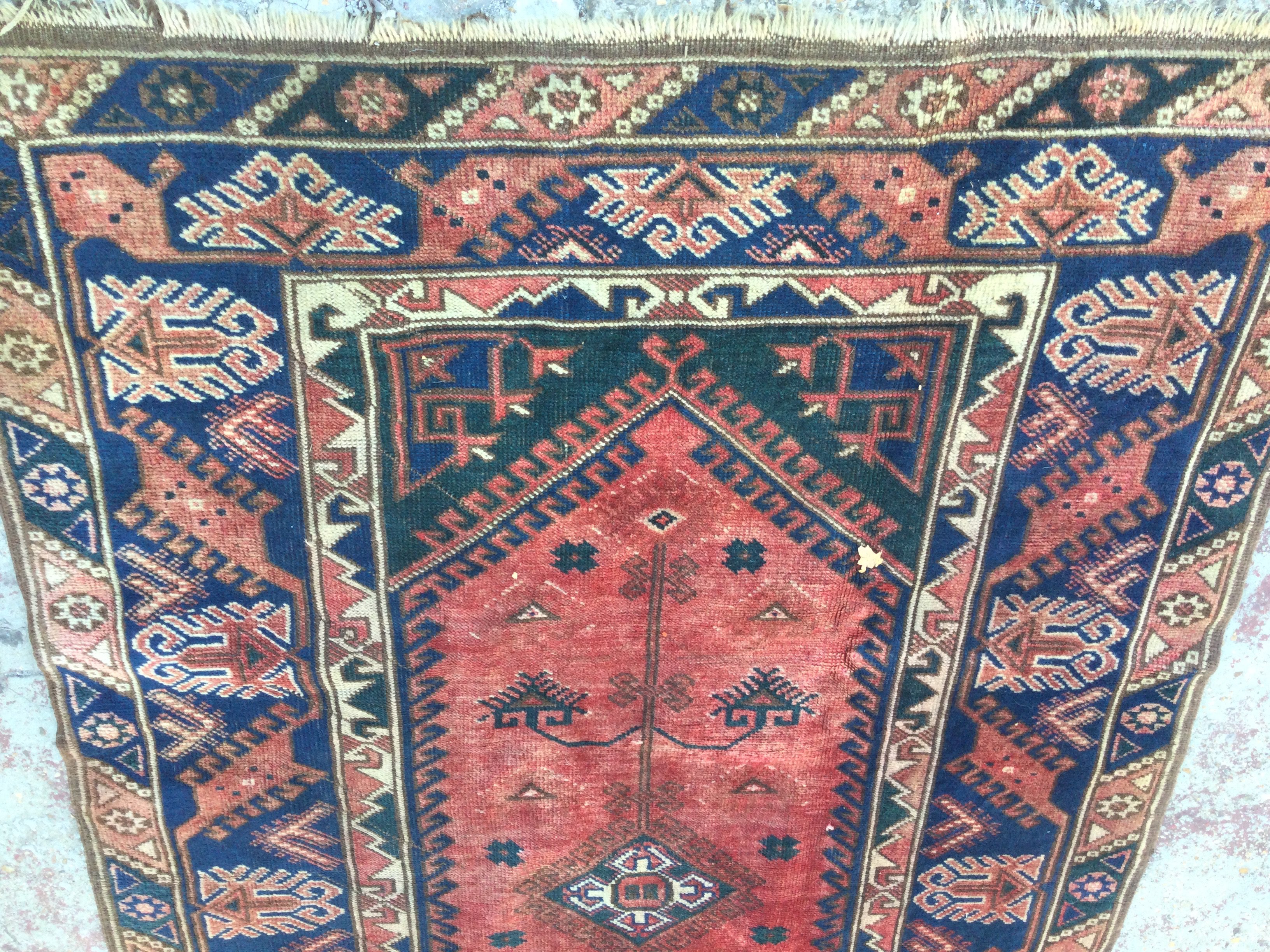 A Persian rug with geometric centre and boarder .190 x220 cm .