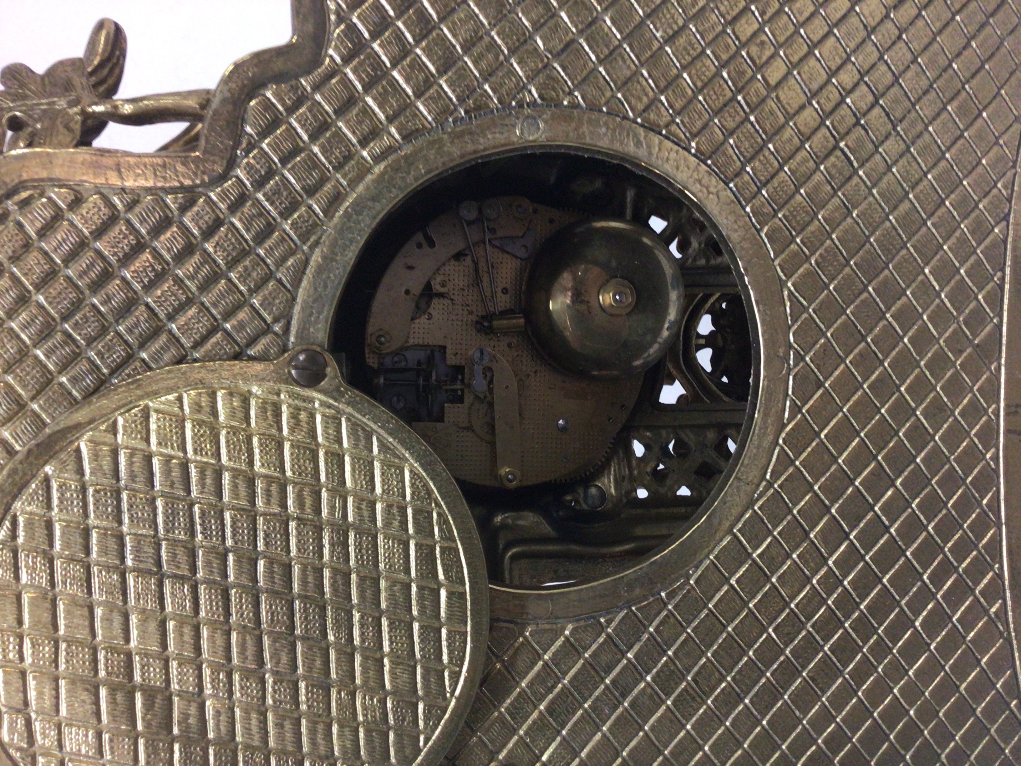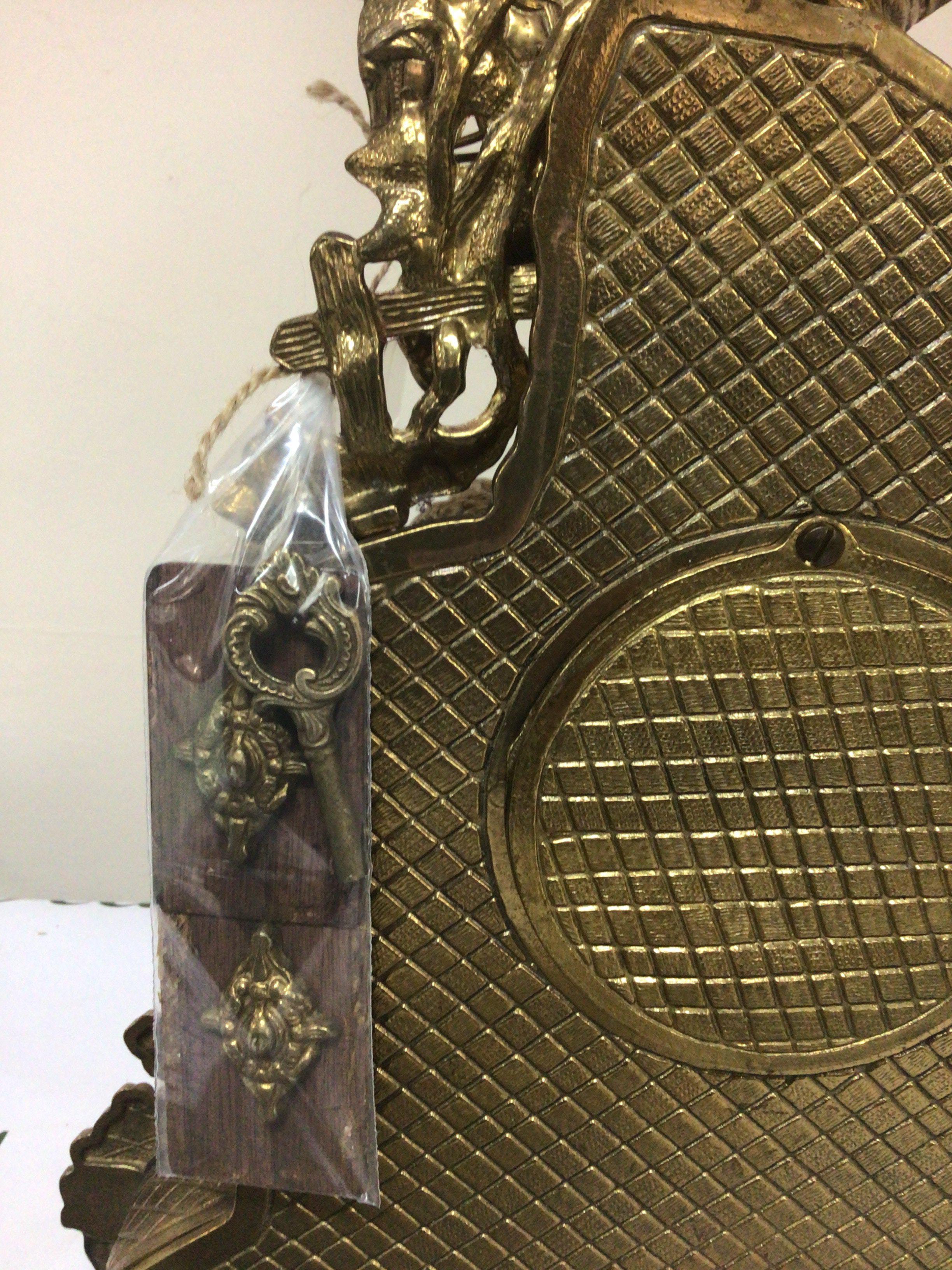 A brass cased Italian clock Imperial the case surmounted with a figure on a horse has key height 44cm.