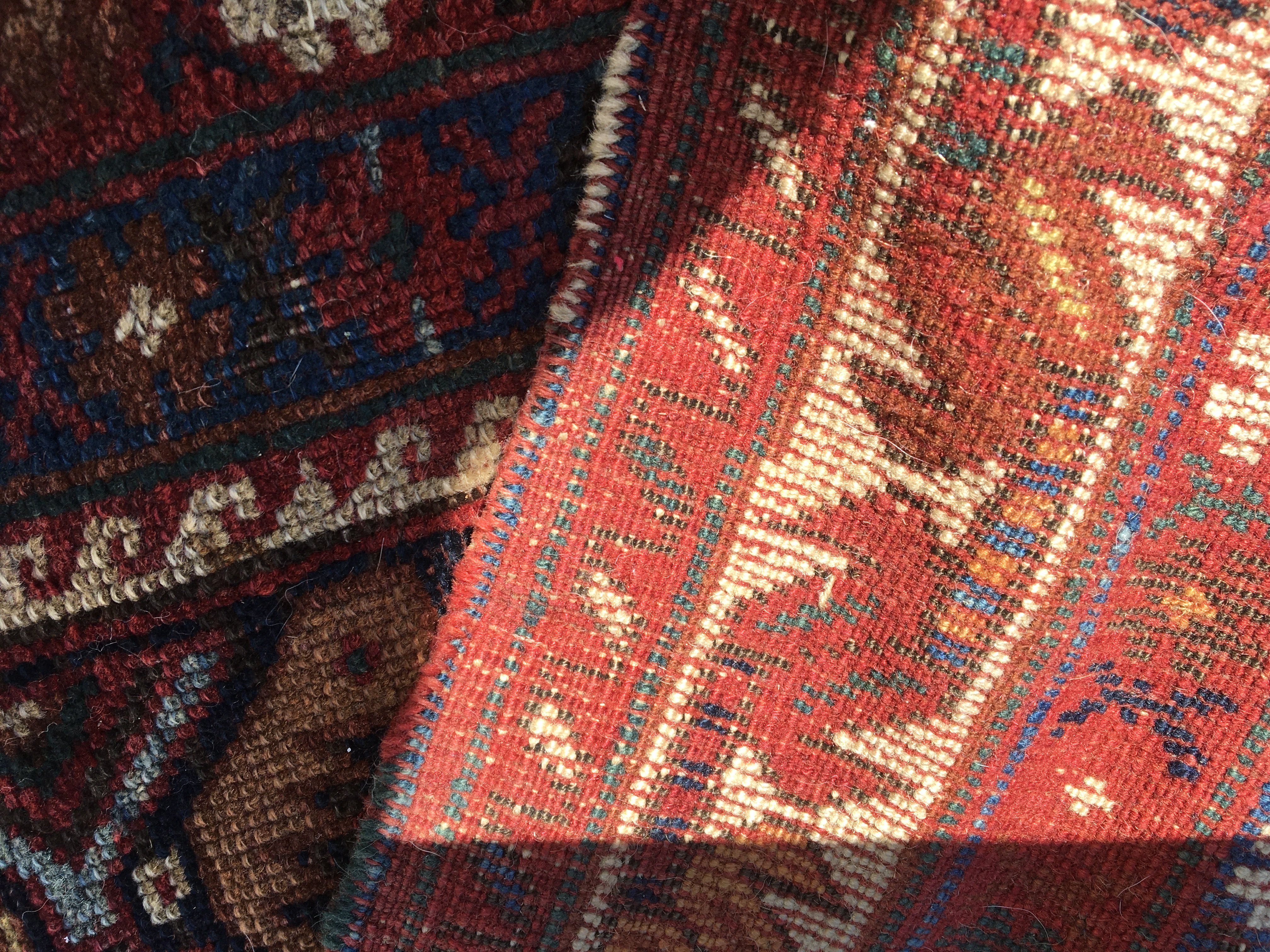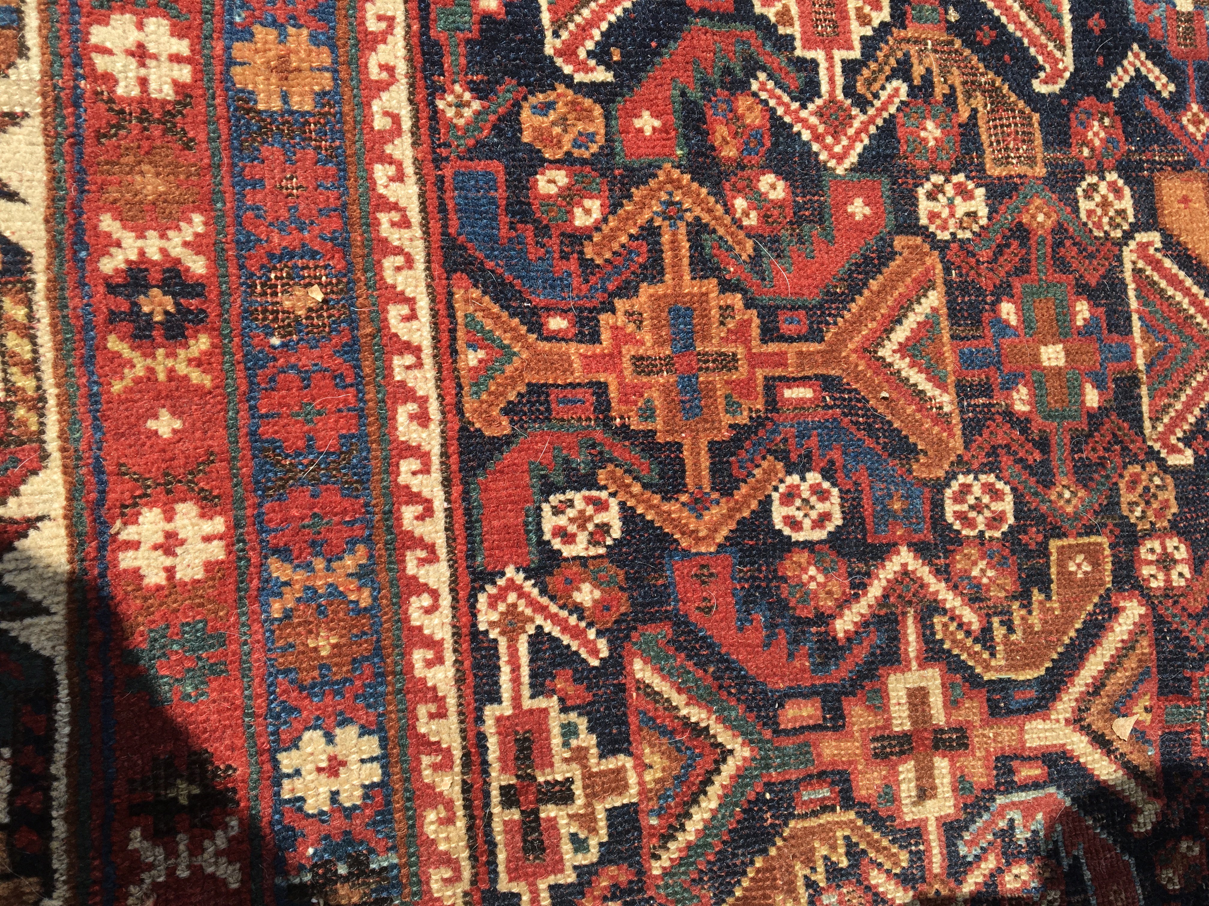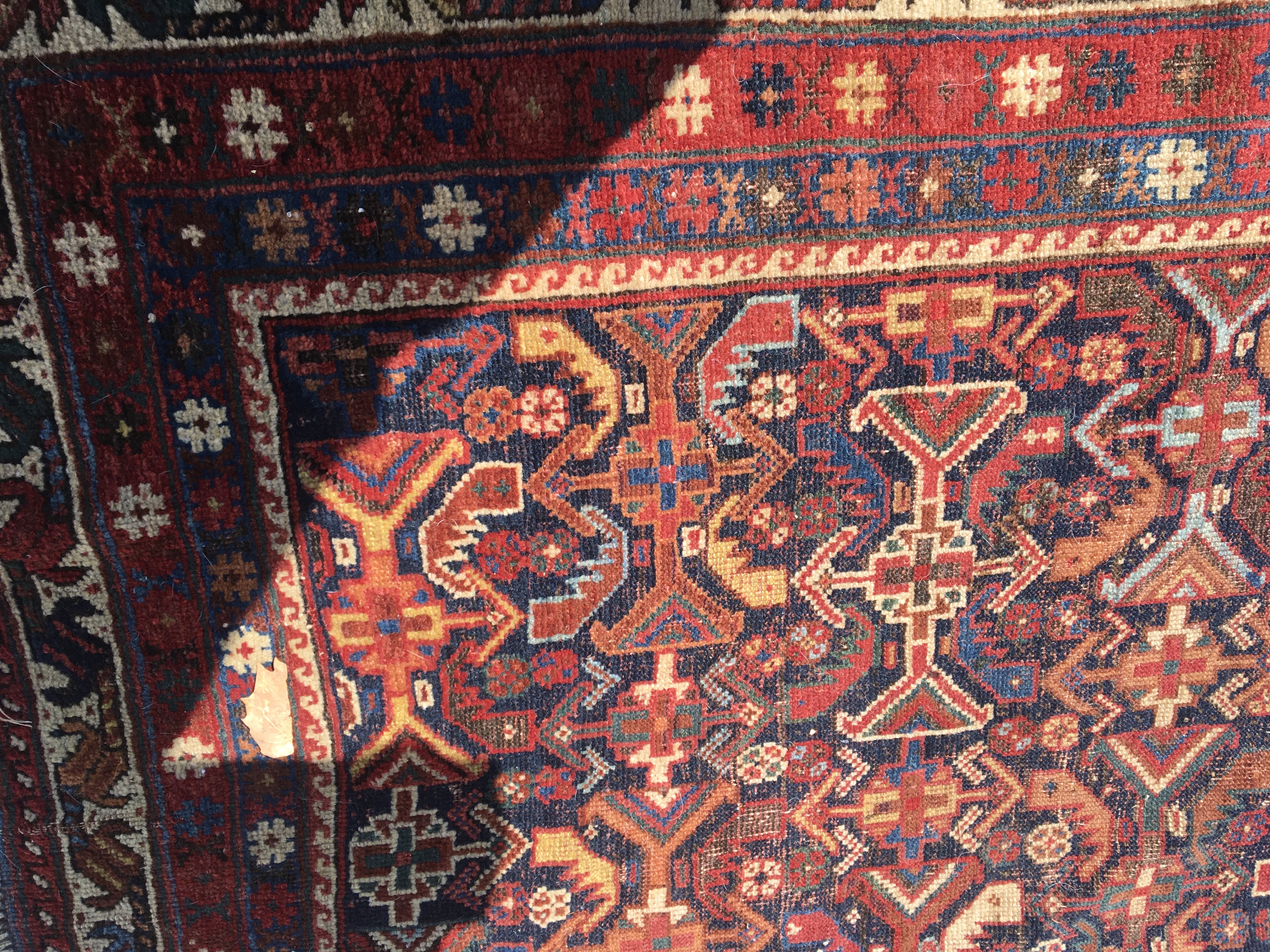 A Persian rug with geometric fields and repeated pattern boarder. 145 x 100 cm .