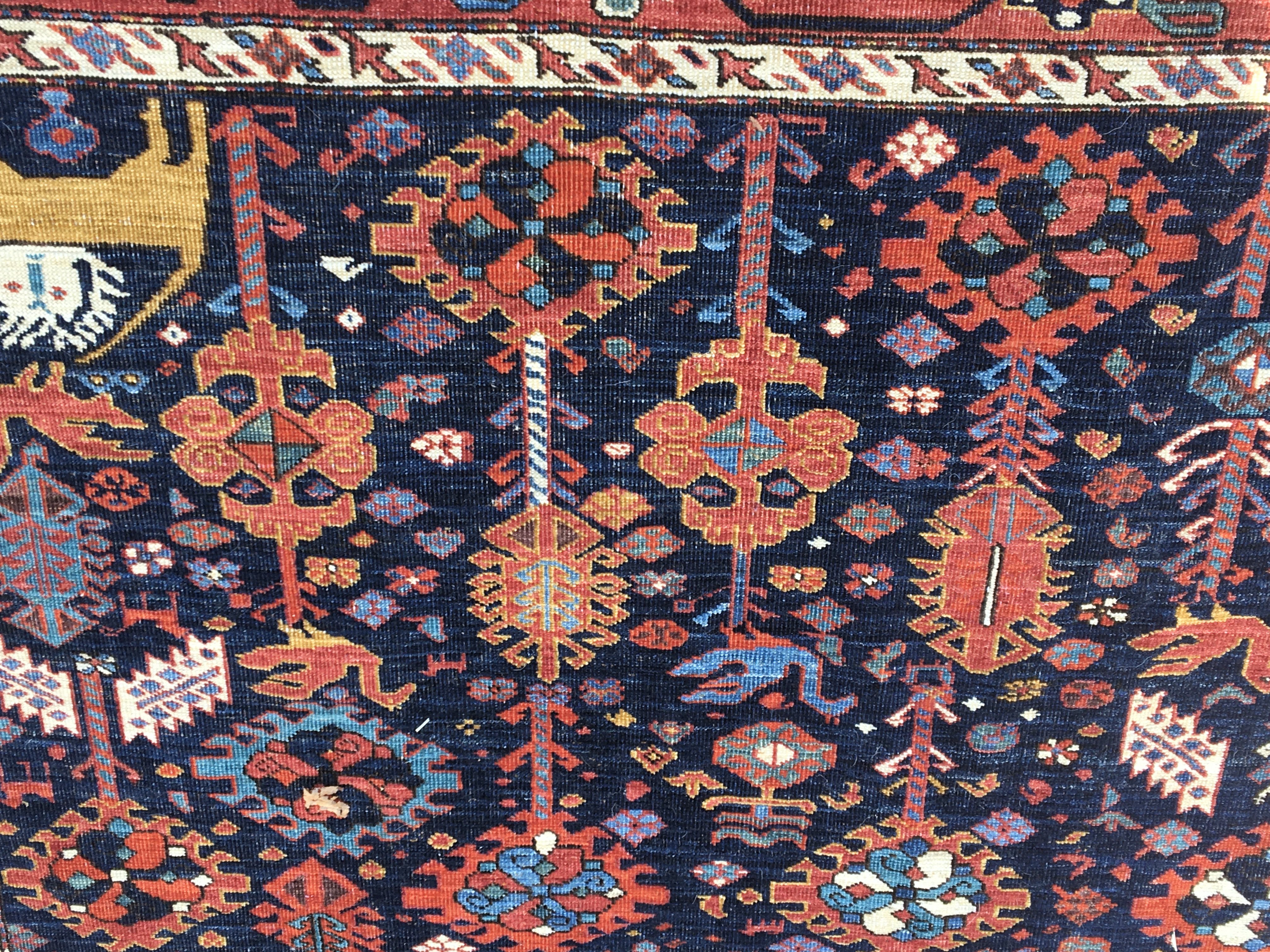 A Persian rug with geometric and animals field and floral boarder. 196 cm x 150 cm .