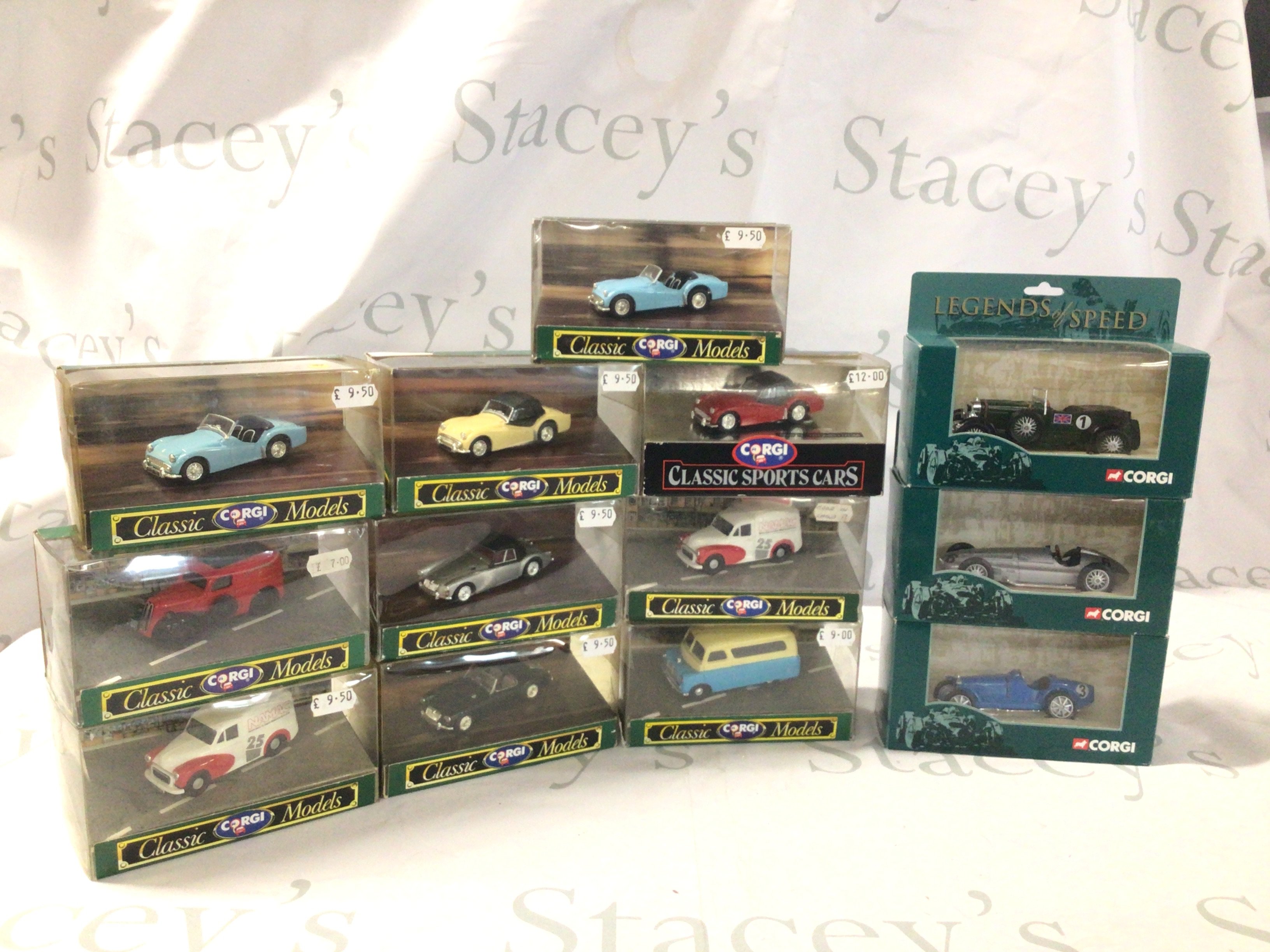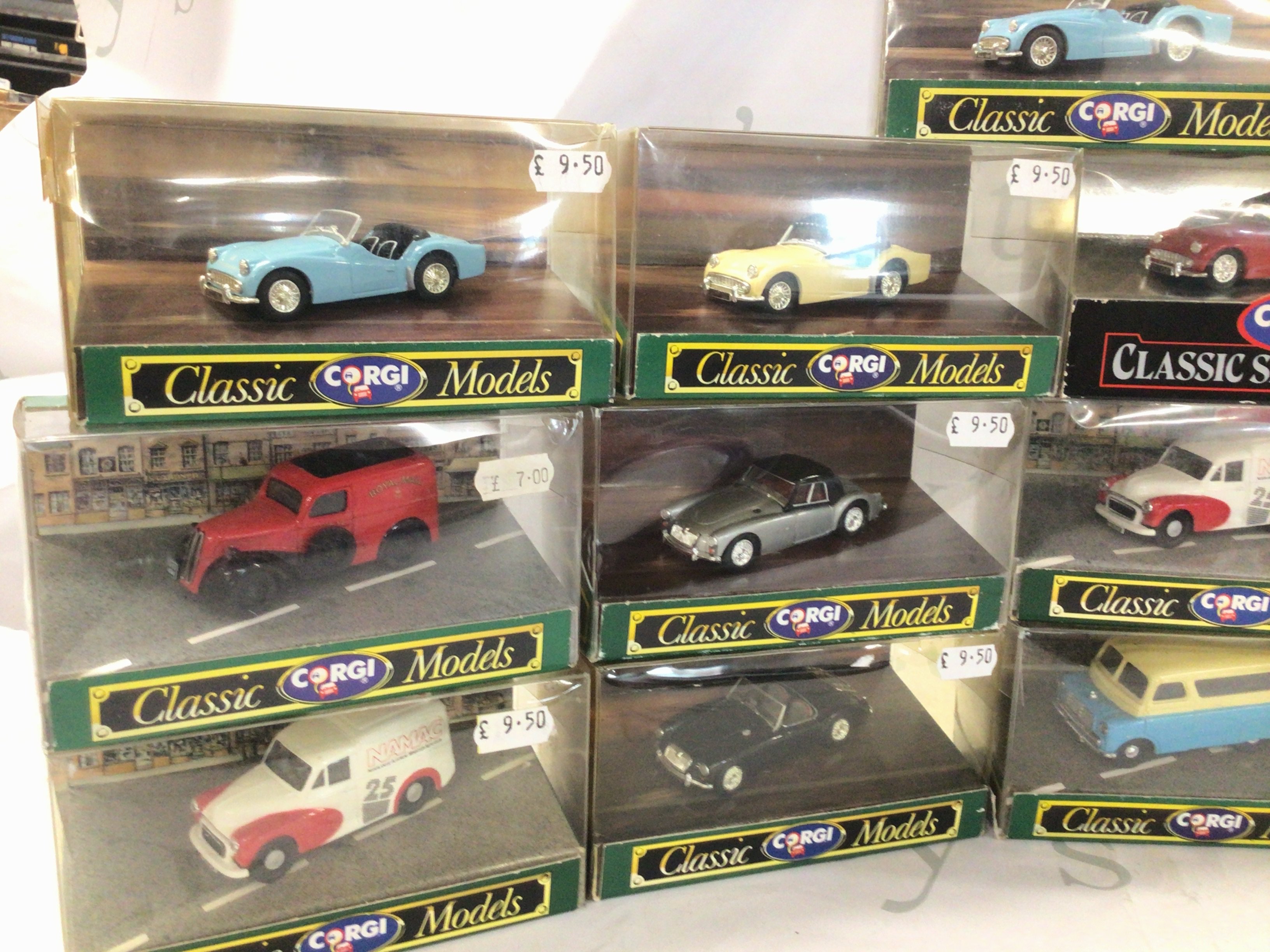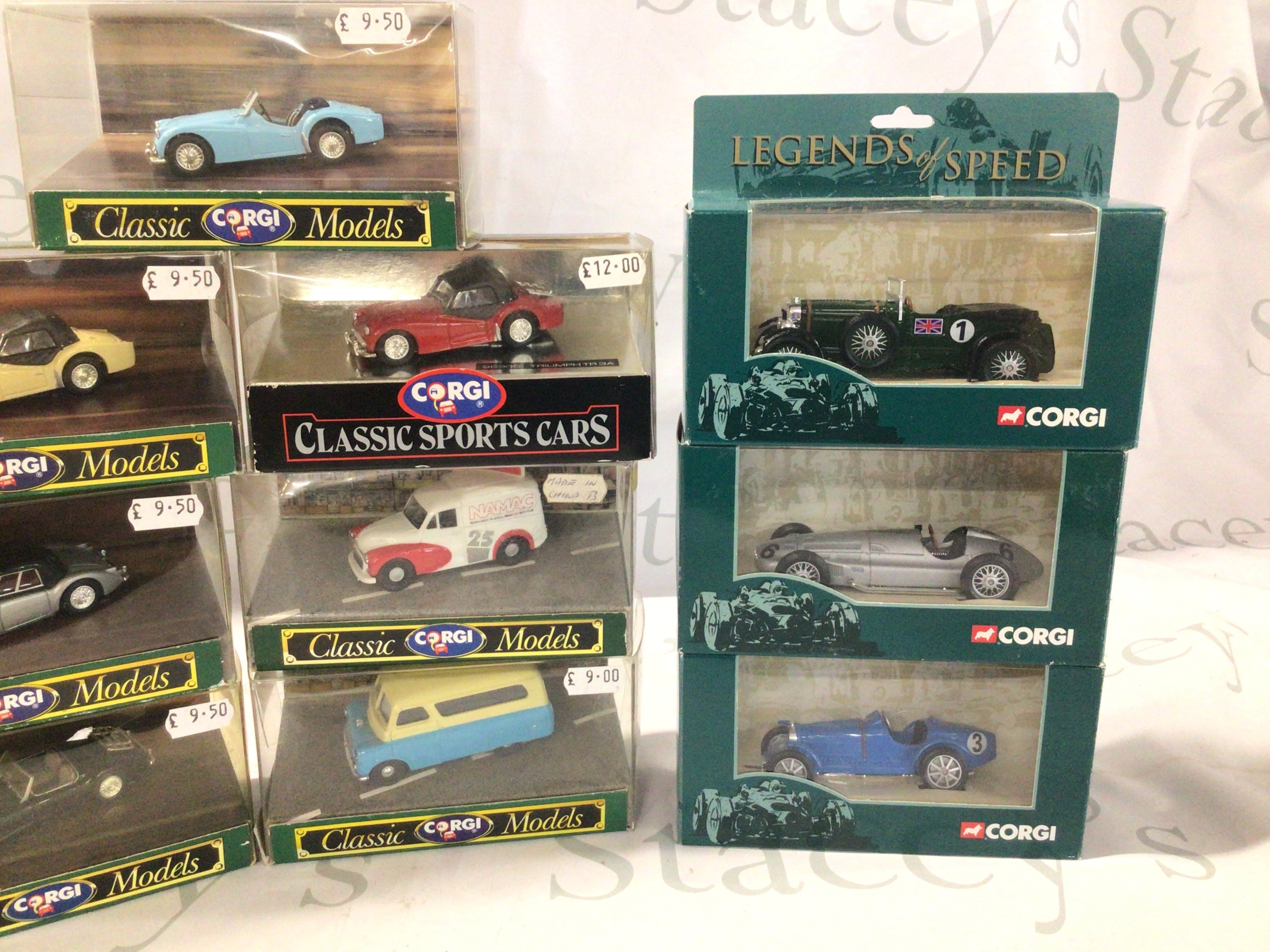 A collection of boxed Corgi diecast model cars mostly in the Classic series but includes Legends of Speed series.