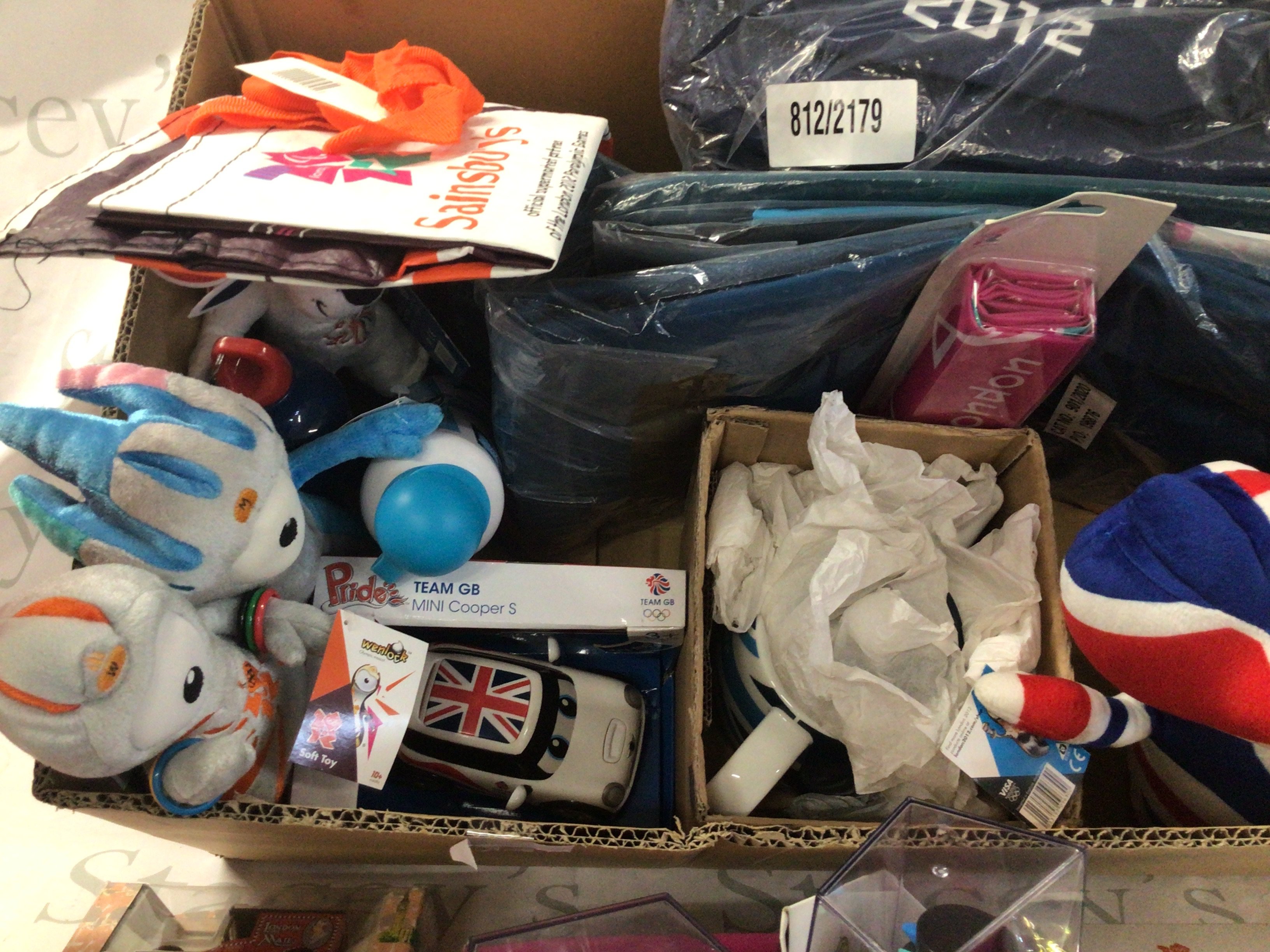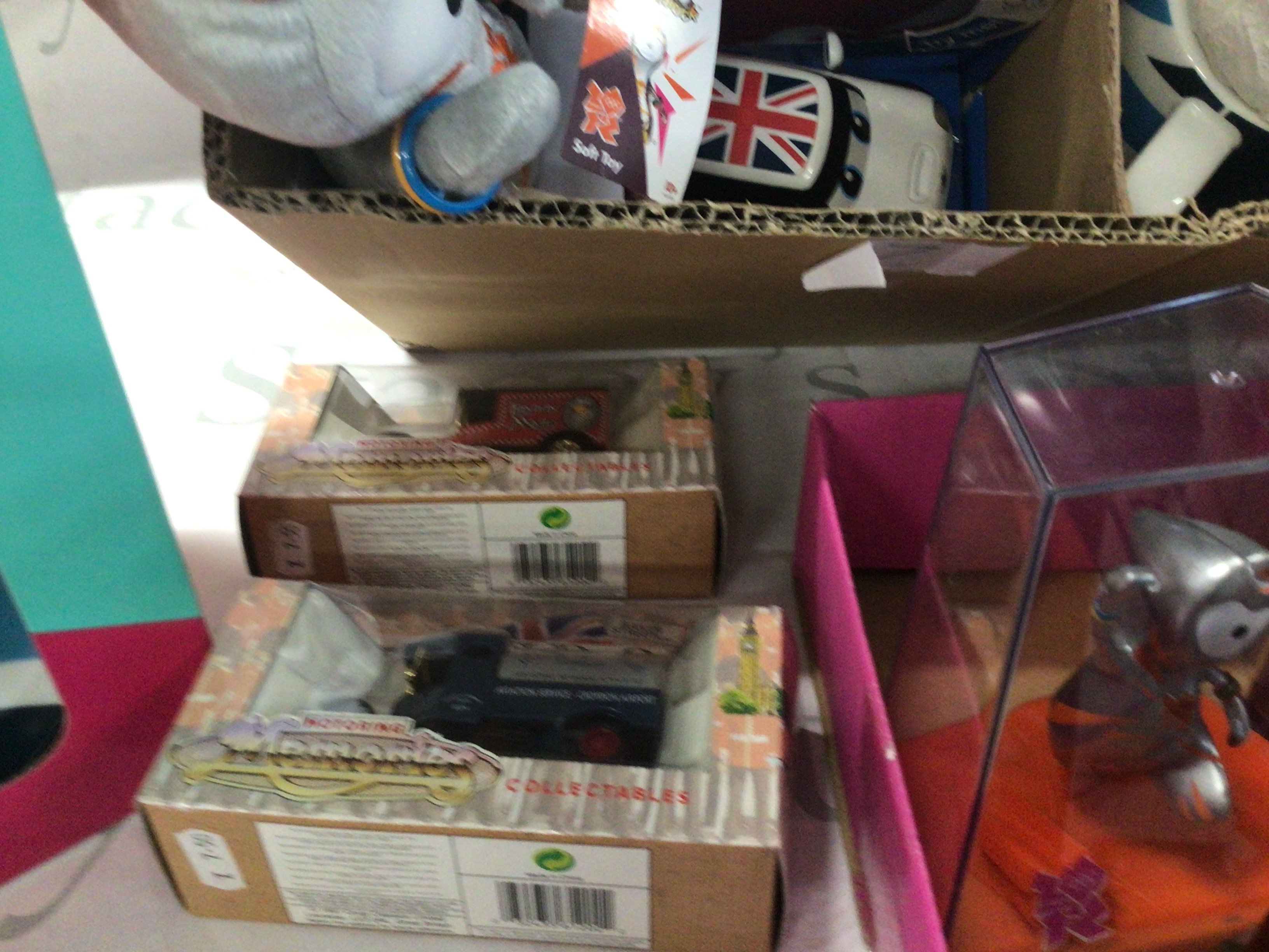 A collection of Olympic memorabilia from London 2012 includes boxed breakfast sets..mascots..vehicles..teapot etc