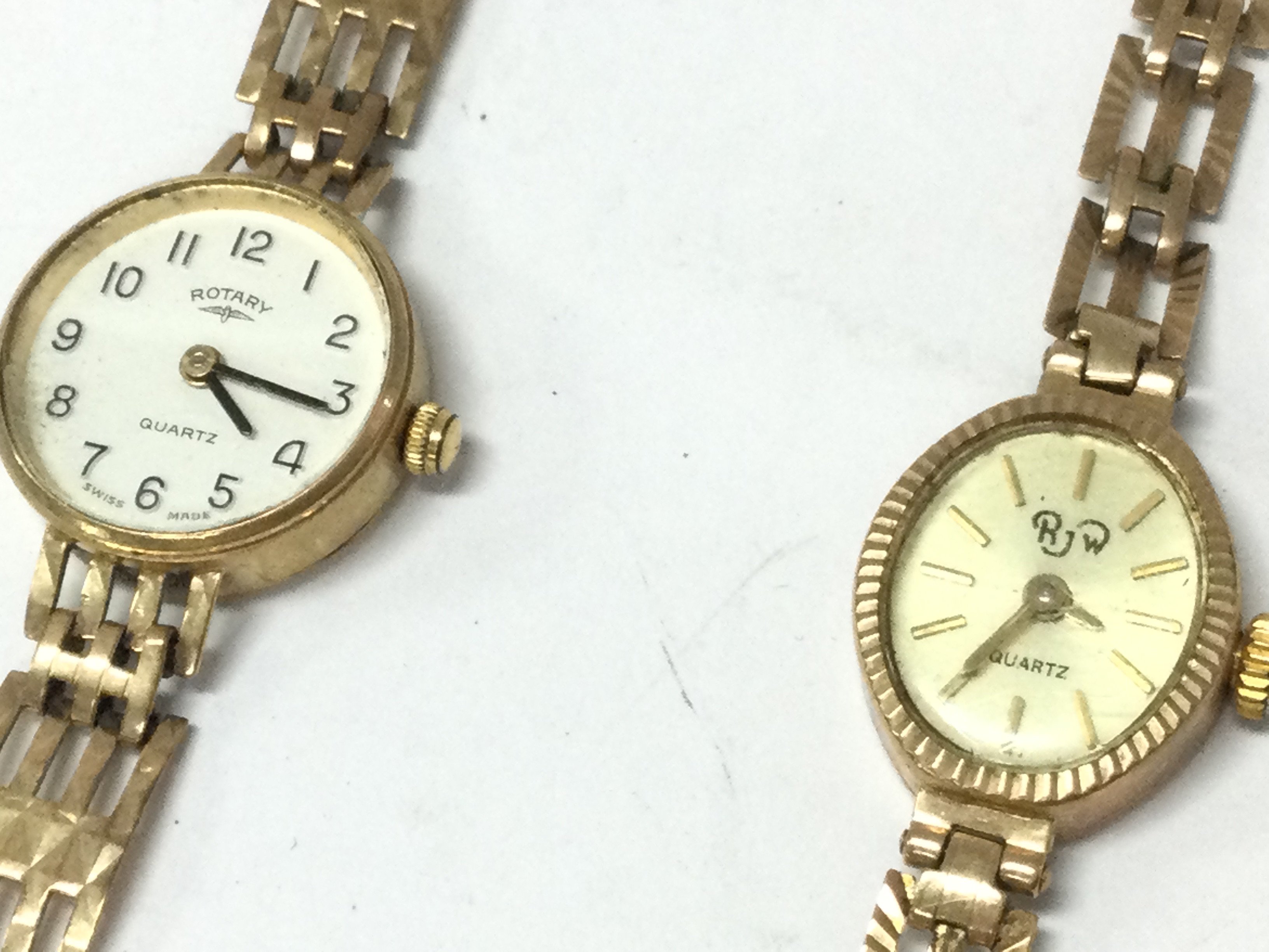 Two vintage 9ct gold ladies watches, Rotary and RJW. 20.29g total weight. postage category a