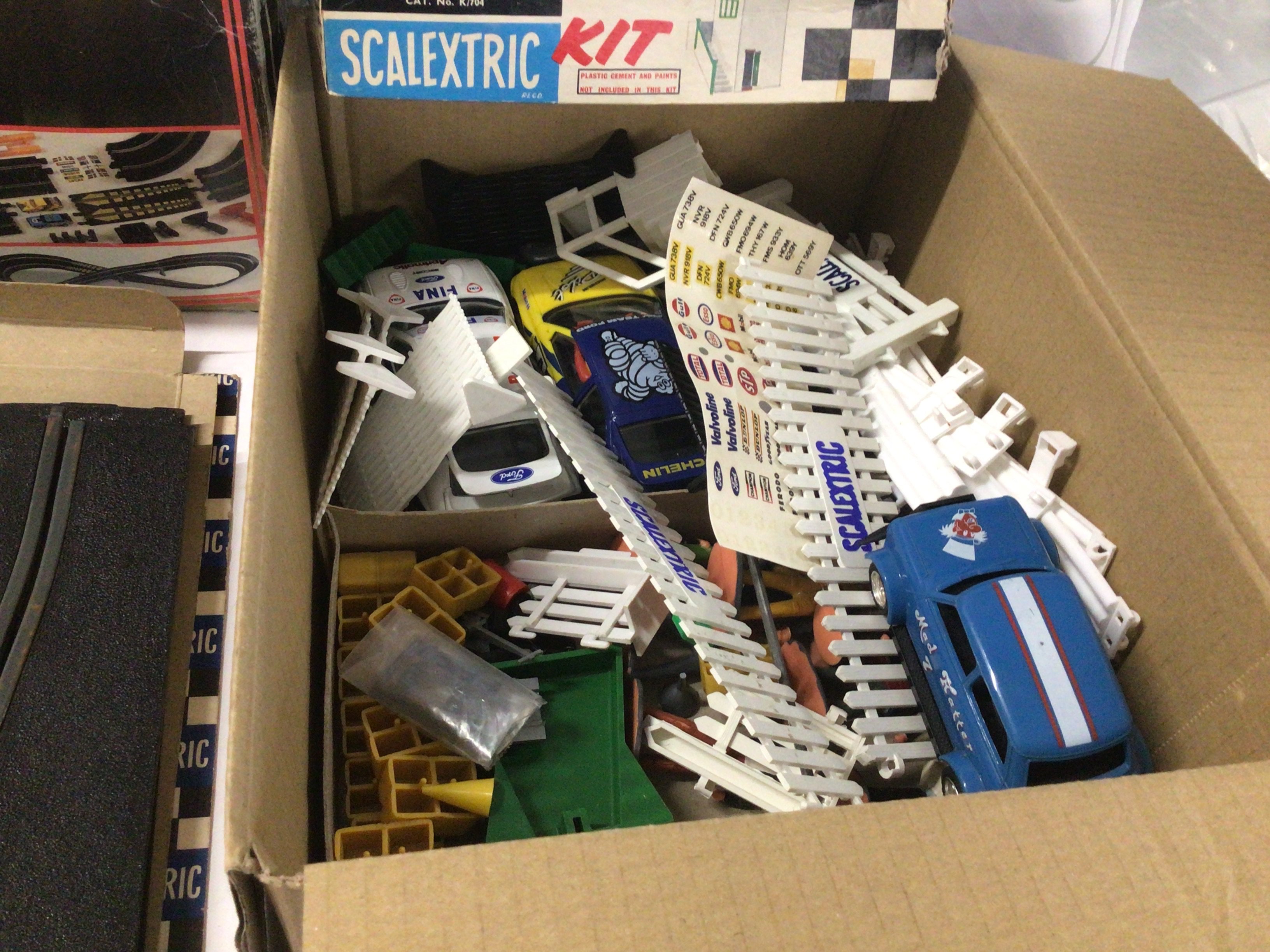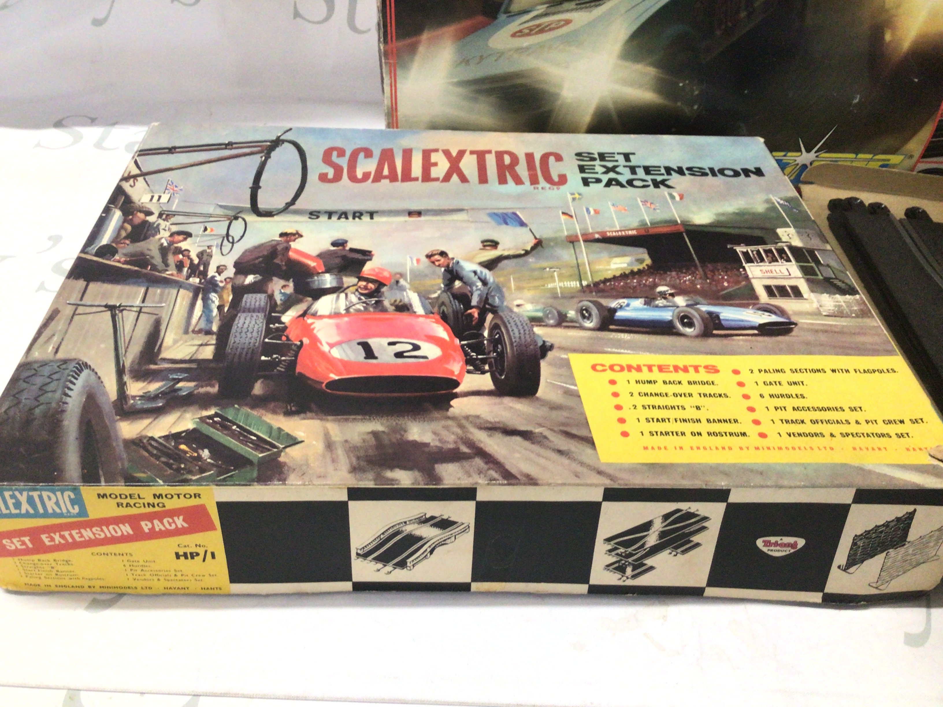 Boxed Scalextric set Night Stages XR3i rallying with lights. Plus a boxed Scalextric extension pack, plus other accessories. (3)