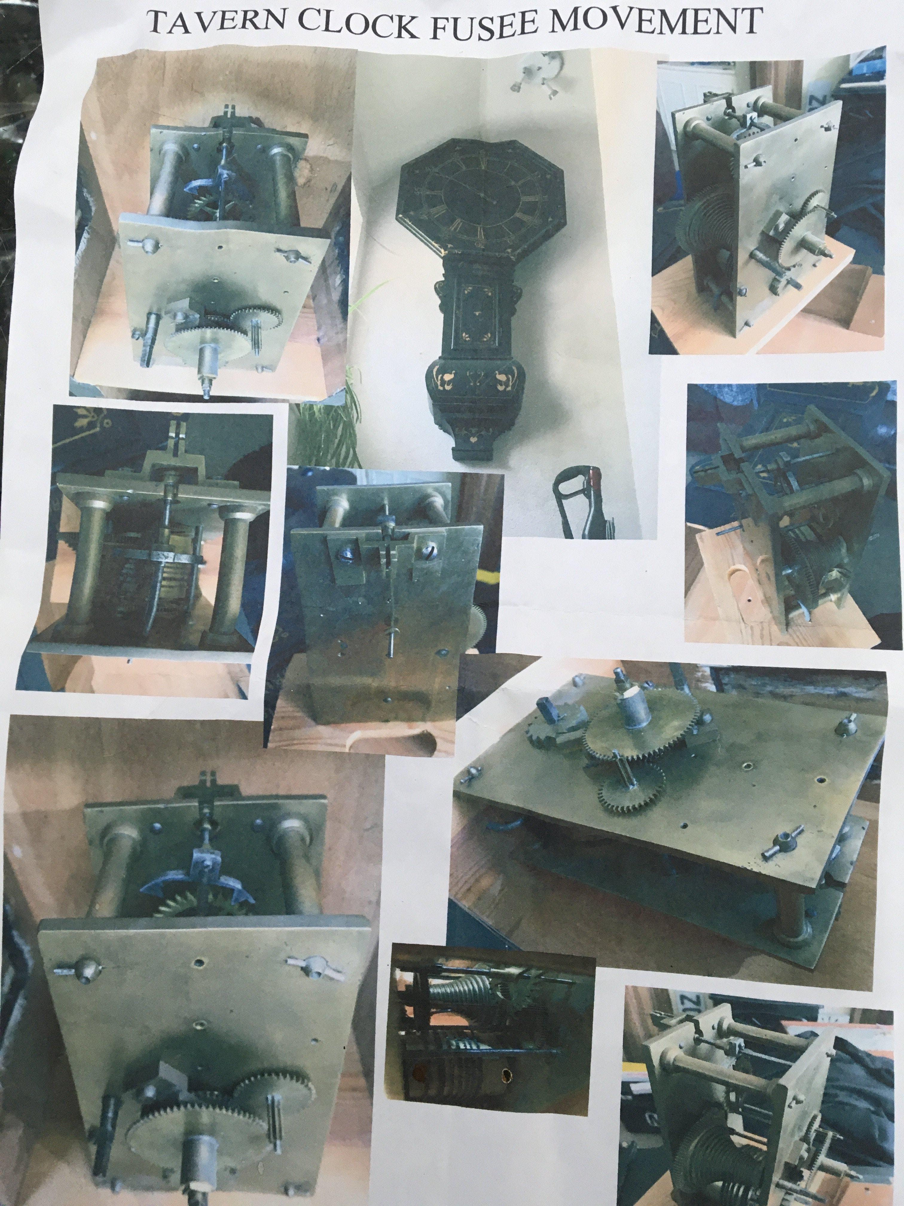 A large Taven clock with painted case and octagonal dial with the inscription Eric Bullers Brixham fitted with a brass fusee movement with pendulum. The movement is an original the case later made copying the original case.