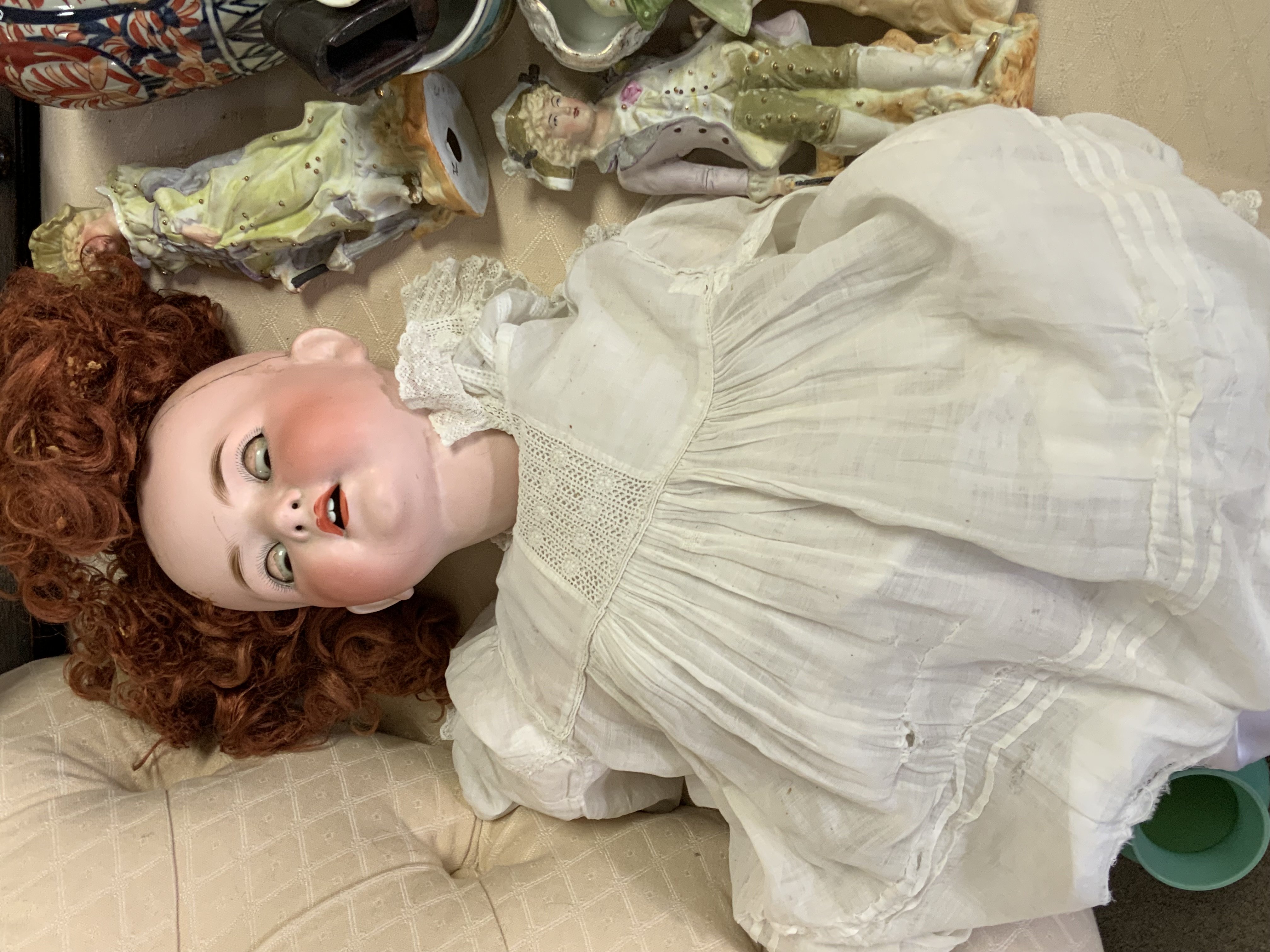 A large collection of Victorian and Edwardian bisque and pottery figures and other ceramics.