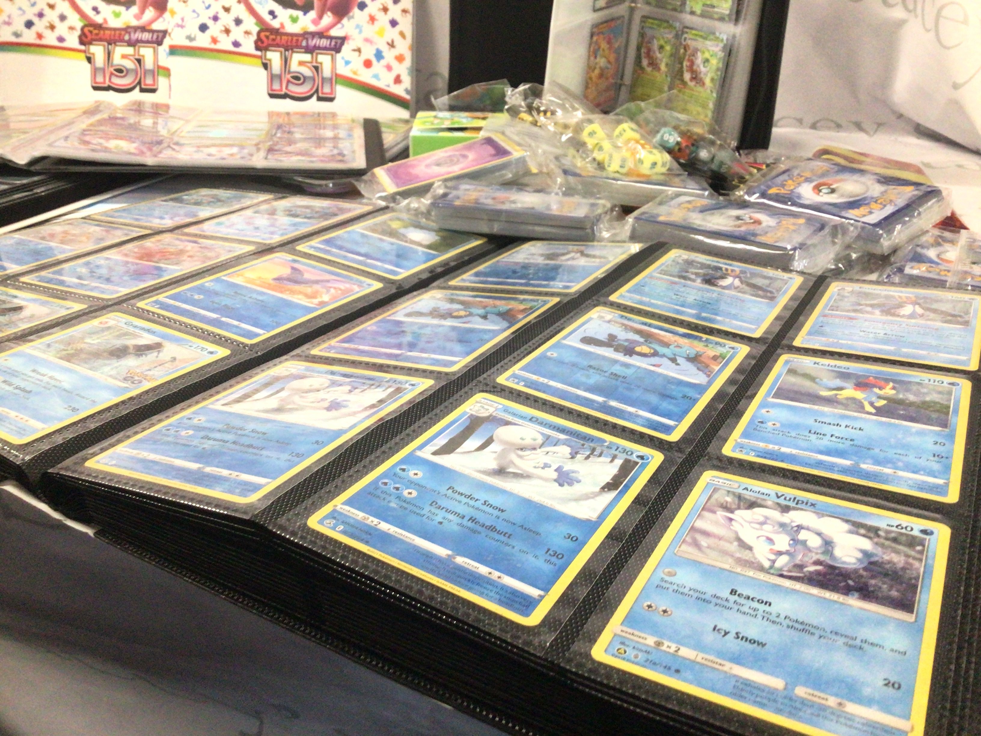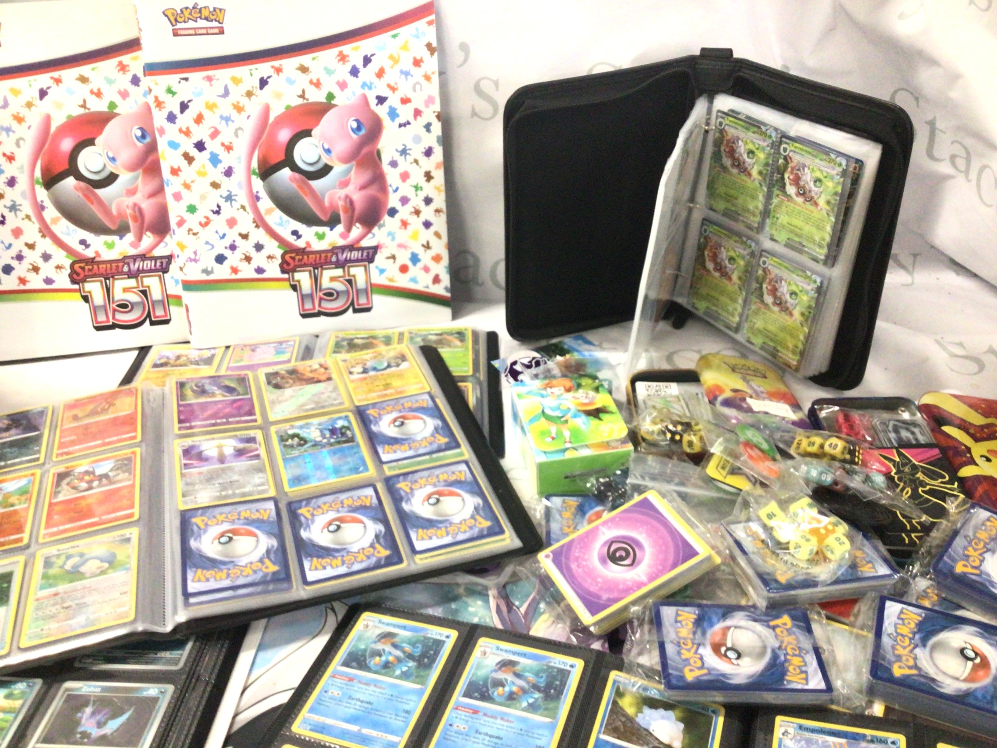 A large collection of modern Pokémon cards many in albums or in sealed packs includes dice etc.