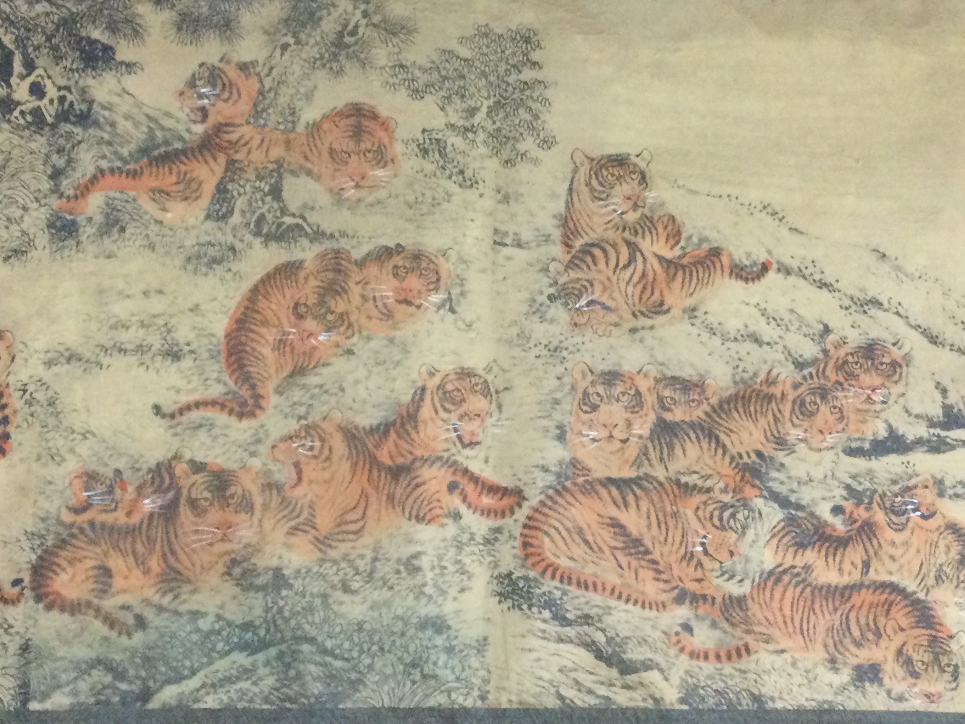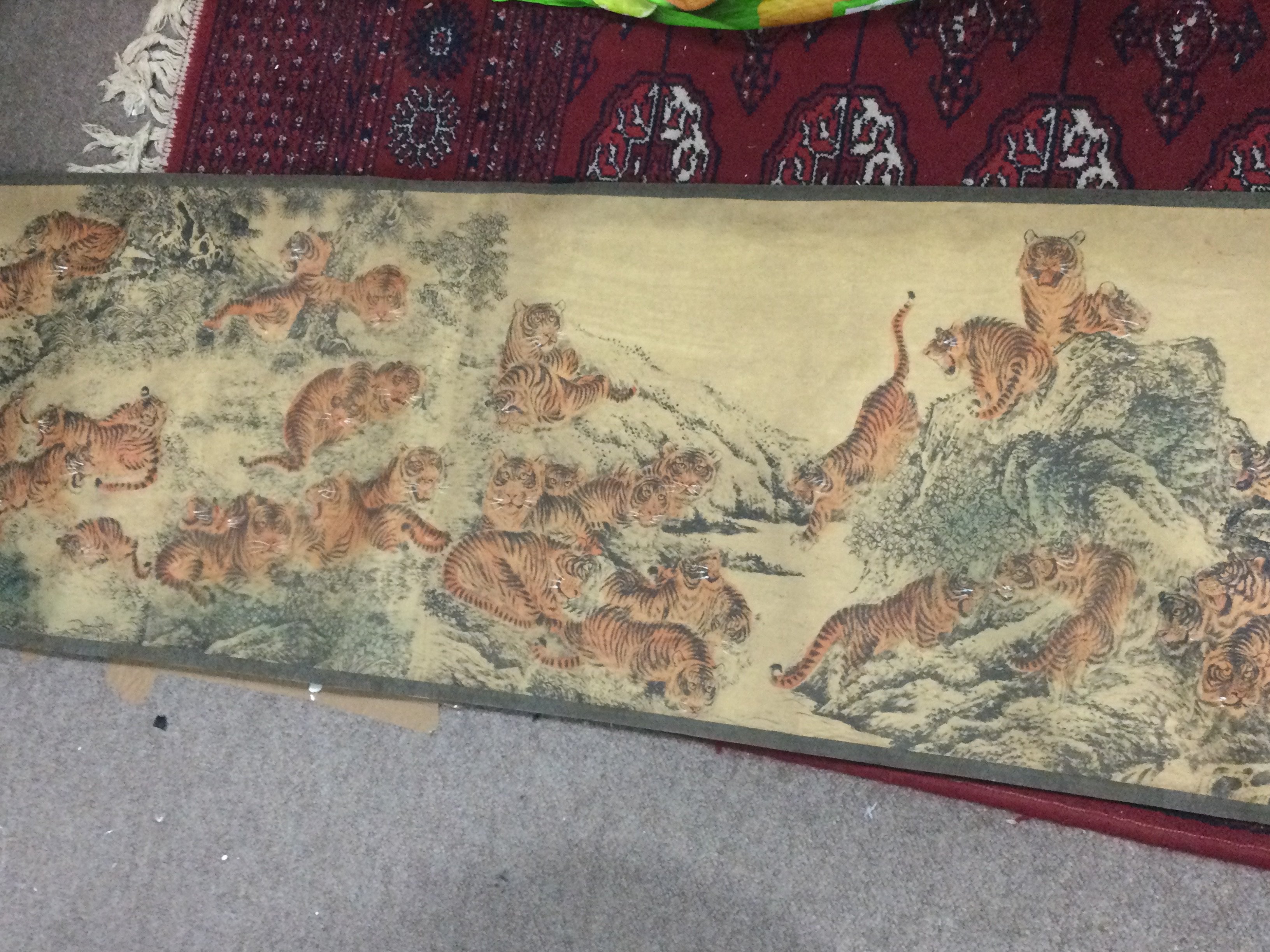 A Tibetan scroll with tiger paintings , Hundred tigers picture. Approximately 4 metres long. Postage category C