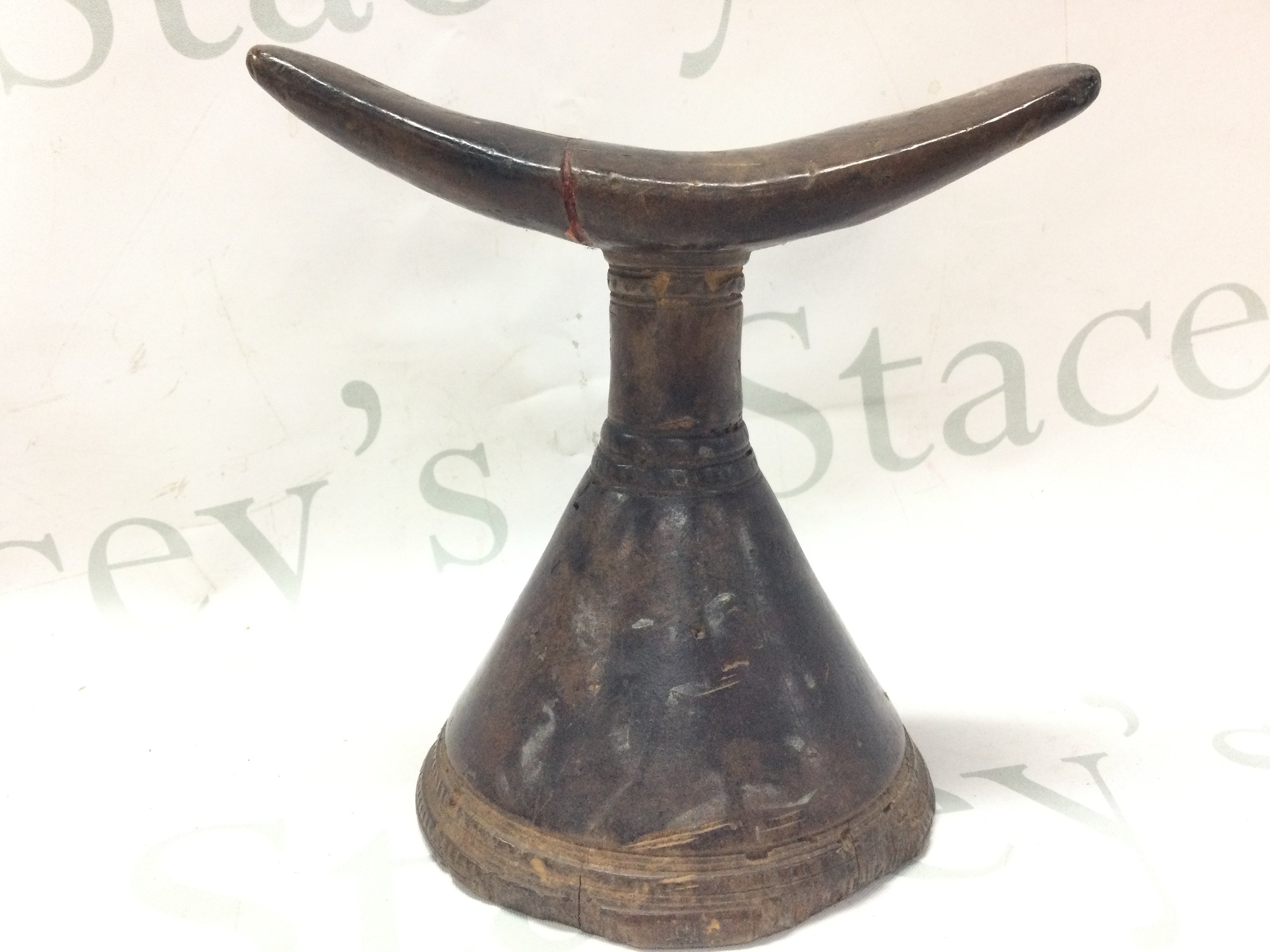 An Ethiopian wooden pillow. 16cm tall. Postage category B