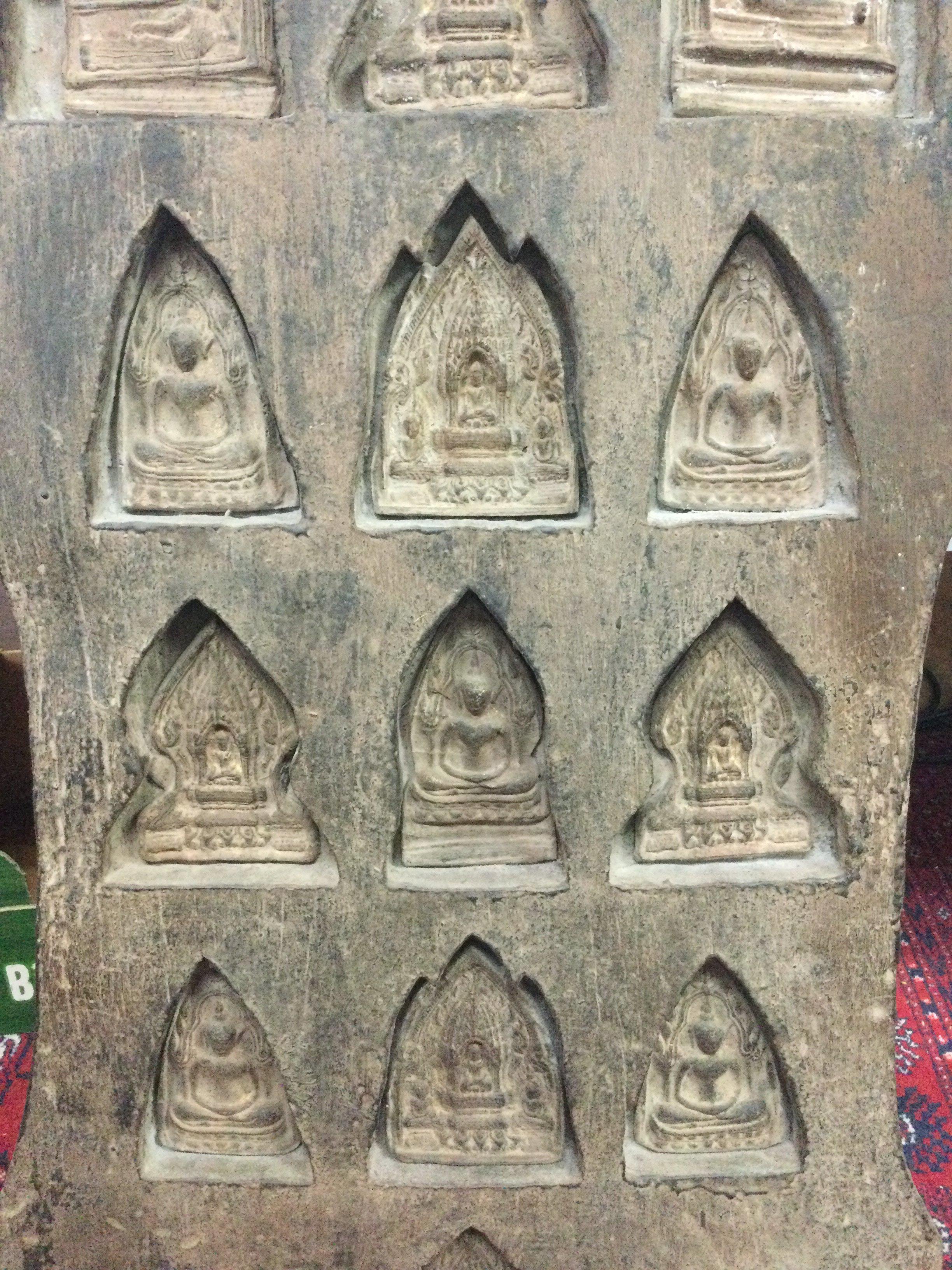 A large Tibetan wooden shrine with inset reliefs. 41cm wide 80cm tall.