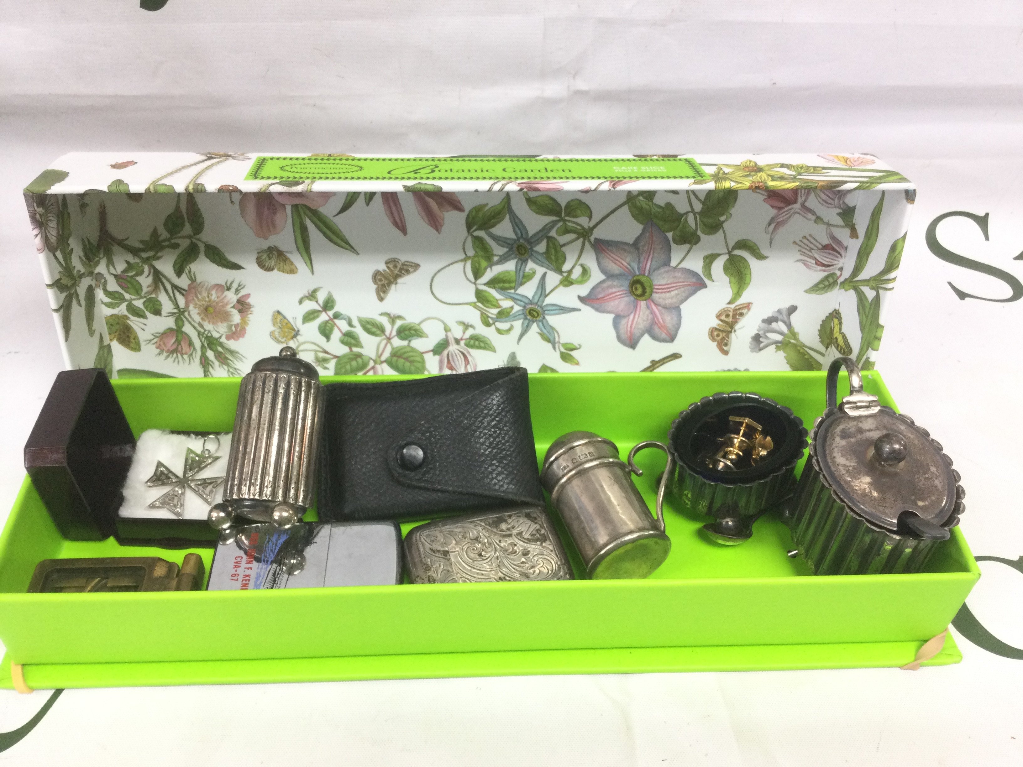 A collection of silver oddments including a silver vesta case and other small oddments. Shipping category B.