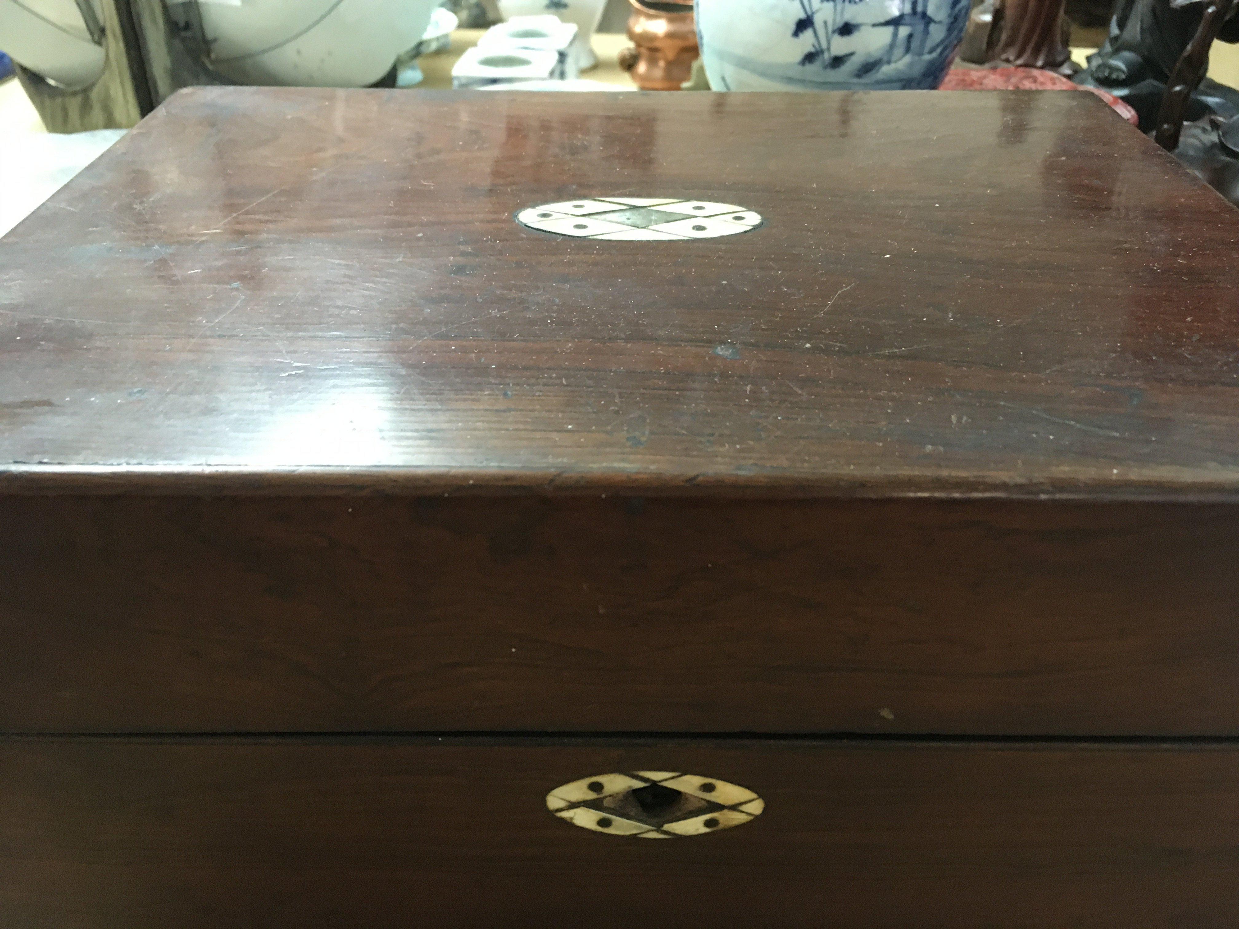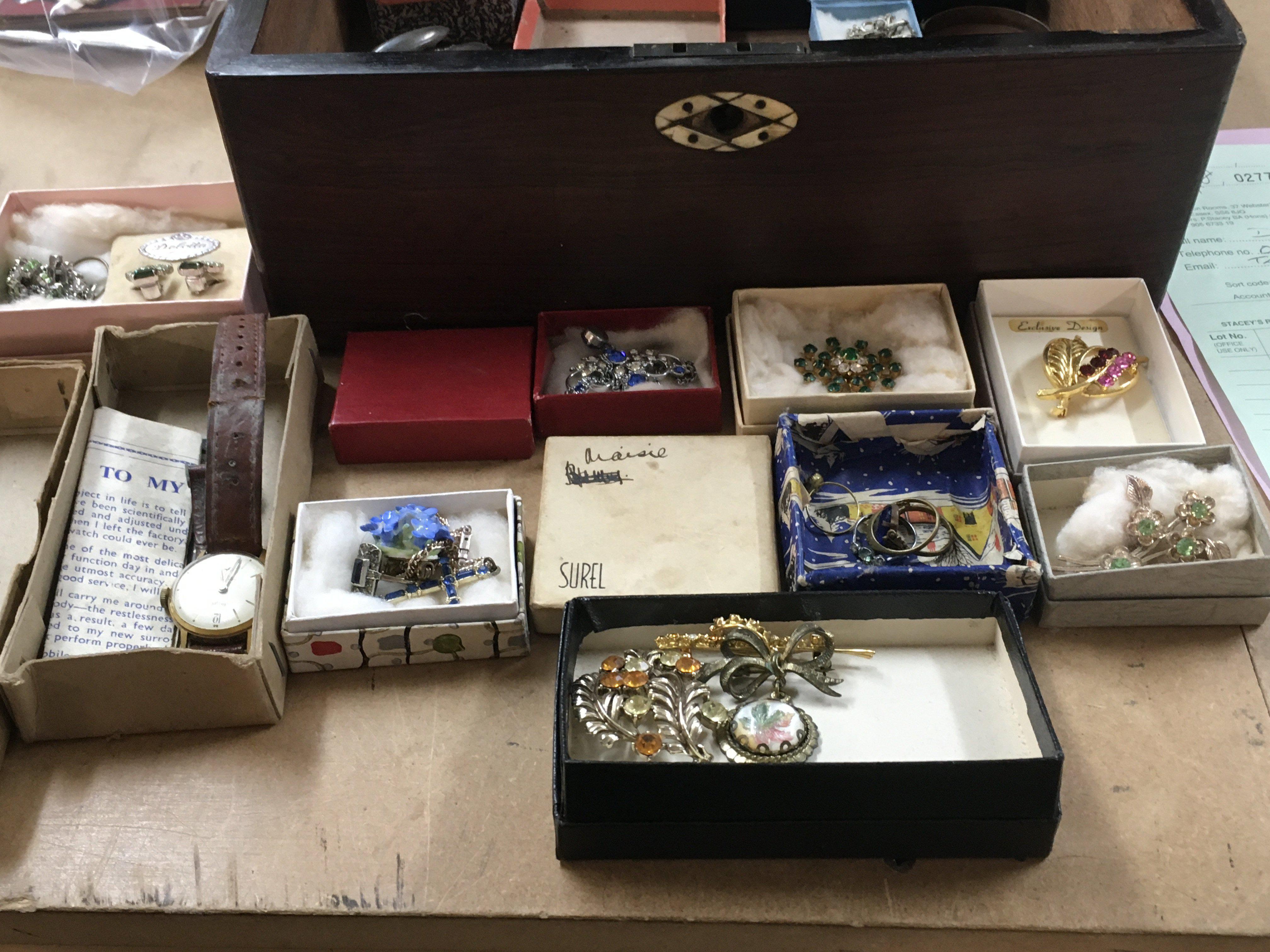 A mahogany box containing costume jewellery various.