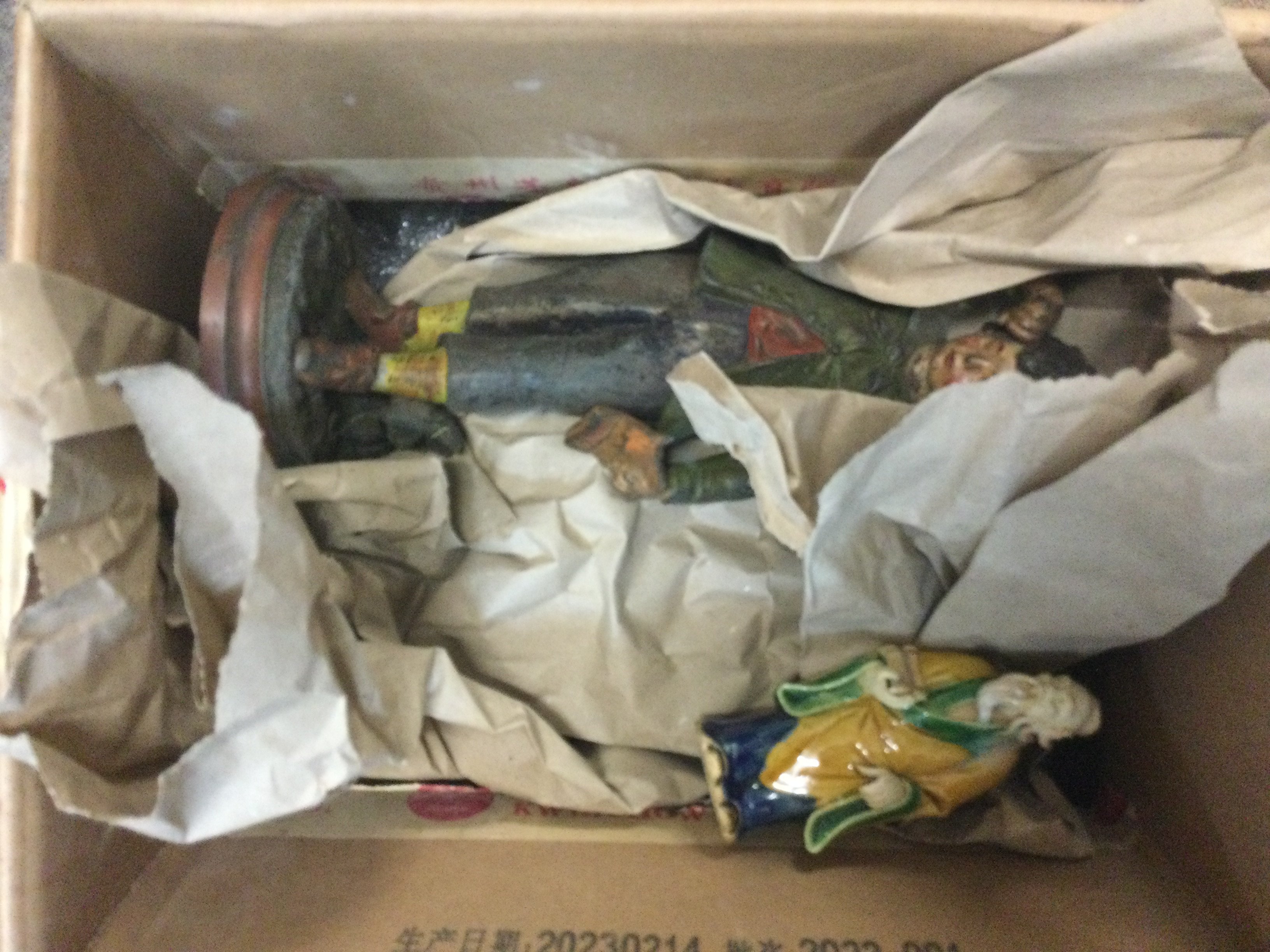 A floral jardiniere 23cm tall (hairline cracks, damage and restoration) and figures . This lot cannot be posted
