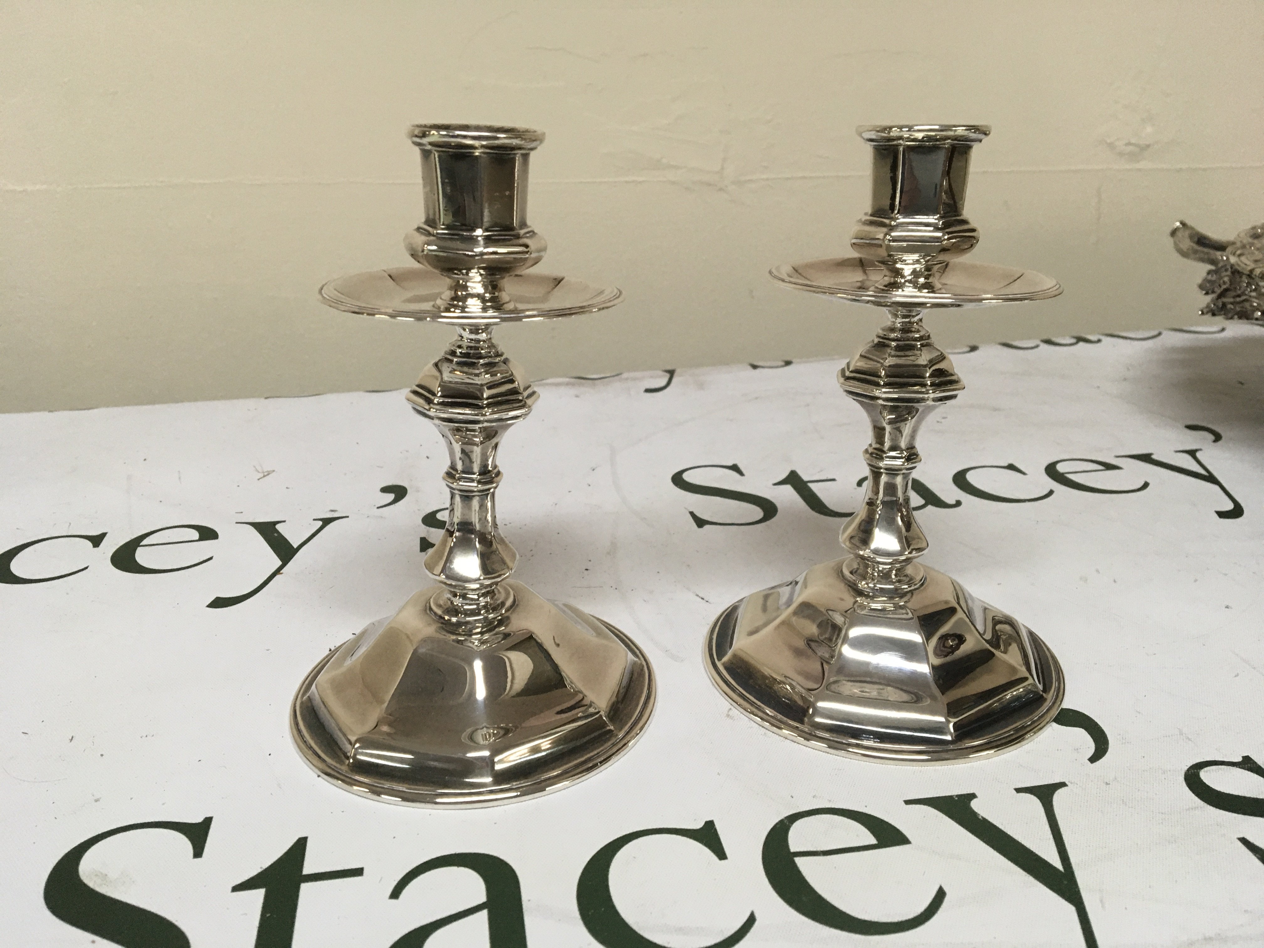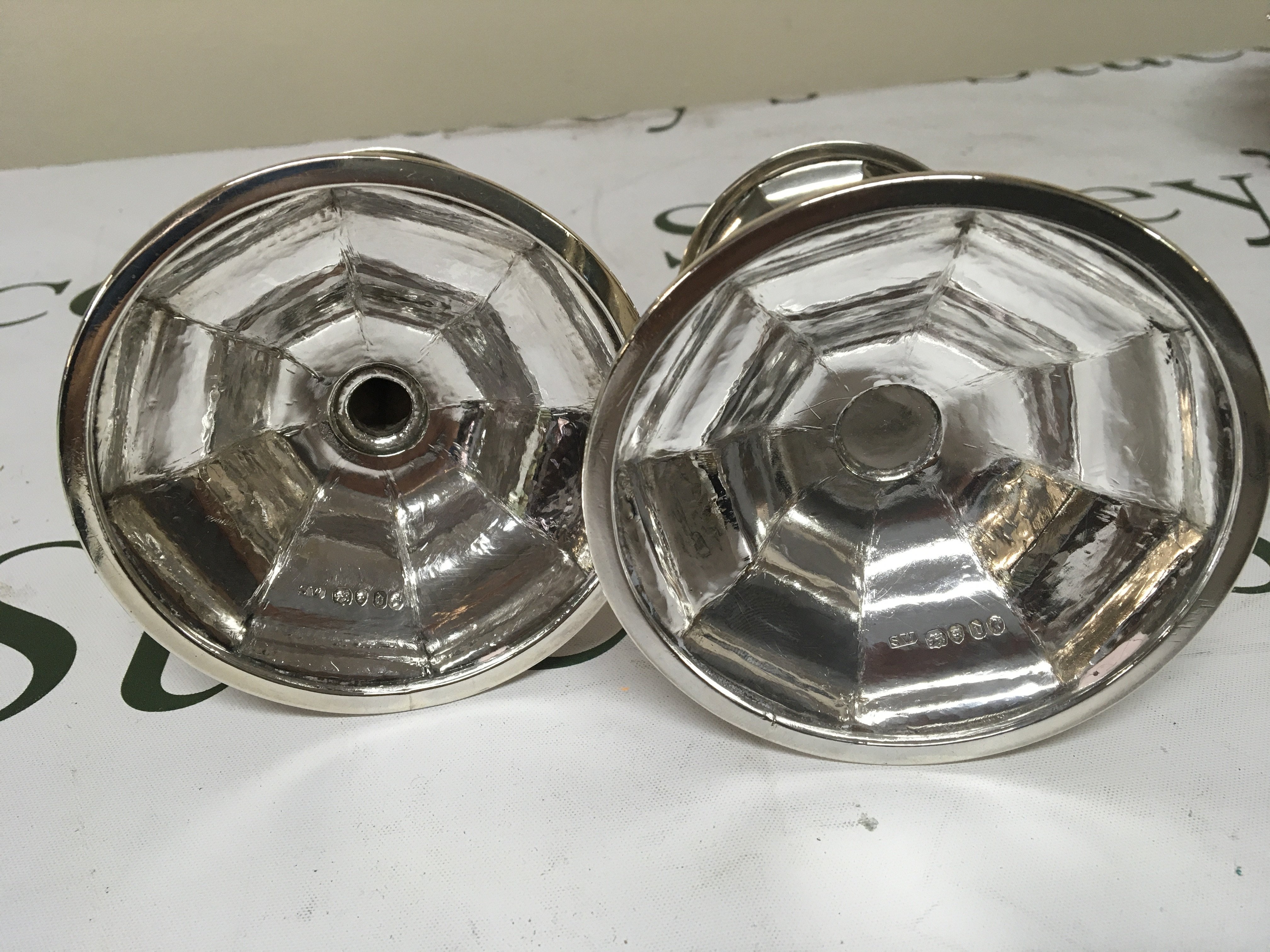 A pair of quality Victorian solid silver candle sticks with circular bases and of Gothic influence clear London hallmarks to the base very good condition Hight 16cm weight 557g